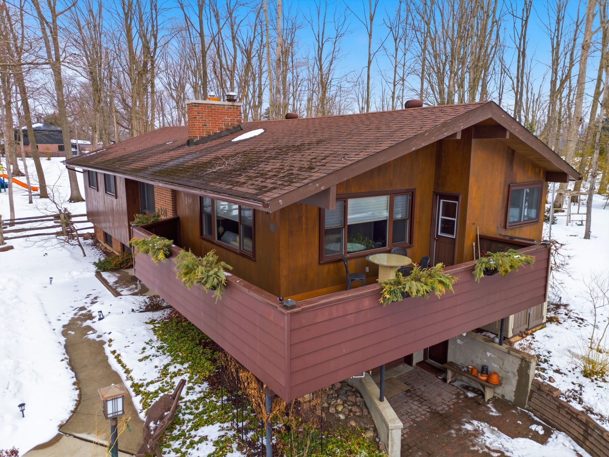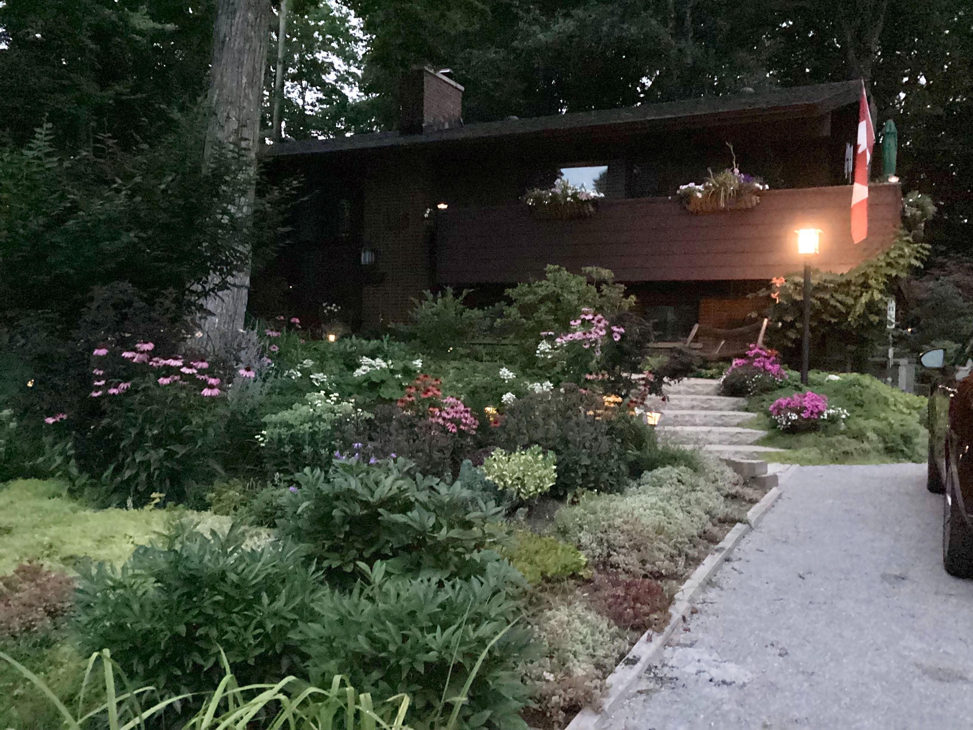 • Large private backyard surrounded by mature trees and gardens for tranquility.