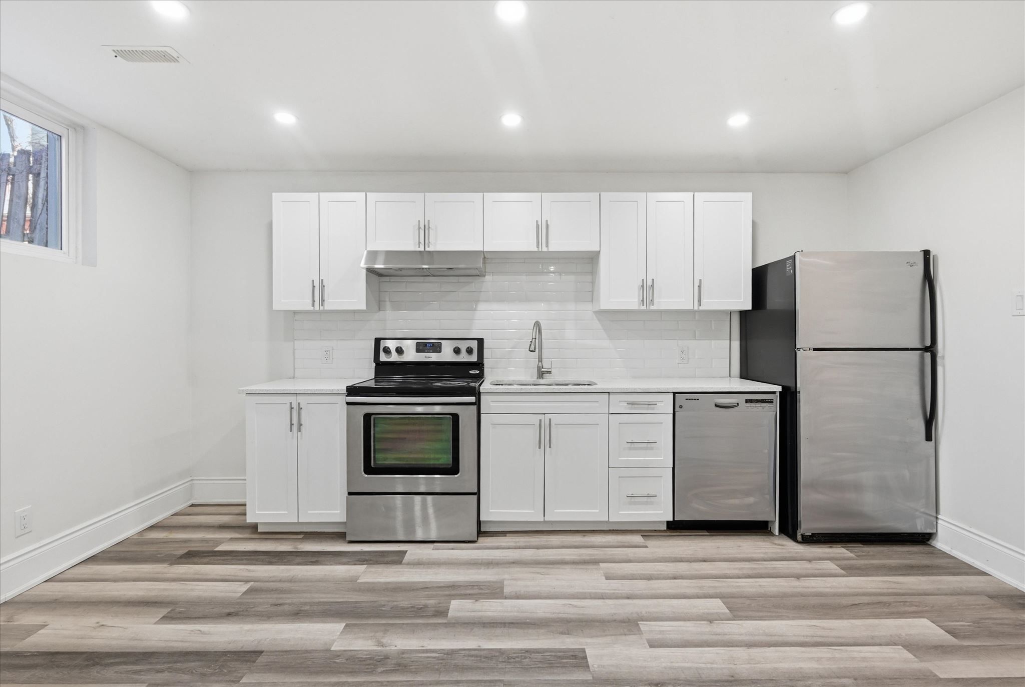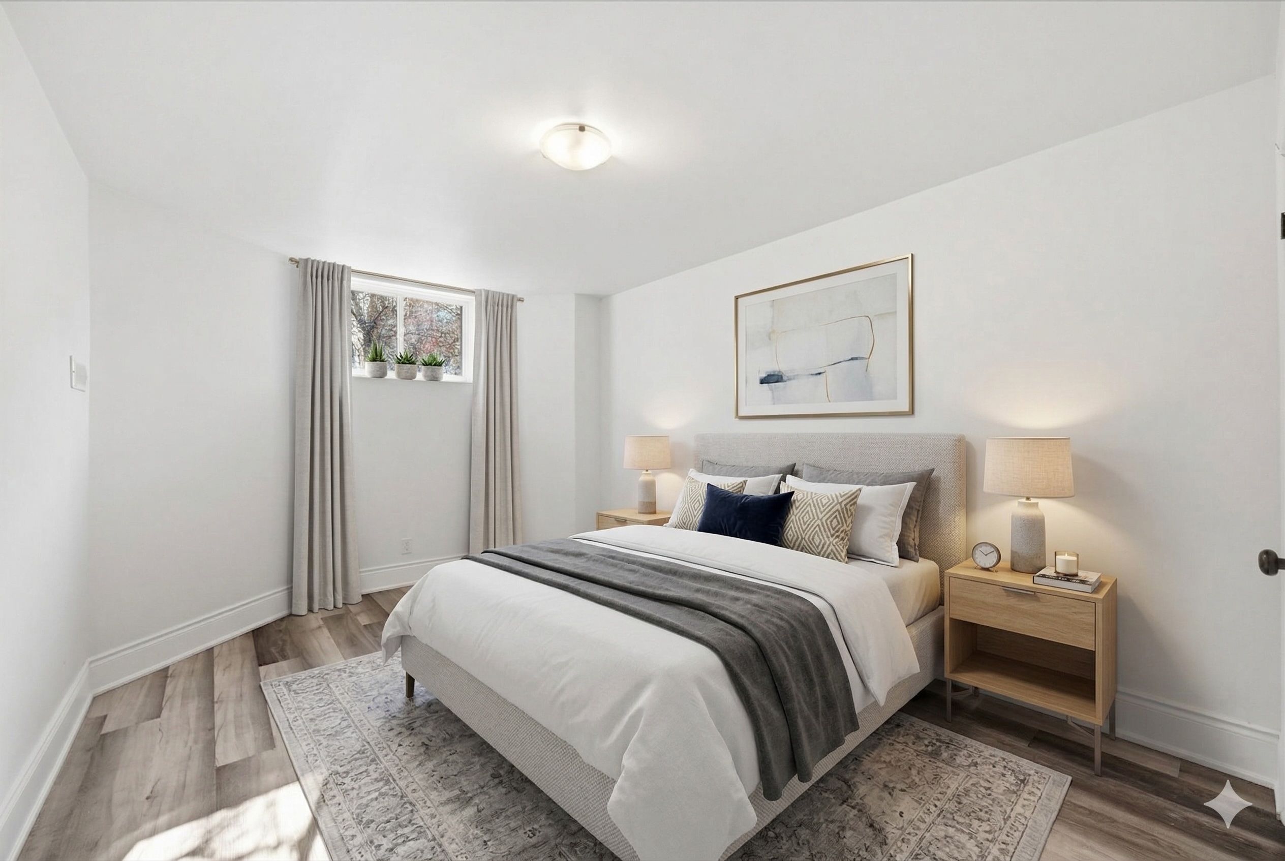 Recently updated, spacious 3-bedroom unit located on the lower level of a legal 4plex in hamilton's desirable durand neighbourhood. Recently updated, this bright and well finished unit offers a clean, modern feel throughout. The layout includes three full bedrooms including a primary with a private ensuite bathroom, along with an additional full 4-piece main bathroom. Bedrooms are well separated, offering added privacy. A large kitchen and dining area provides plenty of space for everyday living and connects to the main living area. The kitchen is well sized and functional, suited for both daily use and entertaining. The unit includes in-suite laundry and independent heating and cooling for individual comfort. Located in a highly sought-after area with quick access to locke street, downtown restaurants, st. Joseph's hospital, mcmaster university, hamilton go, public transit, and highway 403. Tenant pays hydro and gas (separately metered) plus 25% of water. Available immediately. Parking available for $50/mth. Some photos have been virtually staged.