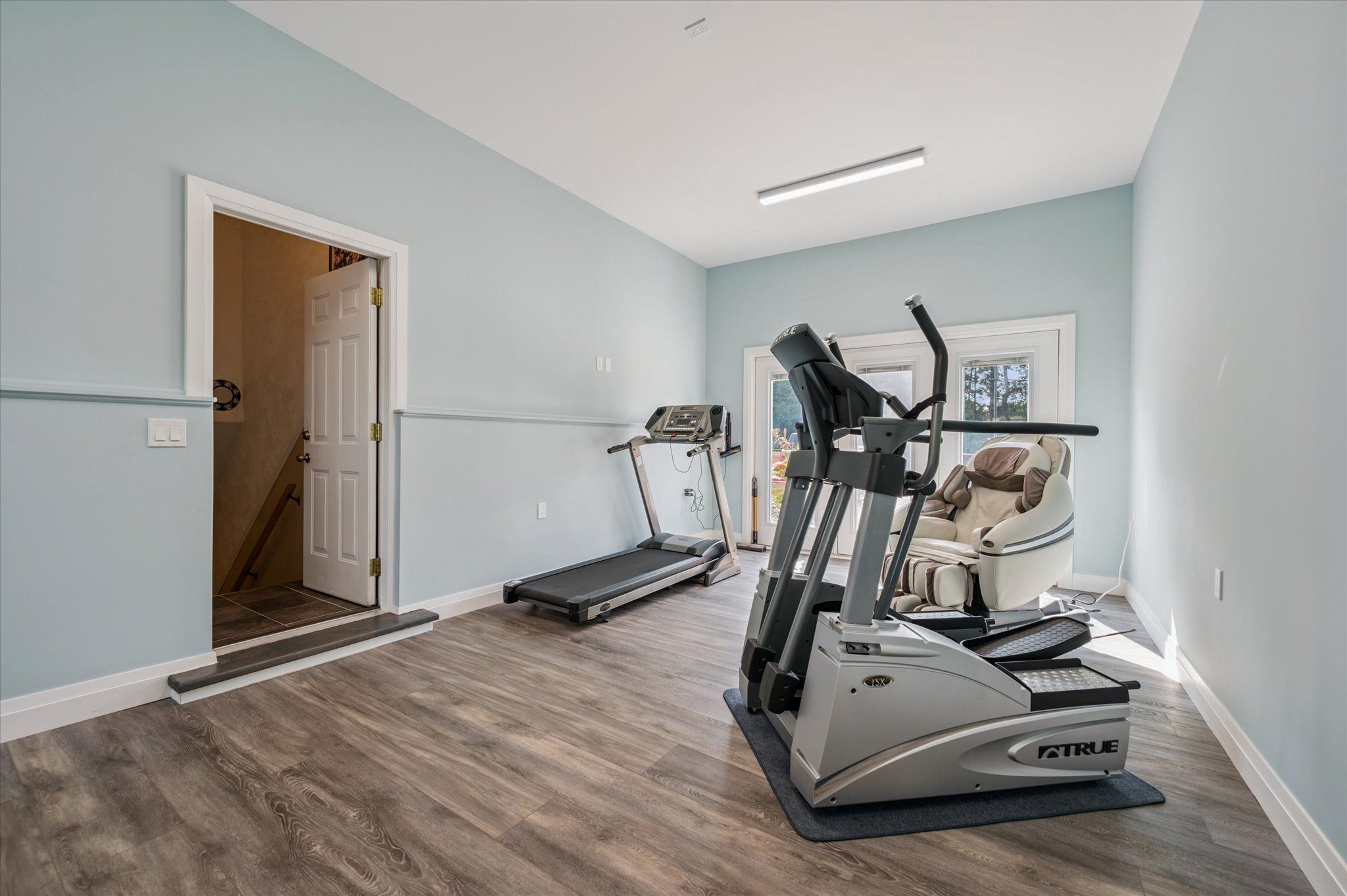 • Bright gym/office area in the garage, ideal for staying active at home.