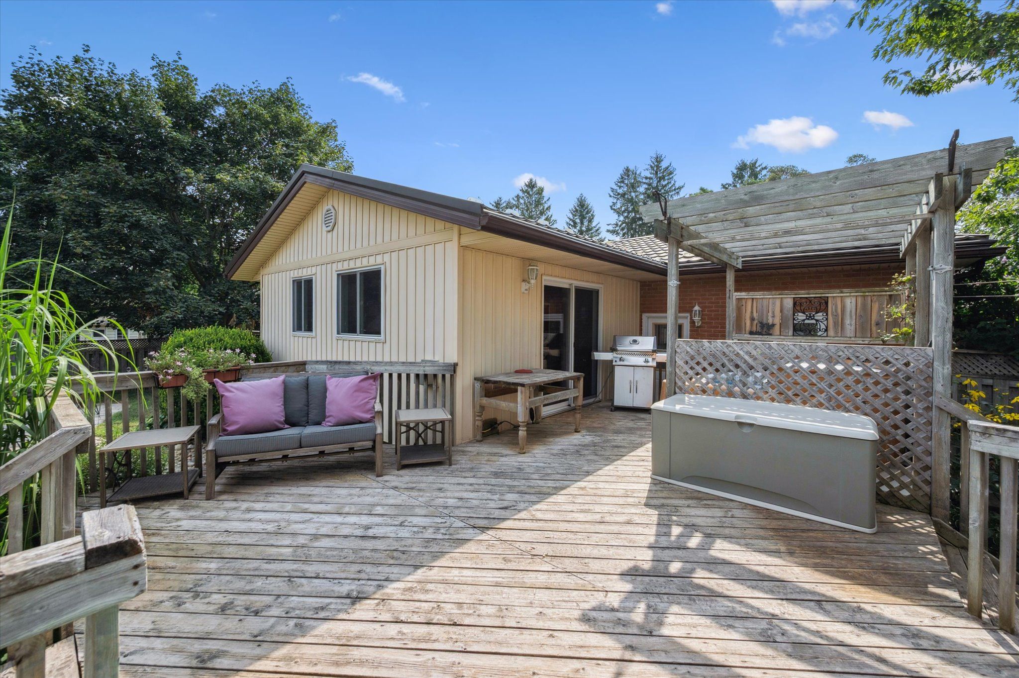 Welcome to colborne st! Located in the village of elora, this solid keating built bungalow has been well cared for by the same owners for 35 years. With approximately 2900sqft of living space, this comfortable home offers 3 bedrooms, 2 baths and an entertainer's kitchen/dining/great room. No need for a gym membership, the attached garage (easily converted back) has been repurposed into a bright gym/office combination. On the lower lever you'll find a spacious entertaining area with tons of storage. If outdoor living is a priority, then there is much to appreciate about the double lot. This mature neighborhood is the perfect setting for the large sundeck with soft tub. Perennial gardens line the private lot. Hardscaping offers many points from which to enjoy the koi pond and waterfall, pergola and fire pit. Outdoor storage is housed by two large storage sheds. These properties are rarely offered in the village. An easy commute to guelph, kw and west gta.