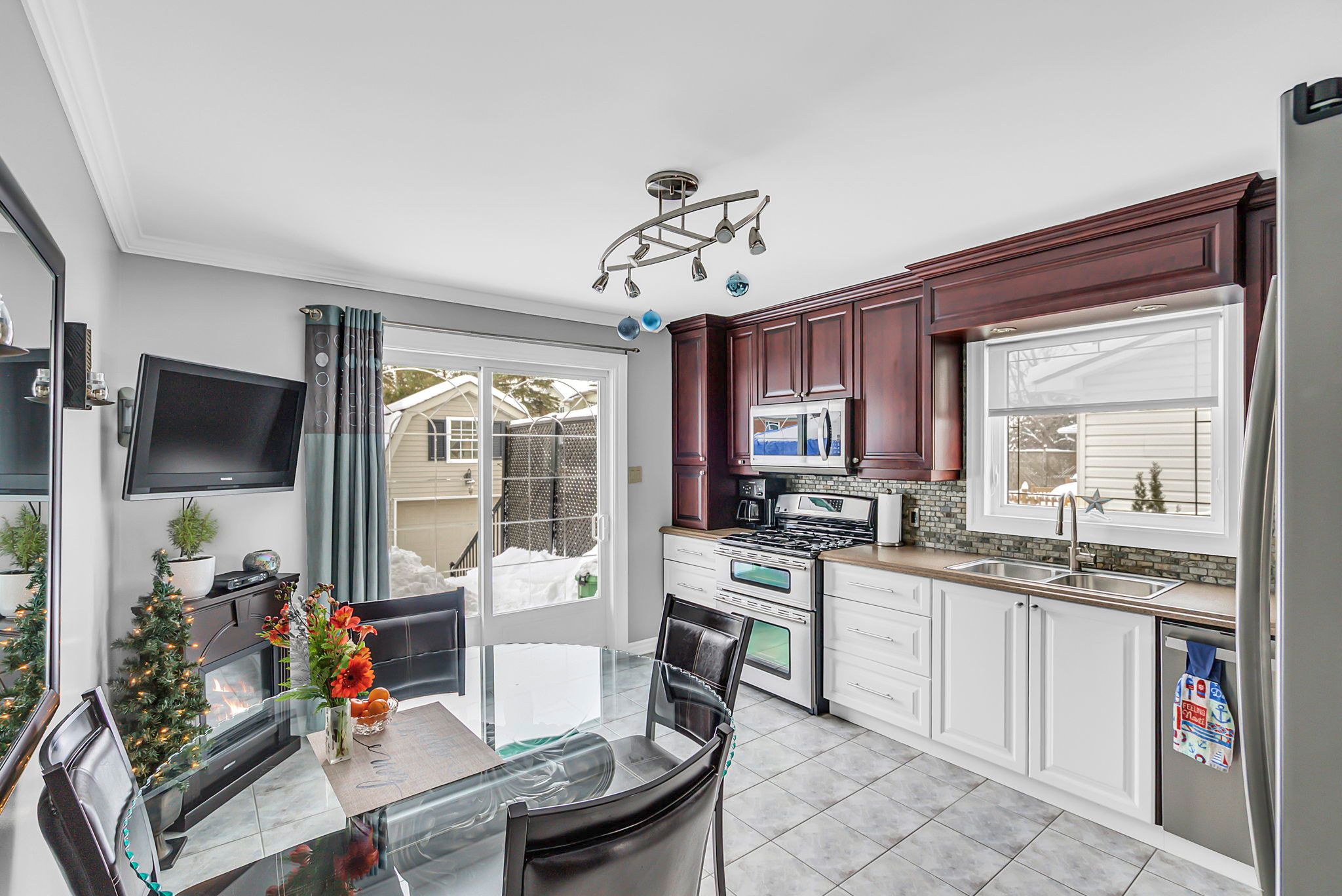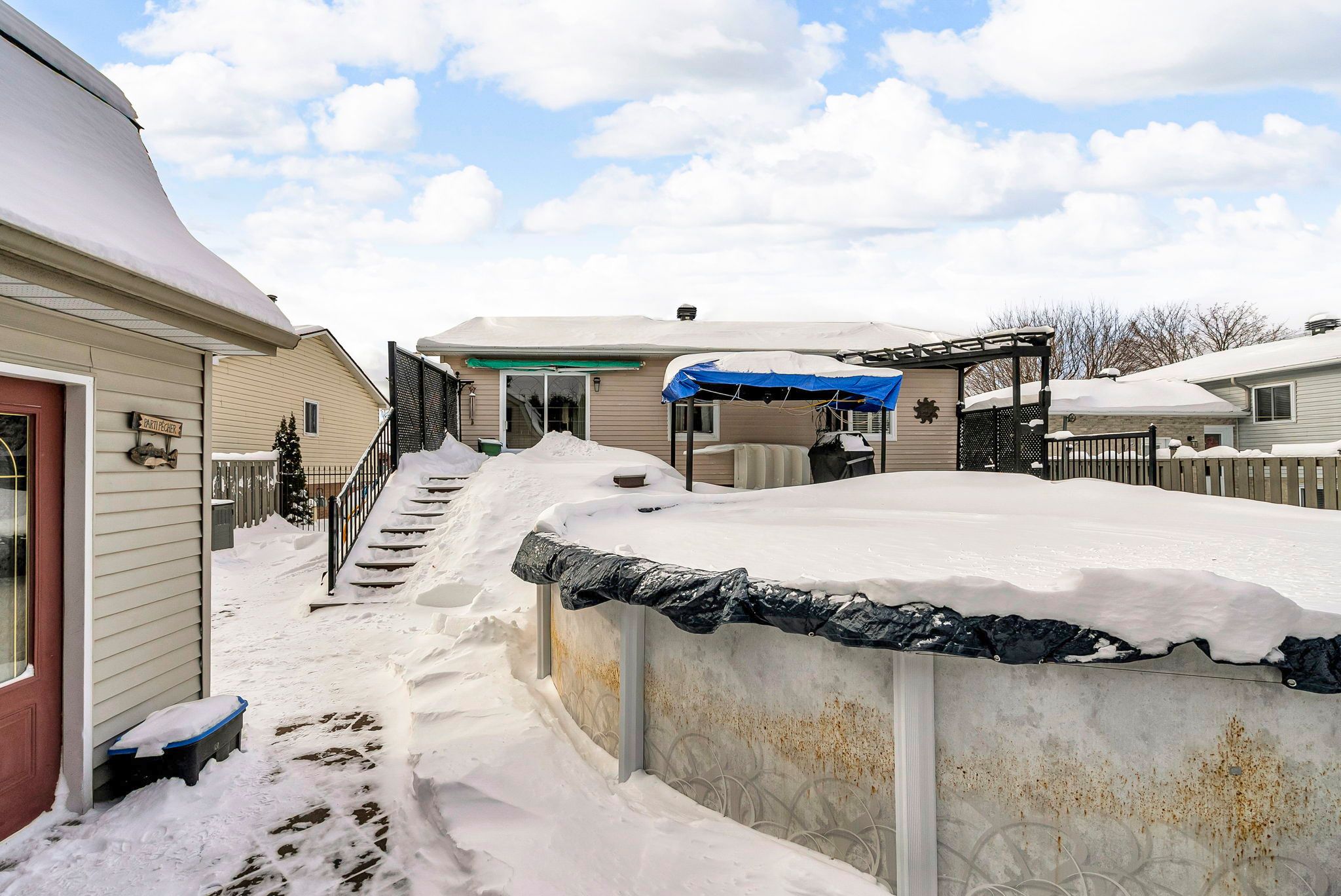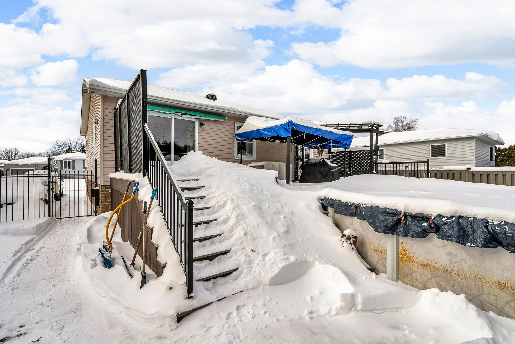 Welcome home to this stylish 3+1 bedroom raised bungalow with detached garage, showcasing plenty of curb appeal and true pride of ownership throughout. Situated in a desirable location, this inviting home features a bright living room, a welcoming eat-in kitchen, and three bedrooms on the main floor, all served by a 4-piece bathroom. The functional layout includes several updates that enhance both comfort and style. The finished basement offers excellent additional living space boasting a 4th bedroom, 4pc bathroom, family room with a cozy corner fireplace, a dedicated laundry room- making it ideal for guests, a home office, or growing families. Outside, enjoy a beautifully landscaped yard with interlocking stonework, 2 tier deck with gazebo, an above-ground pool for summer enjoyment, and a detached 12 x 25 heated garage with loft providing ample storage and parking. Other notables: high efficiency gas furnace and central a/c 2024, roof shingles 2015, windows 2017, front door 2023. A wonderful opportunity to own a move-in-ready well maintained home in a great area! *some photos have been virtually staged.