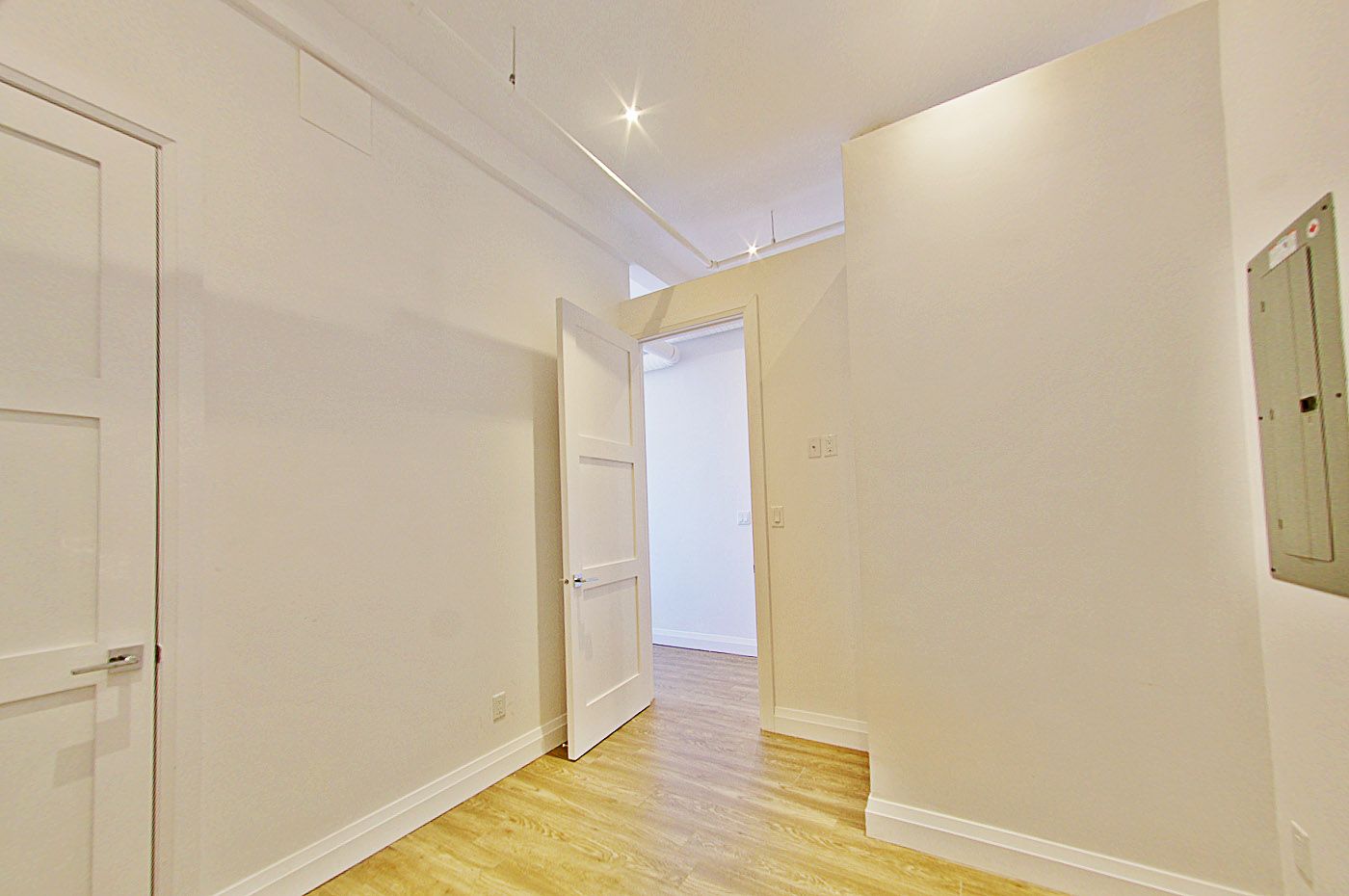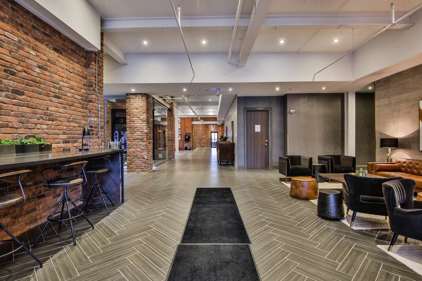 • Modern loft-style condo with soaring 14-foot ceilings and large windows.