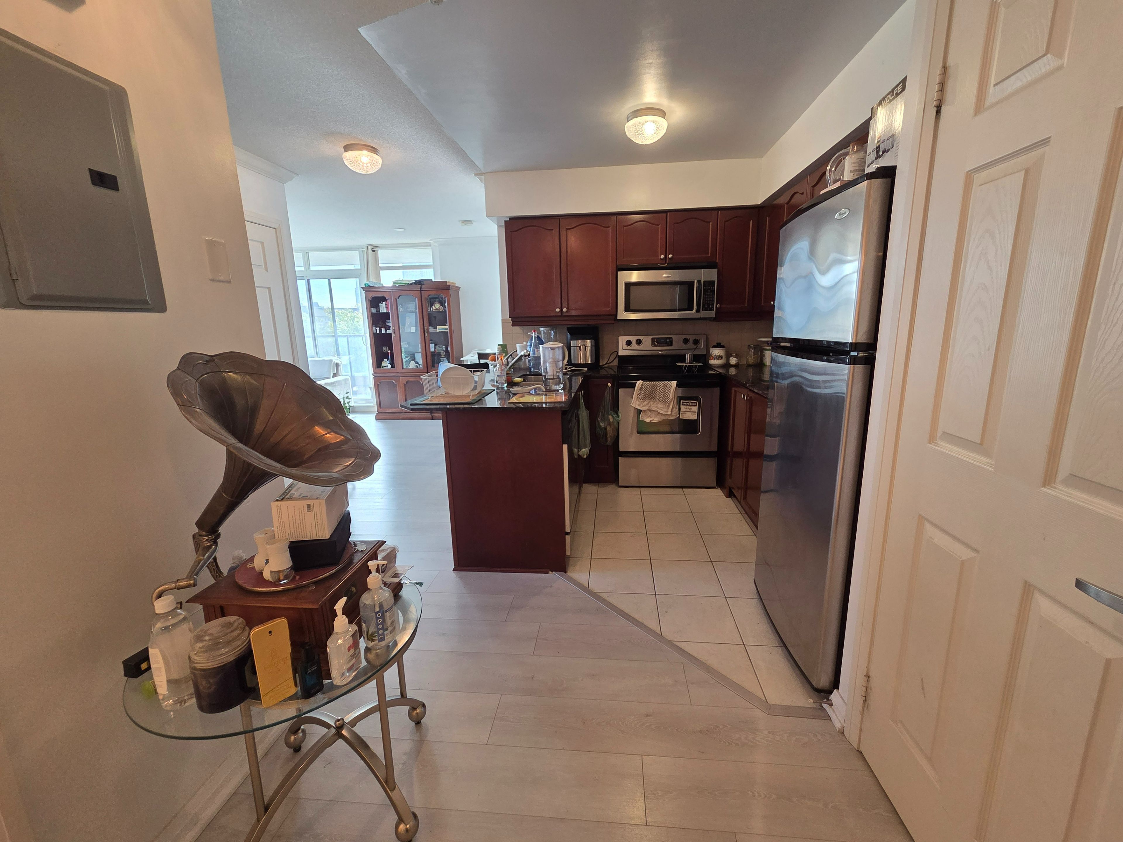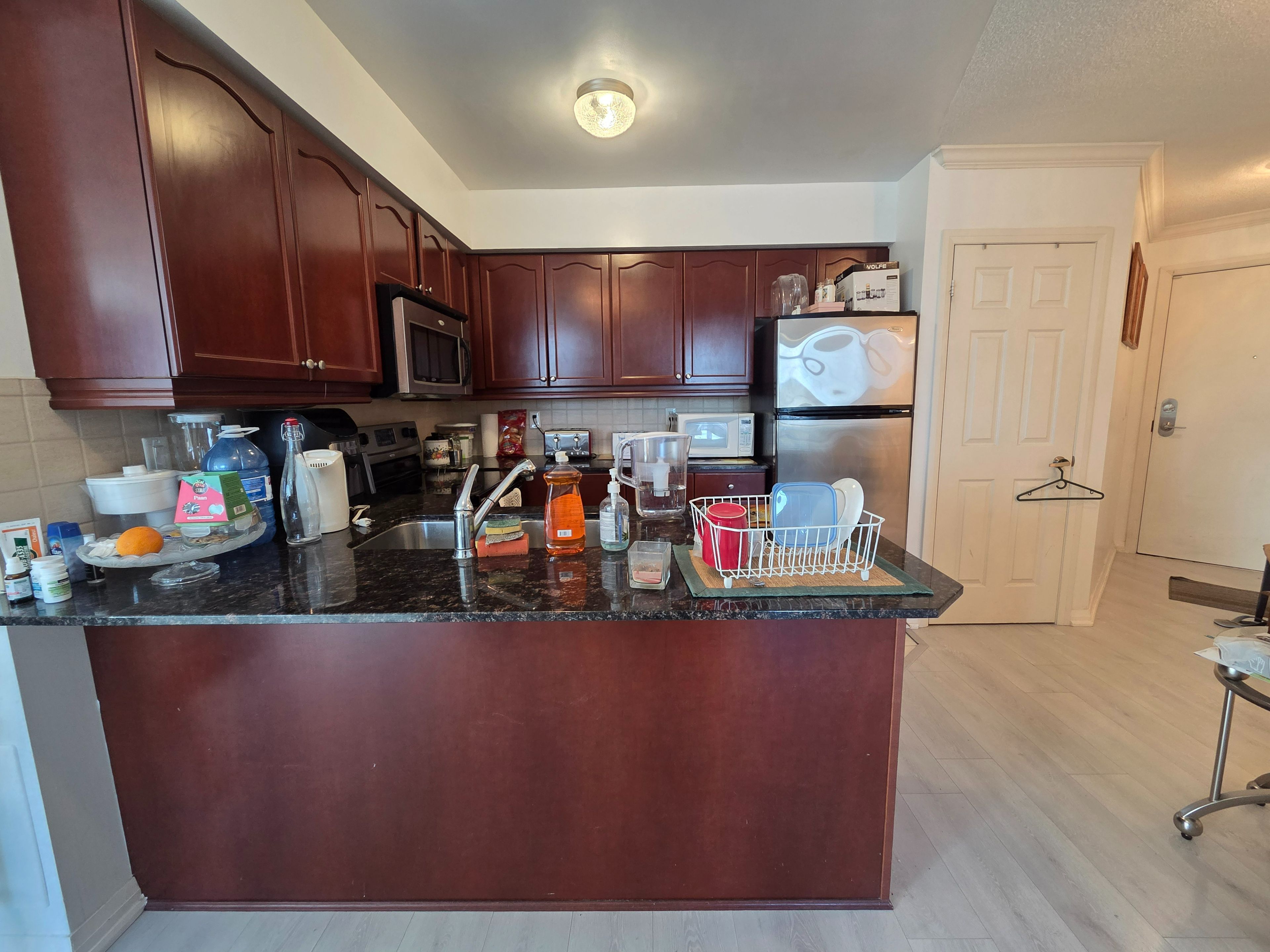 Luxury living awaits at tuscany gates, perfectly situated in the heart of downtown mississauga! This beautifully maintained 2-bedroom, 2-bathroom suite offers a bright, open concept layout designed for comfort and modern living. The spacious kitchen is complete with granite countertops, breakfast bar, stainless steel appliances, and ample cabinetry, flowing seamlessly into the living and dining area with newer laminate floors throughout. The primary bedroom features a full 4-piece ensuite and generous closet space, while the second bedroom is ideal for guests, family, or a home office setup. Step out onto your private balcony and enjoy breathtaking city views with plenty of natural light filling the space. Residents will appreciate the exceptional building amenities including 24-hour concierge, fitness centre, outdoor pool, games and party rooms, and ample visitor parking. Conveniently located just open minutes to square one shopping centre, restaurants, parks, top-rated schools, major highways (401, 403, 407), public transit, and pearson airport. A perfect home for those seeking style, convenience, and comfort in one of mississauga's most sought-after communities!