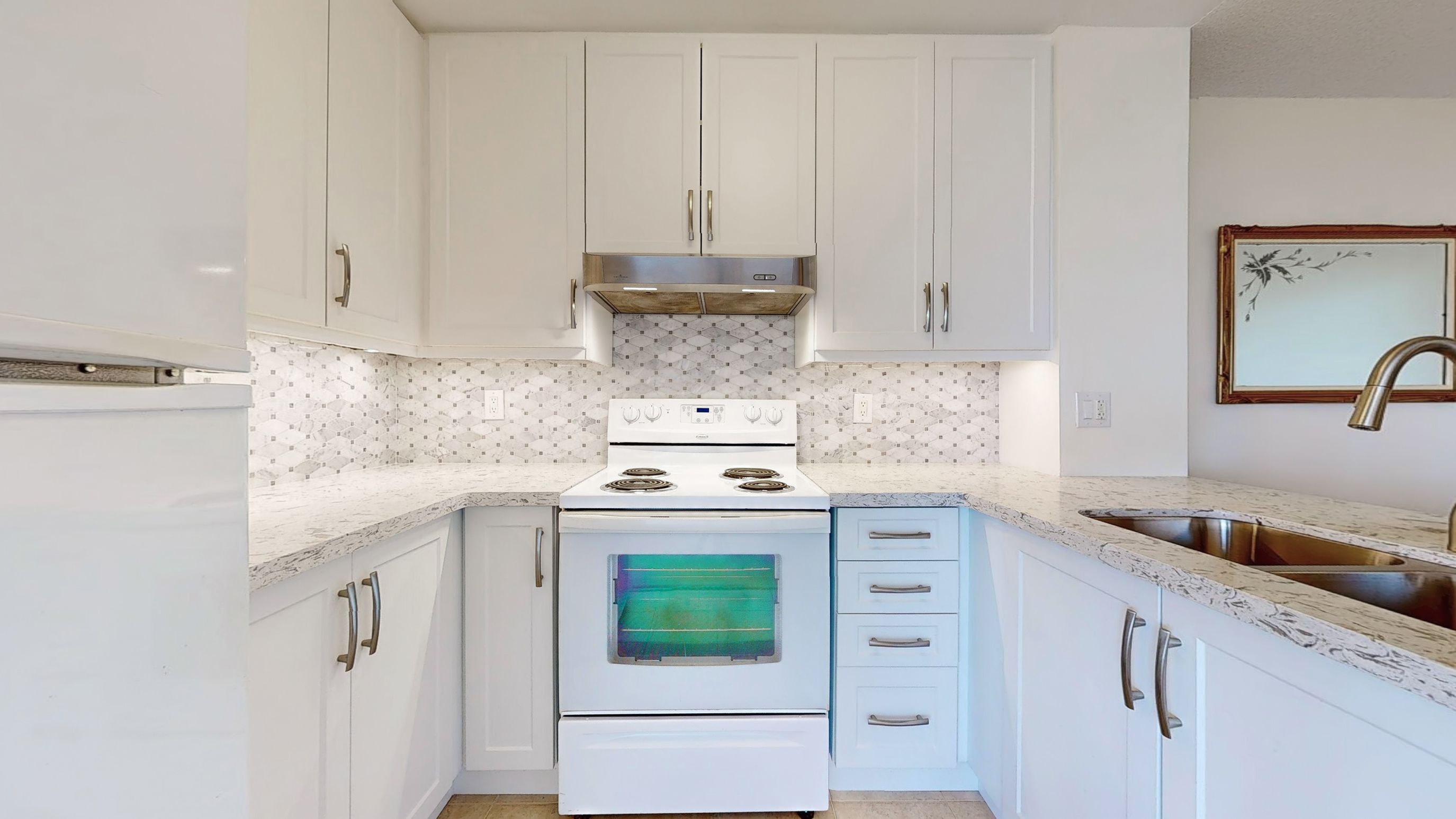 • Upgraded open-concept kitchen with granite counters and breakfast bar.