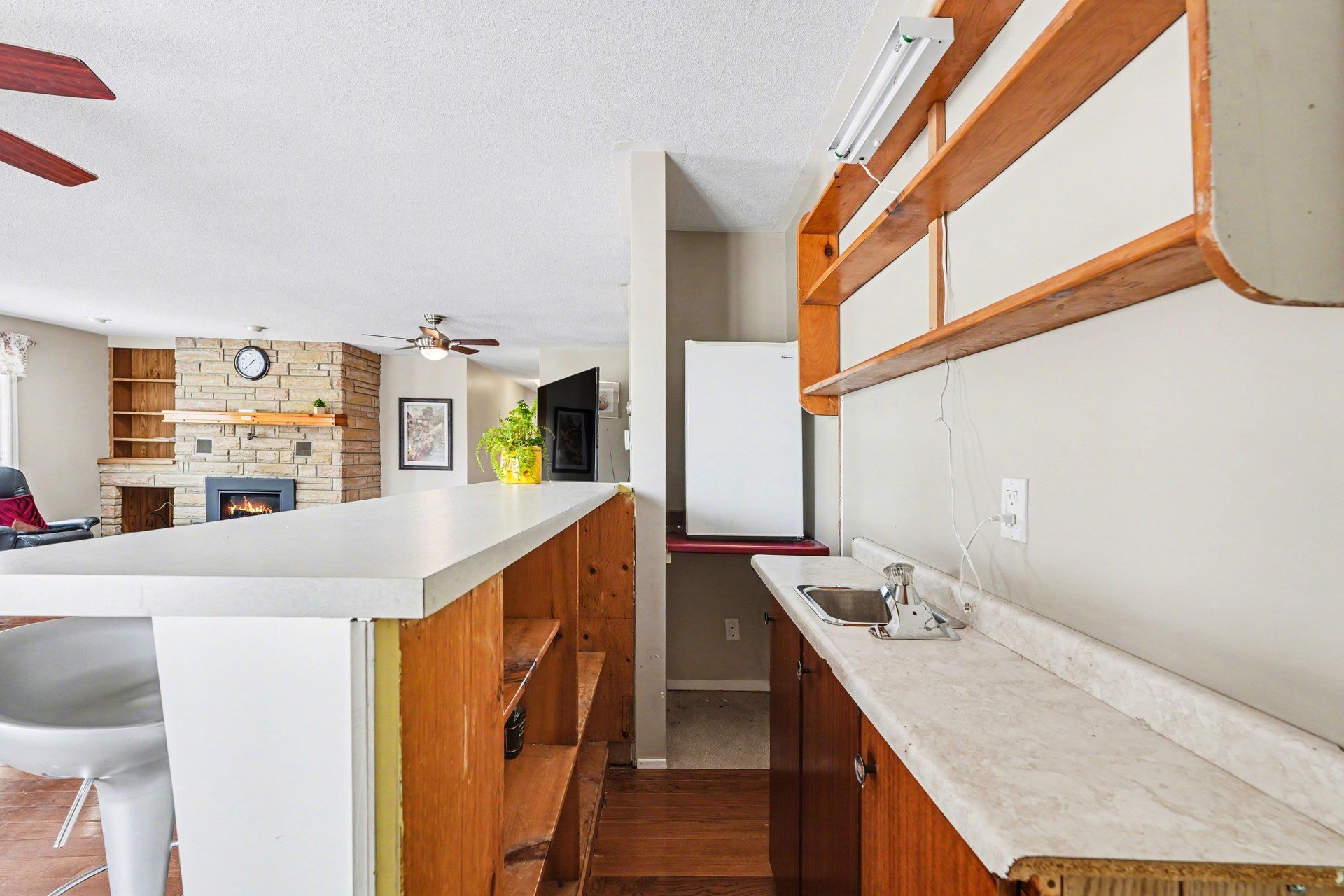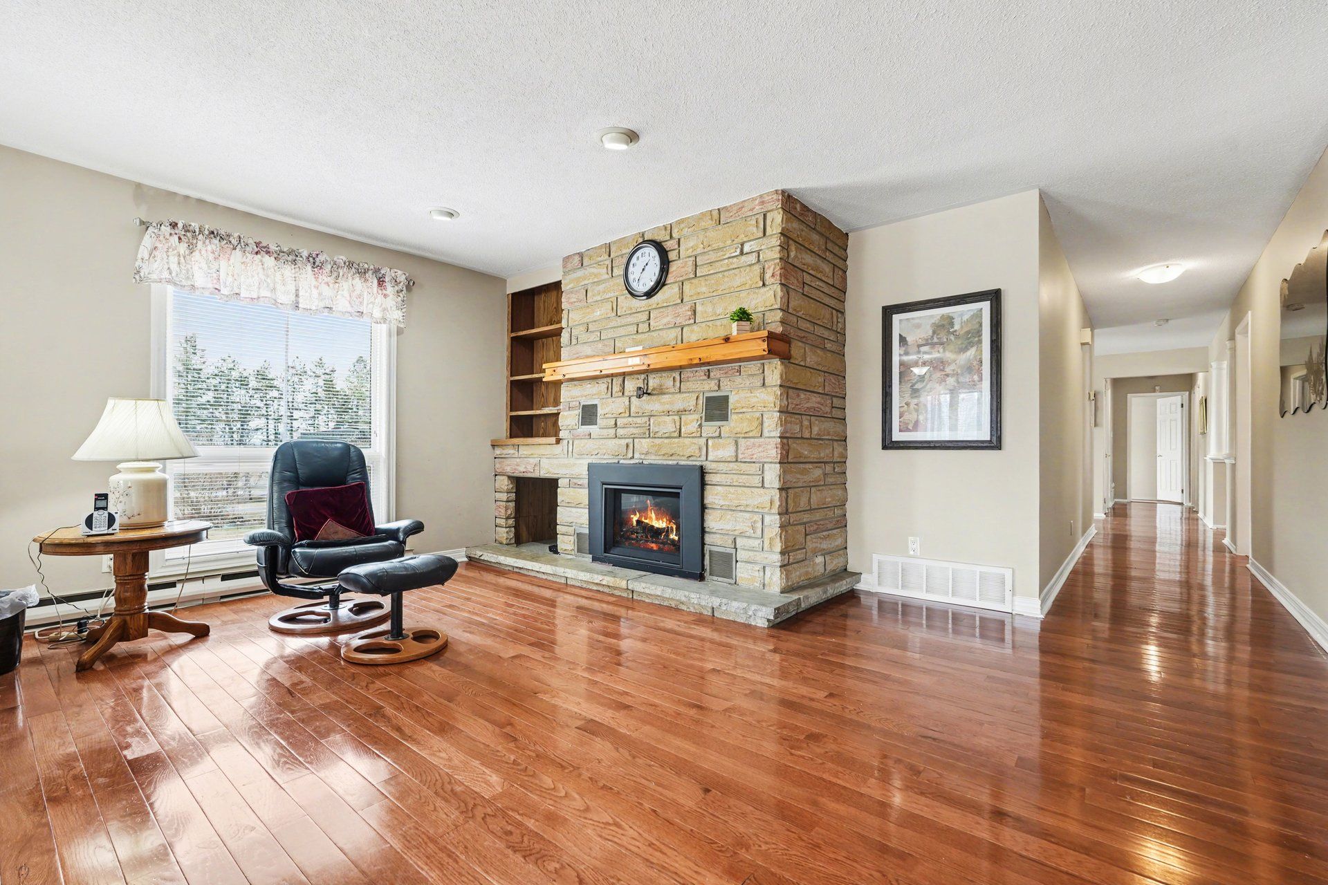 • Expansive family room featuring a cozy gas fireplace and wet bar.