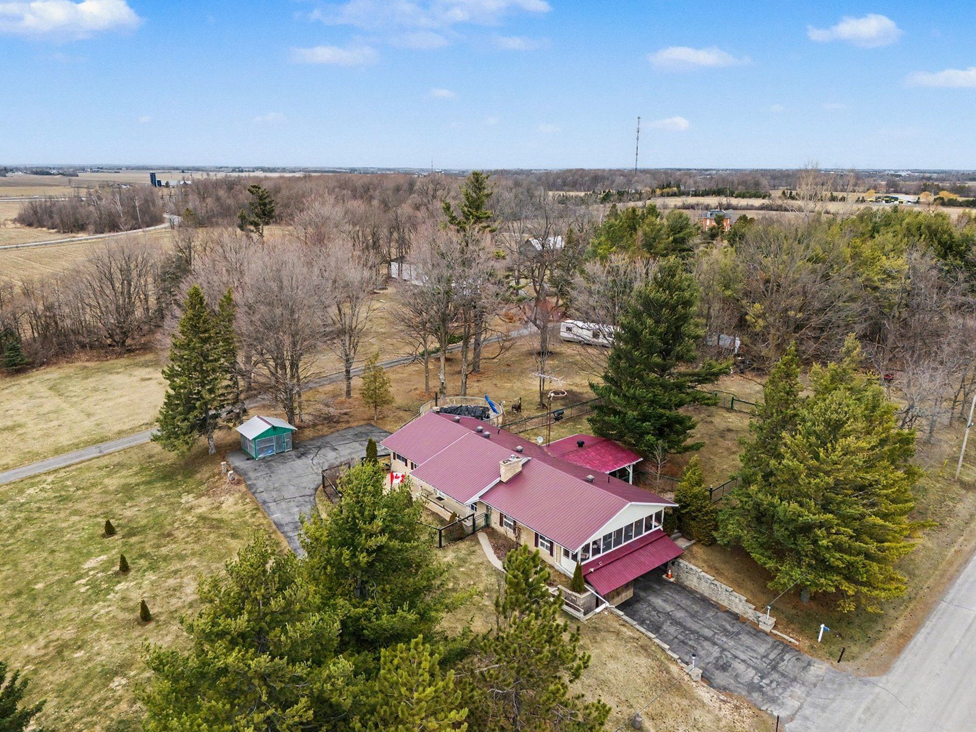 Welcome to this expansive bungalow set on a picturesque 2. 4-acre lot in a quiet subdivision on the outskirts of carleton place -offering the perfect balance of privacy and convenience, just 5 minutes to carleton place and 10 minutes to stittsville. This well-appointed 3-bedroom, 3-bathroom home boasts over 2,200 sq ft of thoughtfully designed living space, ideal for families and those who love to entertain. The main level features rich hardwood flooring and a versatile layout, including a formal dining room, an eat-in kitchen, and a separate, intimate living room for quiet evenings. At the heart of the home, an expansive family room impresses with a cozy gas fireplace, a fully operational wet bar, and direct access to a charming screened-in porch-perfect for relaxing or hosting gatherings year-round. The lower level offers exceptional flexibility with additional living space, a full bathroom, workshop, ample storage, and convenient access to the attached two-car garage with inside entry. Outdoors, enjoy your own private retreat with fenced front and back yard spaces, a covered rear deck, front patio, and an above-ground pool-ideal for making the most of every season. Two paved driveways and a durable steel roof add to the home's practicality and long-term value. A rare opportunity to enjoy country living with close-to-town convenience-this property truly has it all.