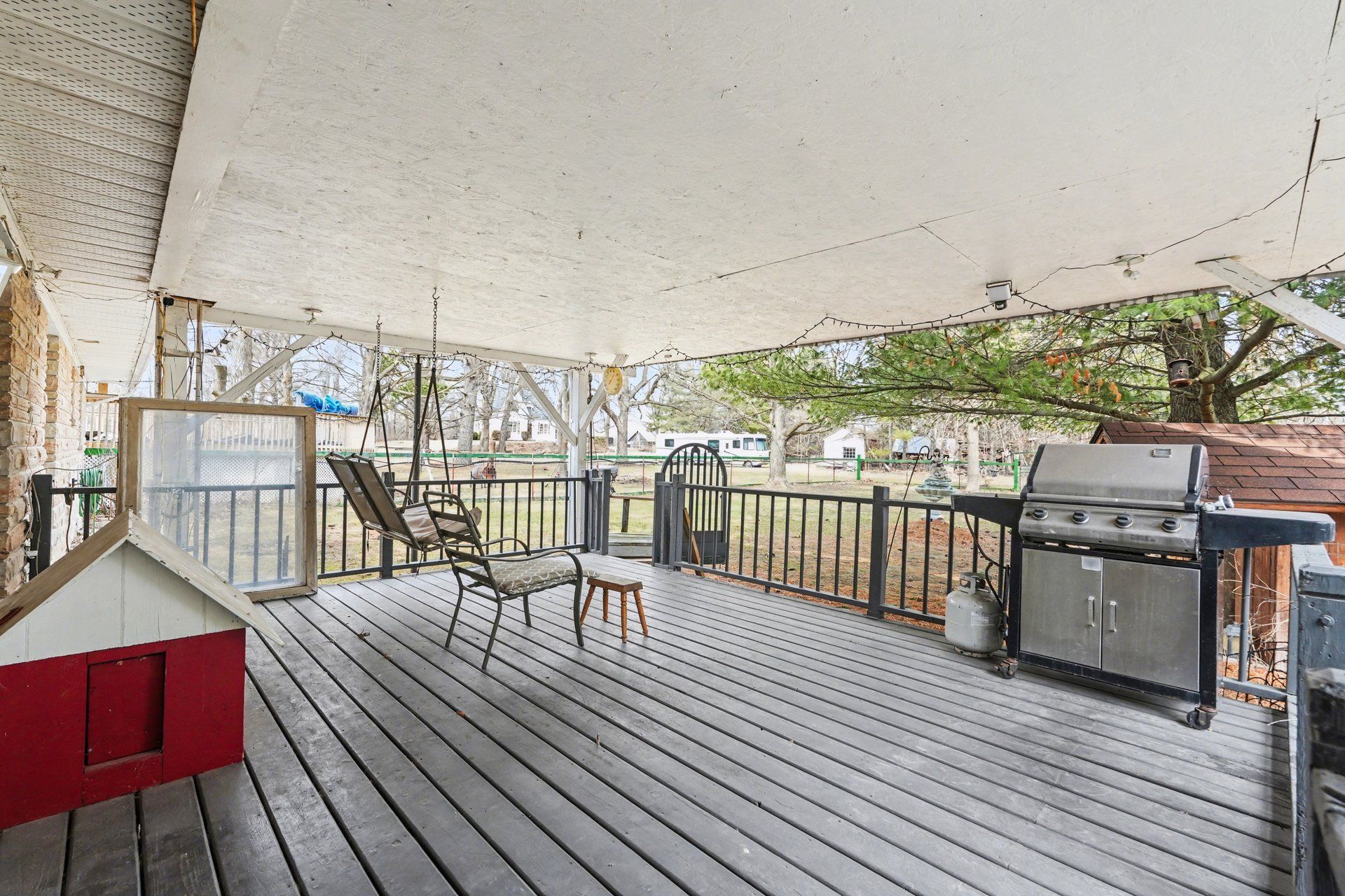 • Private outdoor retreat with a covered deck and above-ground pool.