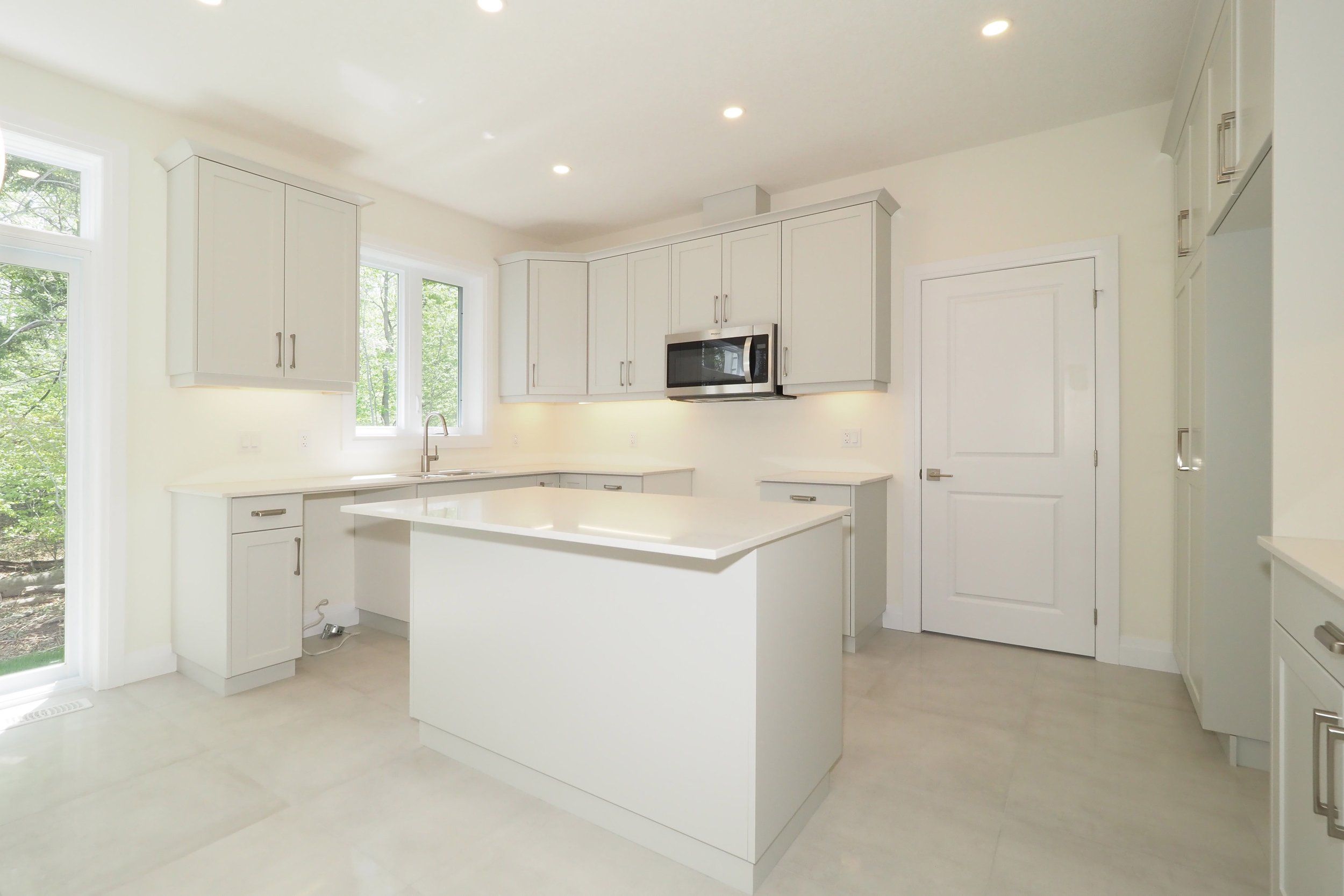 • Open concept kitchen with plenty of cabinets and breakfast bar.