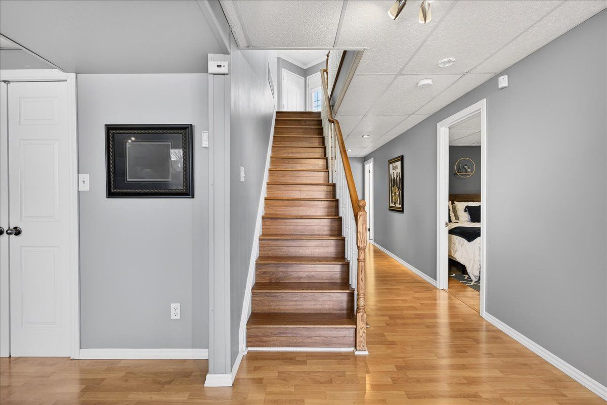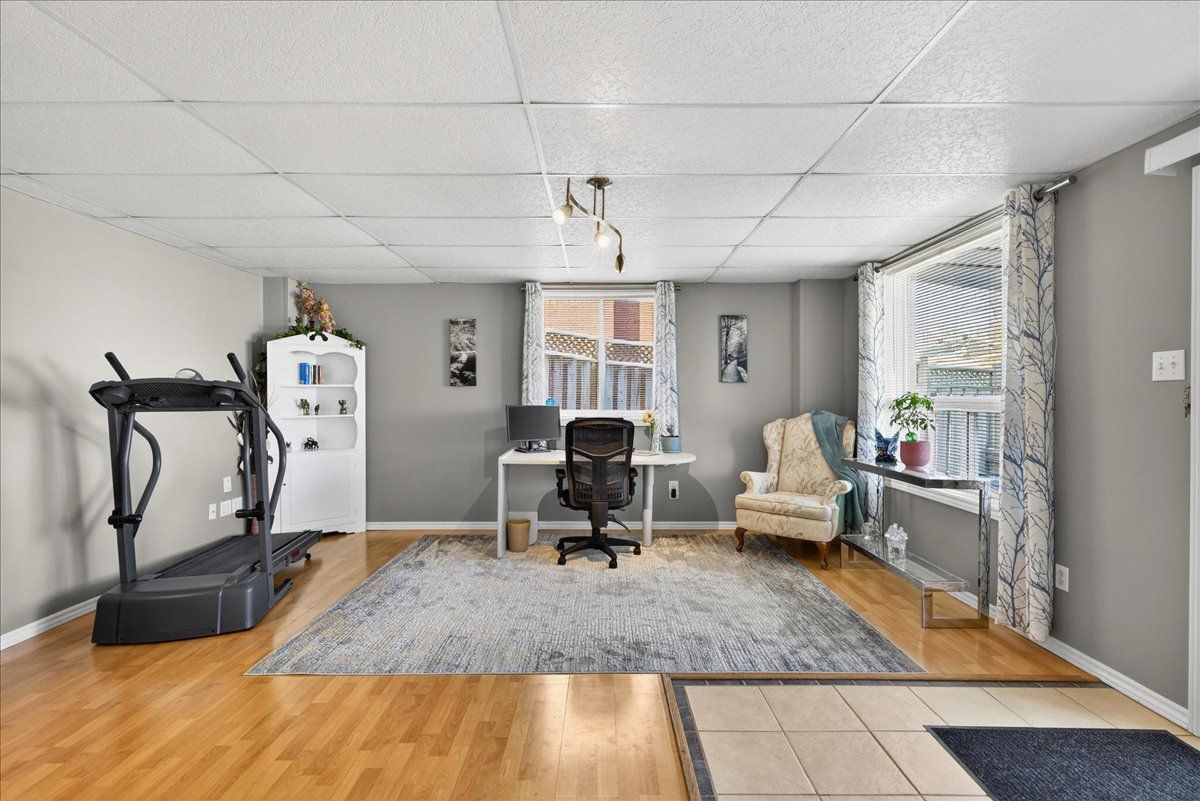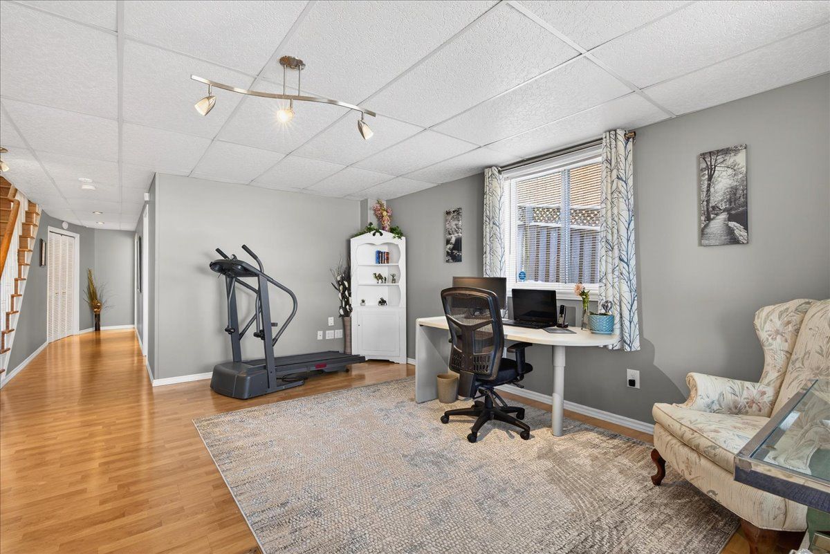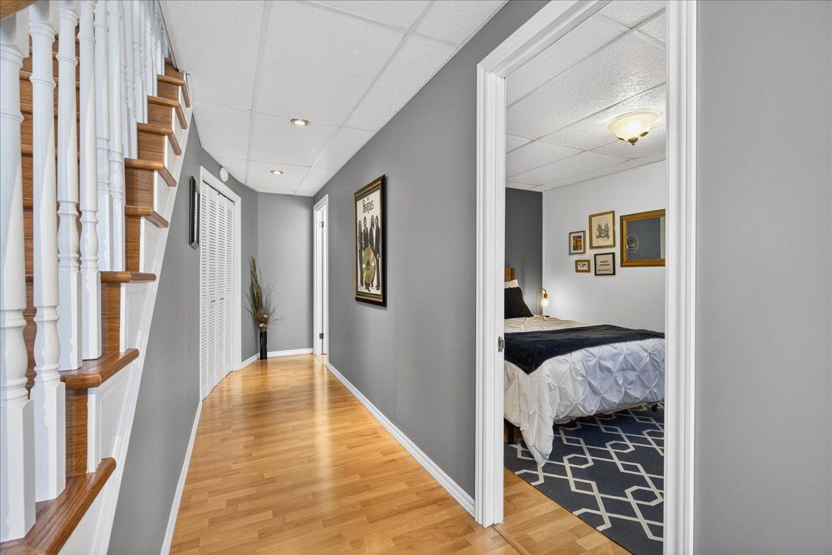 • Finished lower level featuring natural light, recreation area, and additional bedroom.