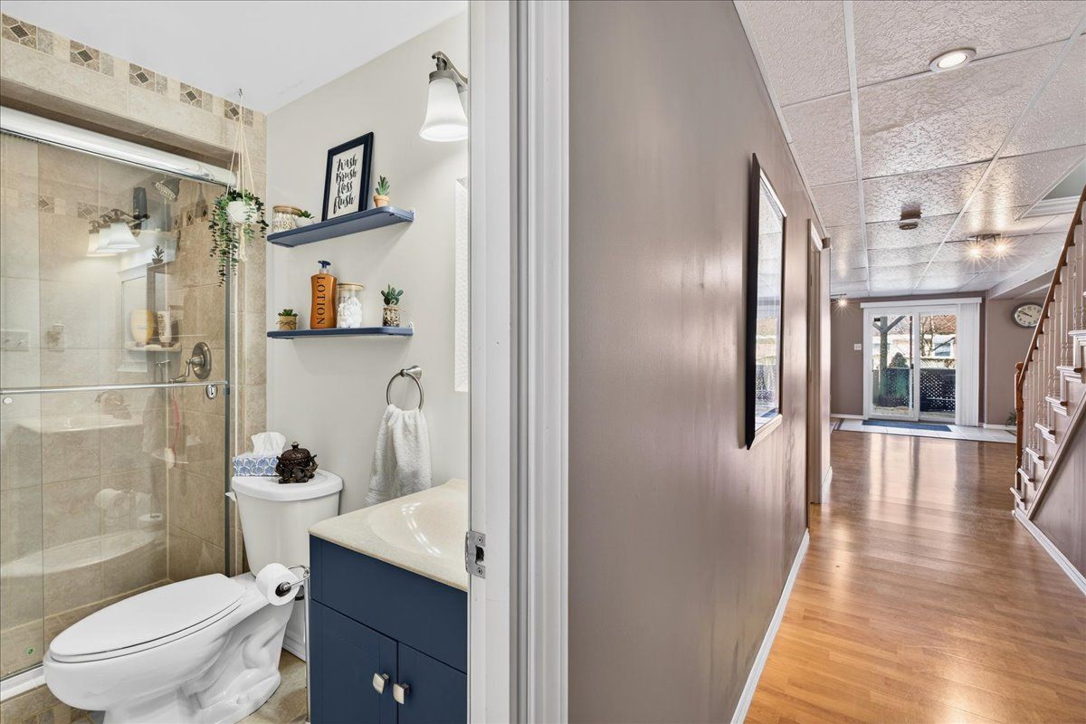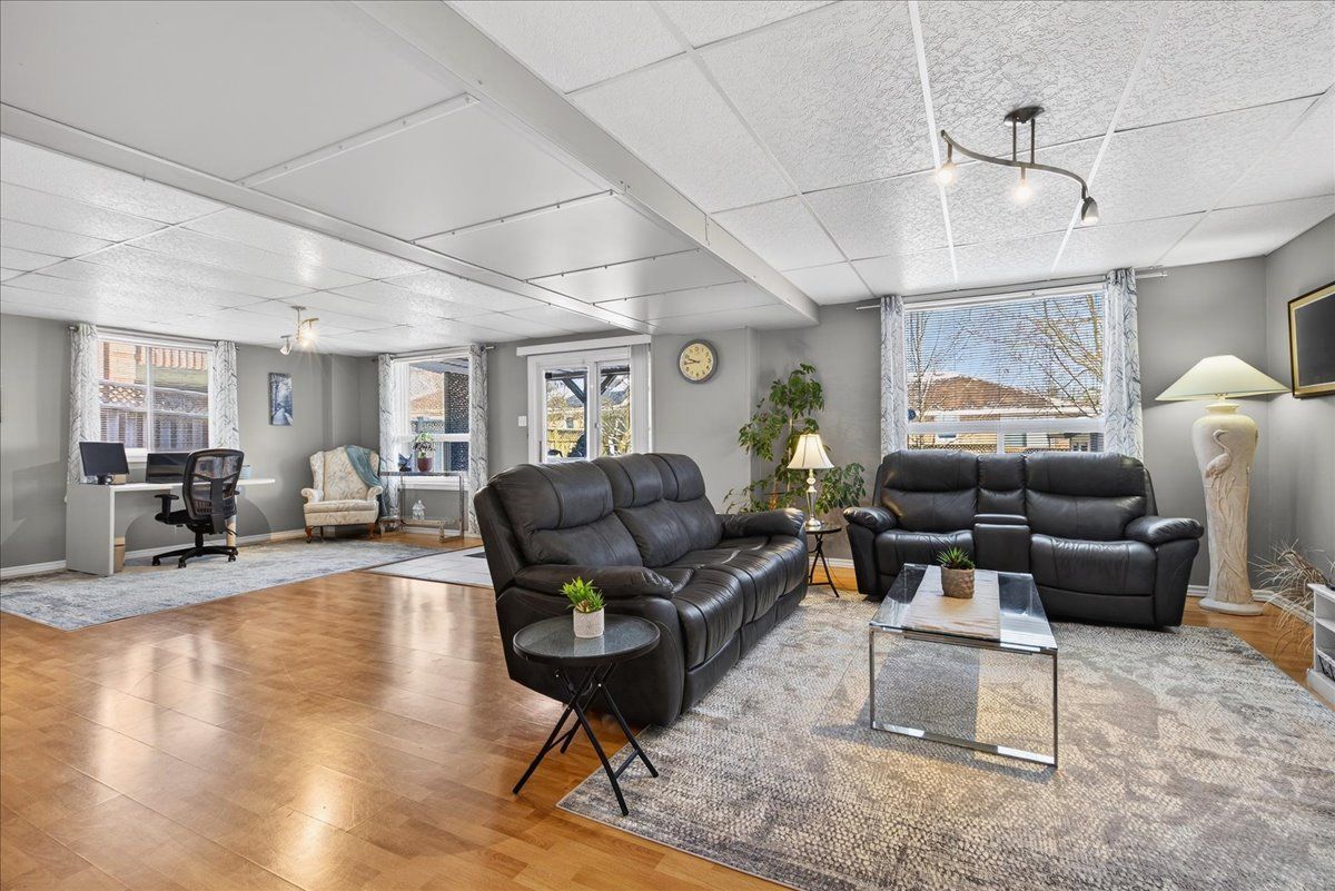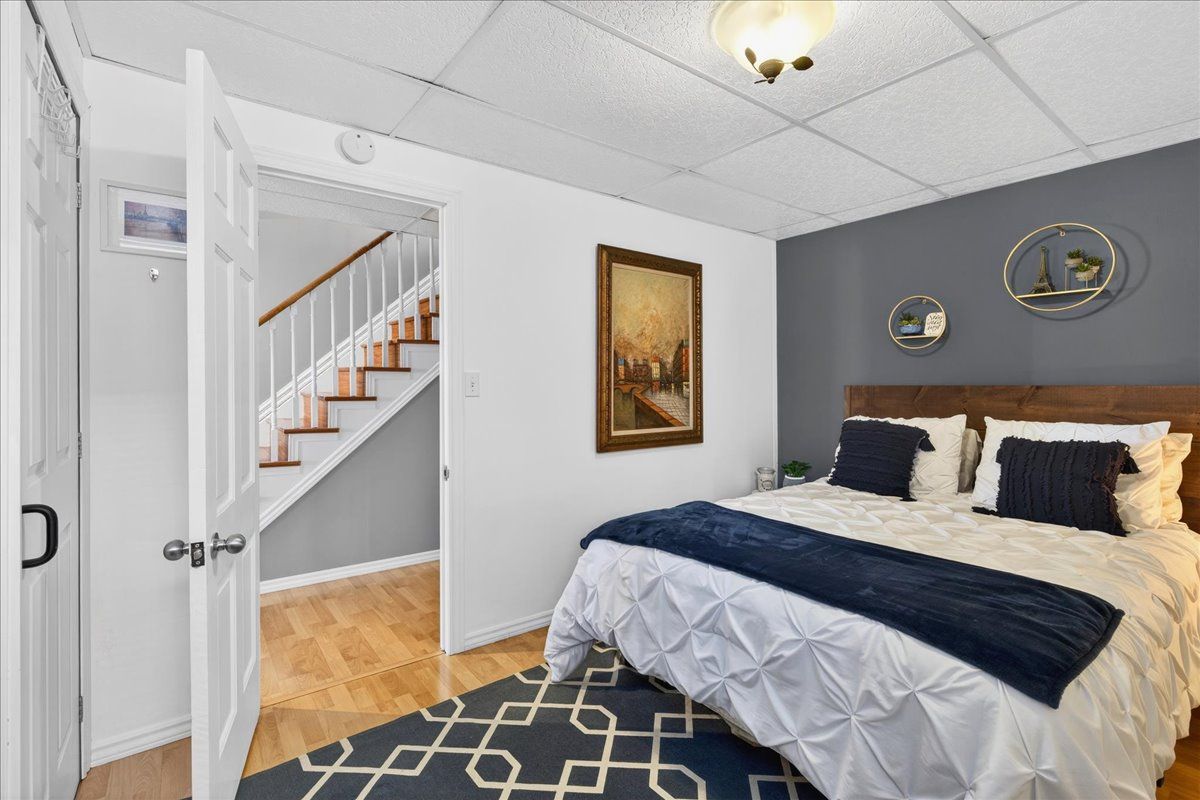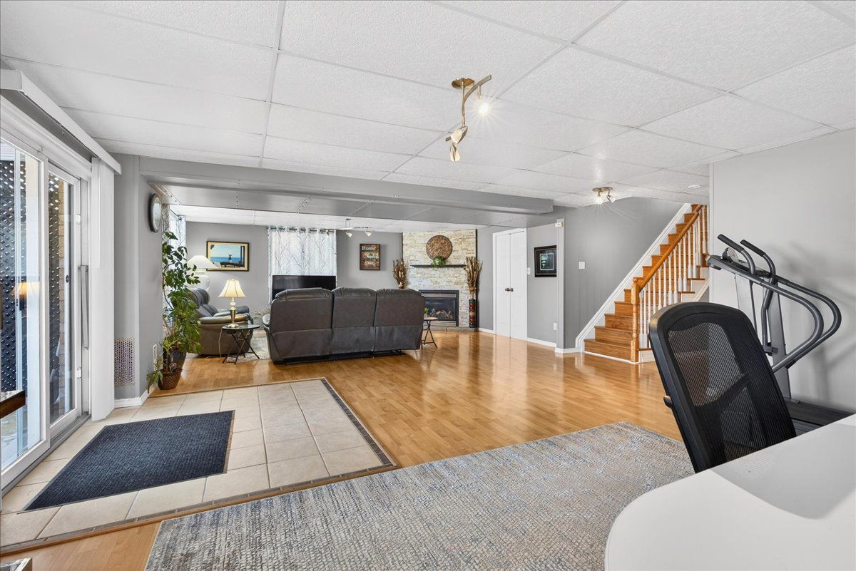 • Finished lower level featuring natural light, recreation area, and additional bedroom.
