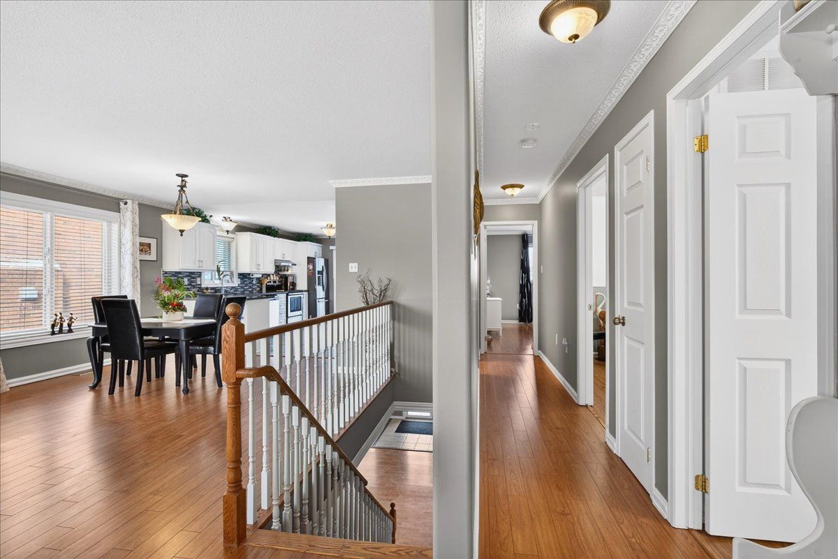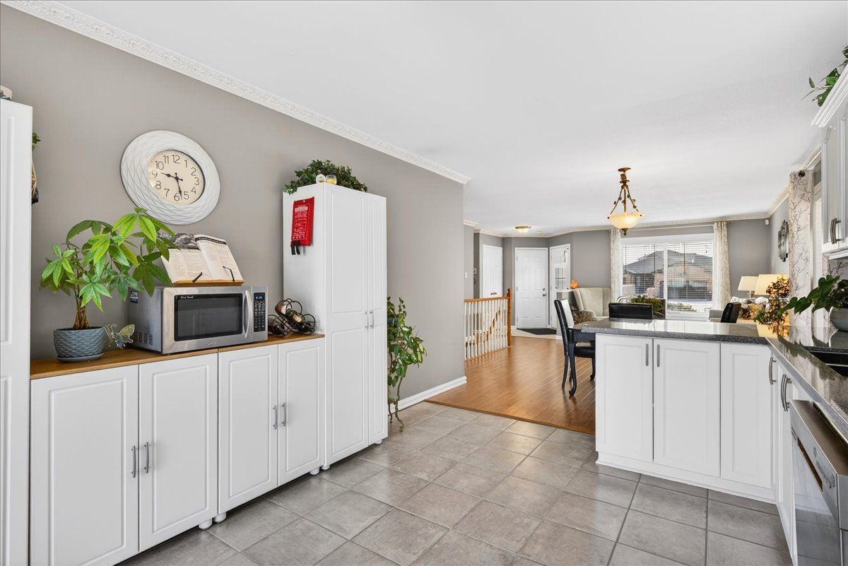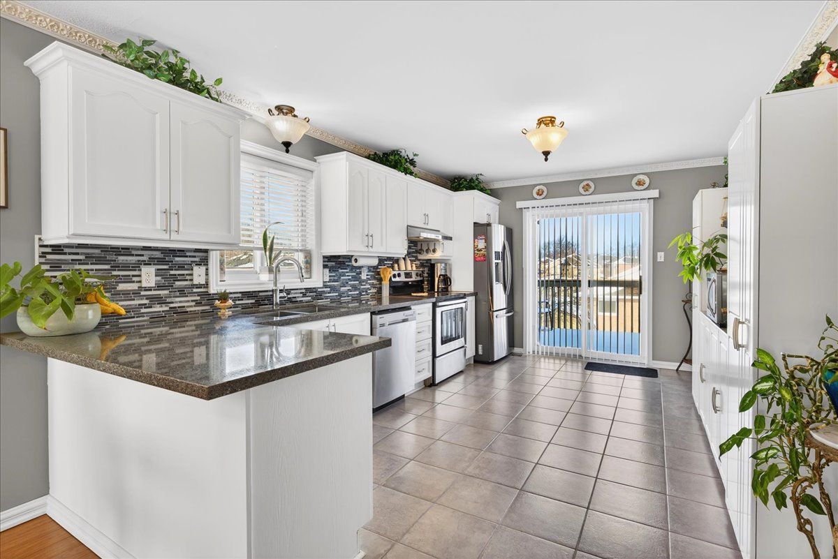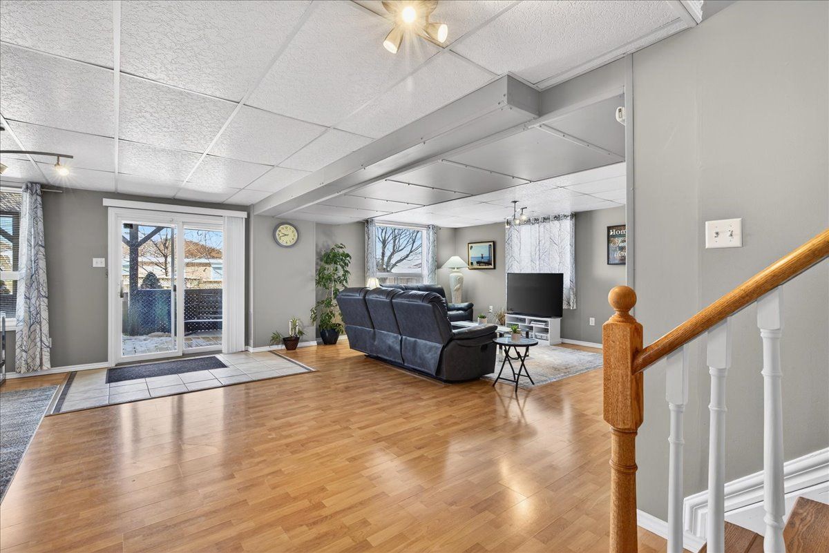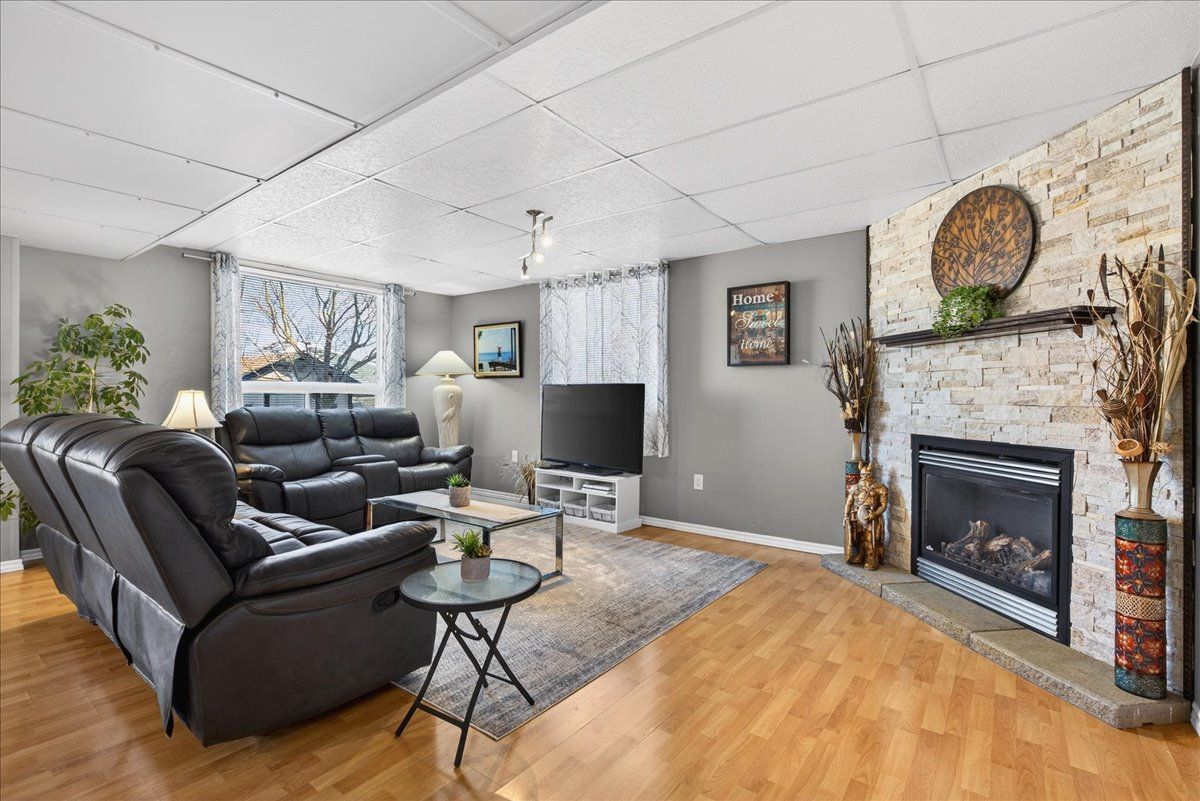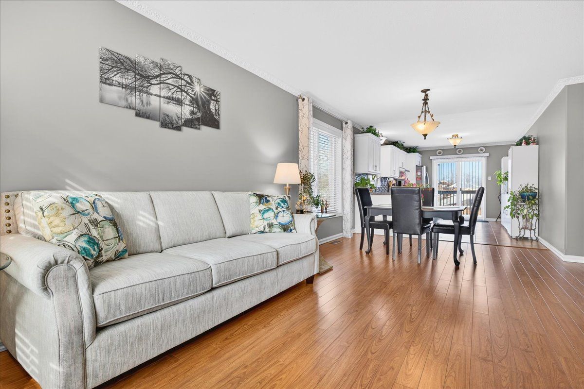 This well-appointed walk-out bungalow offers an ideal setting for families, situated in a desirable, community-oriented neighbourhood. The main level features an open-concept design that enhances natural light and creates a functional, spacious flow throughout. Both the front and rear yards are fully fenced and landscaped, offering privacy along with a 150 sq. Ft. Stone patio, perfect for outdoor entertaining. The property accommodates parking for three vehicles and includes a double car garage, with updated garage doors completed in 2023. The kitchen is designed for both style and practicality, featuring quartz countertops, stainless steel appliances, a modern backsplash, and a bright eat-in area with sliding doors leading to a 10 ft. By 20 ft. Raised deck. A separate dining space connects seamlessly to the generously sized living room, making it well-suited for hosting and everyday living. The primary bedroom provides a comfortable retreat with its own four-piece ensuite. Two additional bedrooms and a full four-piece bathroom complete the main floor layout. The fully finished walk-out lower level offers excellent versatility, with large windows bringing in ample natural light. This space includes a spacious recreation area, an additional bedroom, a three-piece bathroom with walk-in shower, and a dedicated laundry room. The home is finished with durable, low-maintenance laminate flooring throughout, with no carpet. Notable updates include roof shingles replaced in 2019 and several window upgrades completed in 2023. Conveniently located close to rvh, georgian college, local schools, major commuter routes including highways 400 and 11, as well as shopping, dining, and nearby parks, this property delivers a strong balance of comfort, functionality, and location.