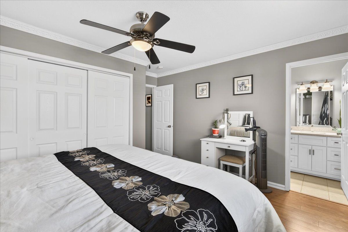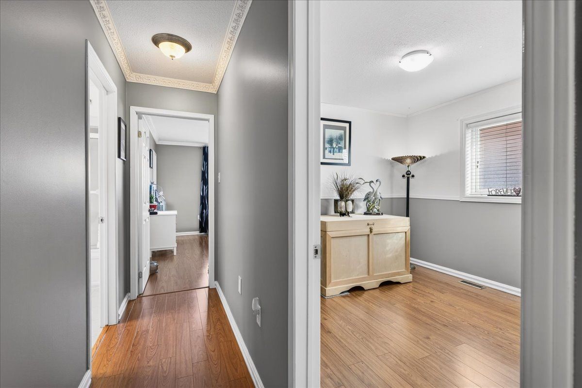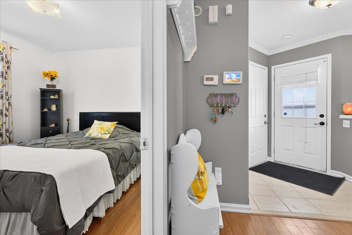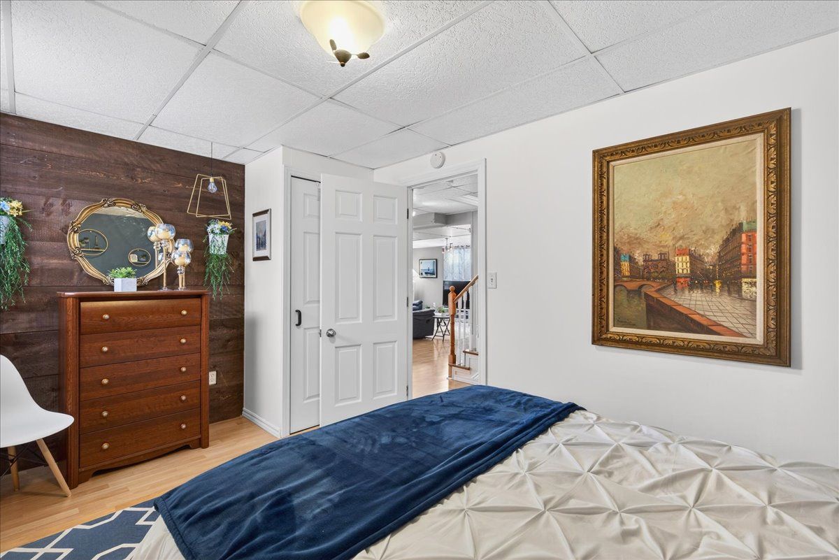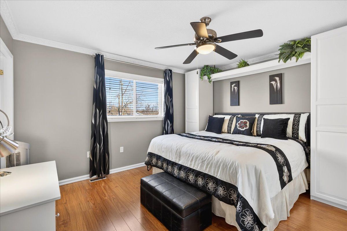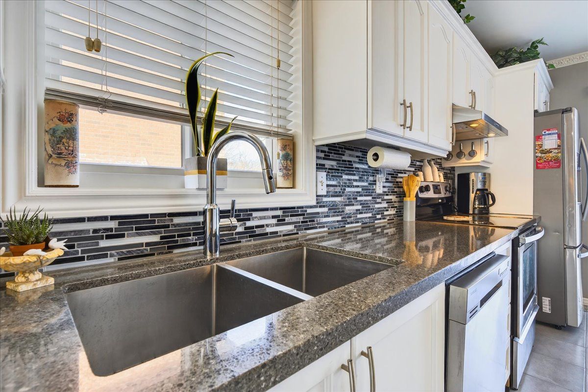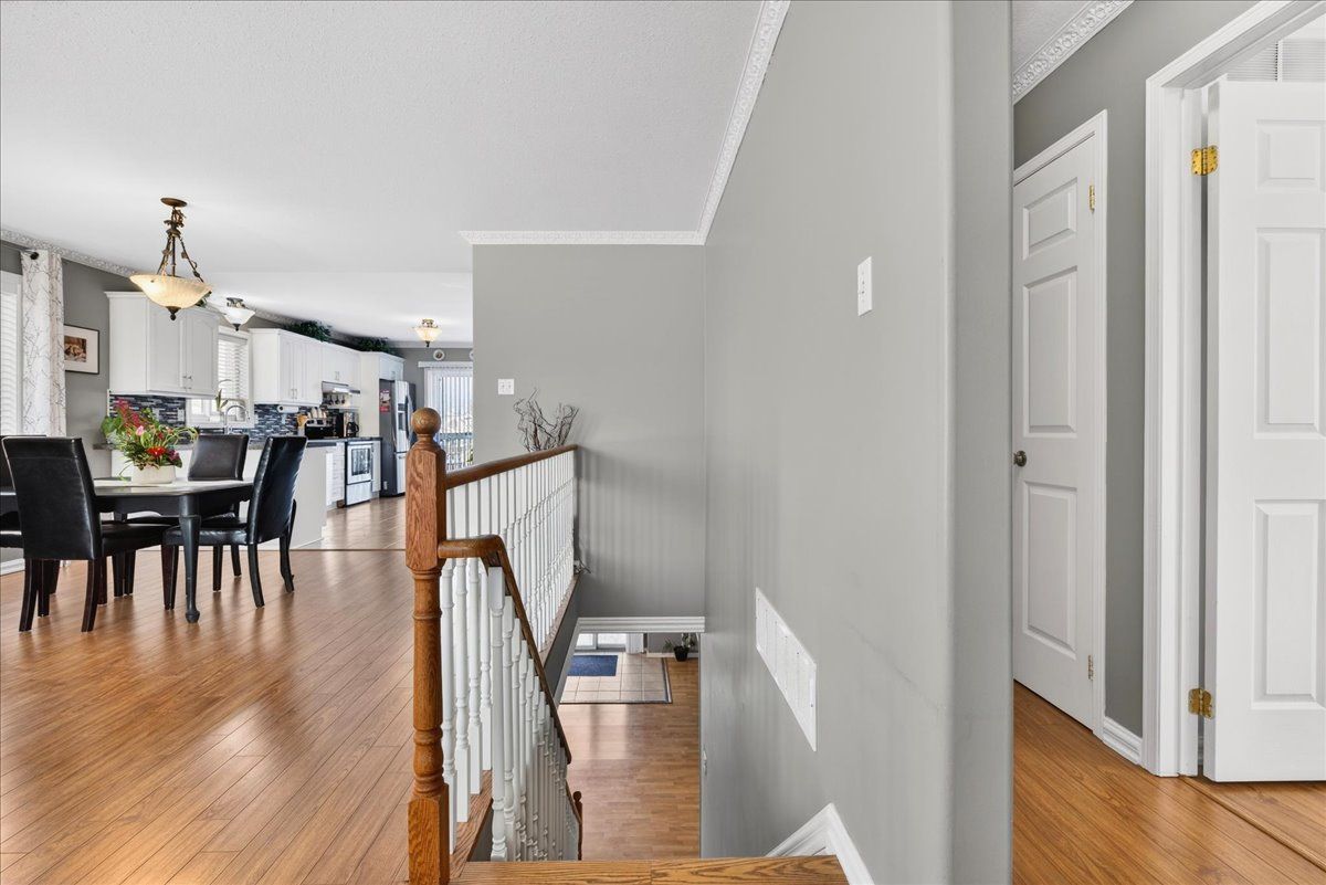 This well-appointed walk-out bungalow offers an ideal setting for families, situated in a desirable, community-oriented neighbourhood. The main level features an open-concept design that enhances natural light and creates a functional, spacious flow throughout. Both the front and rear yards are fully fenced and landscaped, offering privacy along with a 150 sq. Ft. Stone patio, perfect for outdoor entertaining. The property accommodates parking for three vehicles and includes a double car garage, with updated garage doors completed in 2023. The kitchen is designed for both style and practicality, featuring quartz countertops, stainless steel appliances, a modern backsplash, and a bright eat-in area with sliding doors leading to a 10 ft. By 20 ft. Raised deck. A separate dining space connects seamlessly to the generously sized living room, making it well-suited for hosting and everyday living. The primary bedroom provides a comfortable retreat with its own four-piece ensuite. Two additional bedrooms and a full four-piece bathroom complete the main floor layout. The fully finished walk-out lower level offers excellent versatility, with large windows bringing in ample natural light. This space includes a spacious recreation area, an additional bedroom, a three-piece bathroom with walk-in shower, and a dedicated laundry room. The home is finished with durable, low-maintenance laminate flooring throughout, with no carpet. Notable updates include roof shingles replaced in 2019 and several window upgrades completed in 2023. Conveniently located close to rvh, georgian college, local schools, major commuter routes including highways 400 and 11, as well as shopping, dining, and nearby parks, this property delivers a strong balance of comfort, functionality, and location.