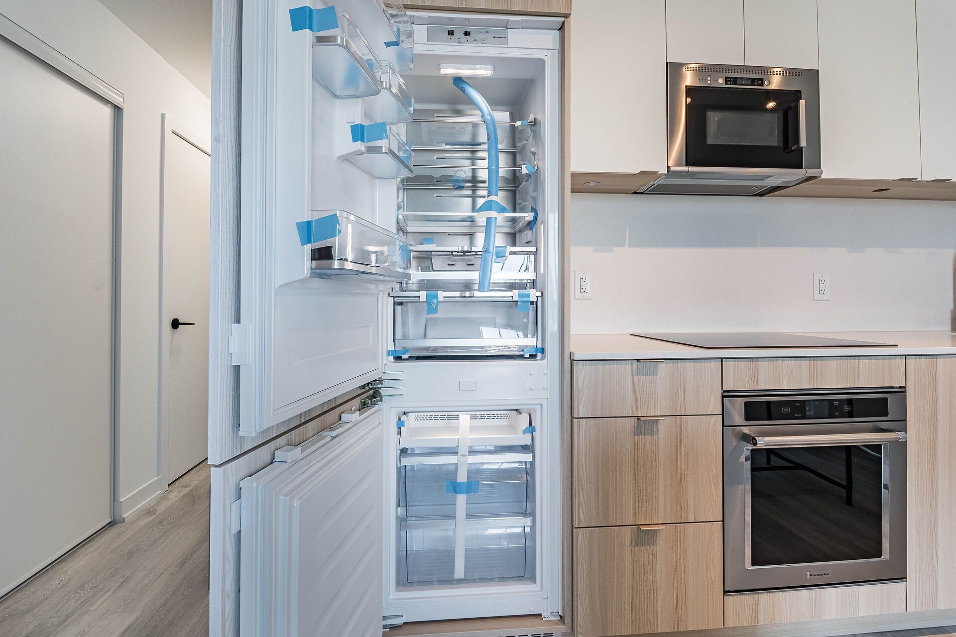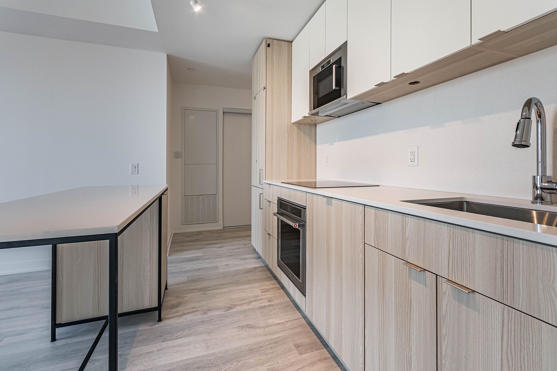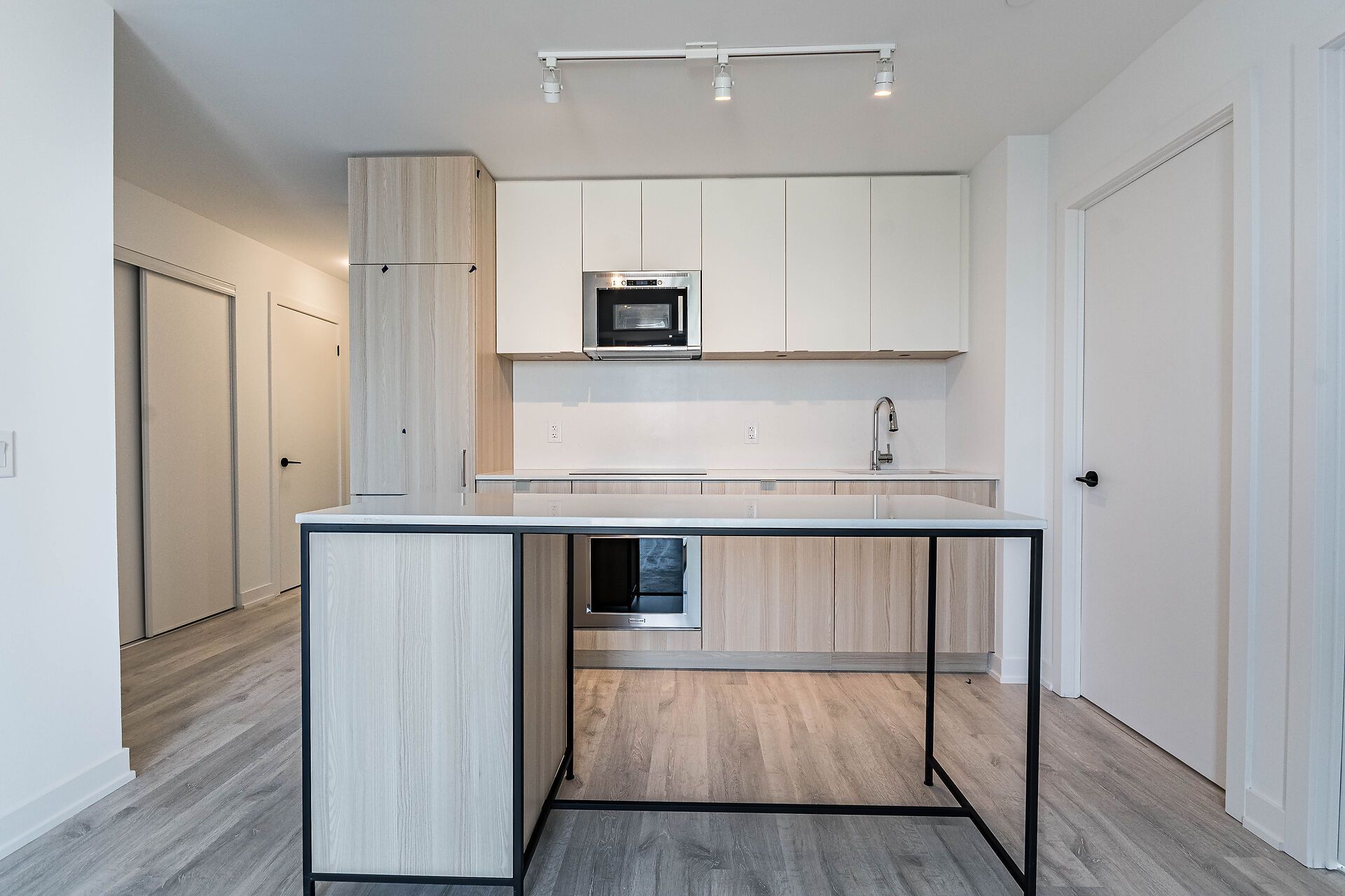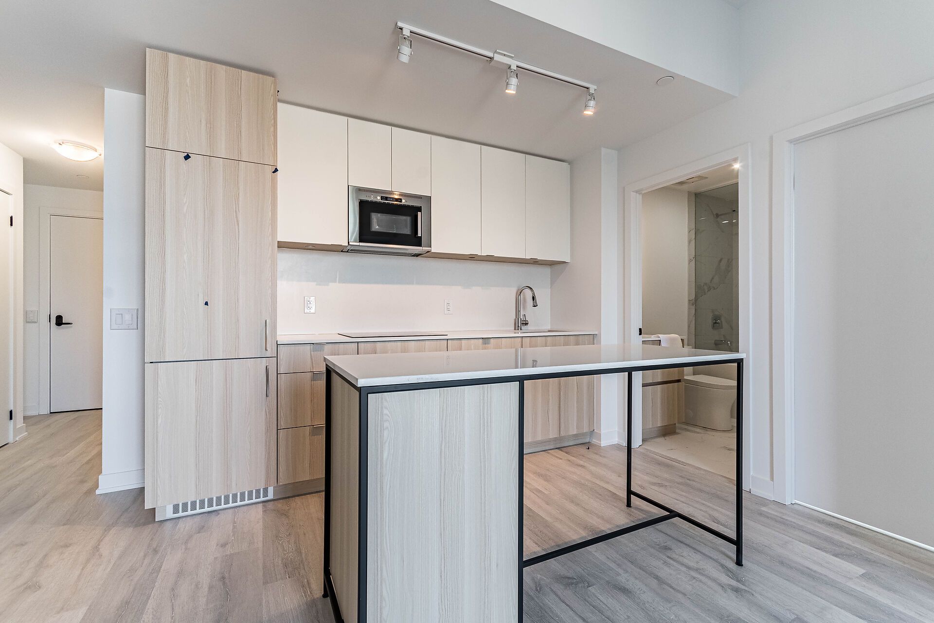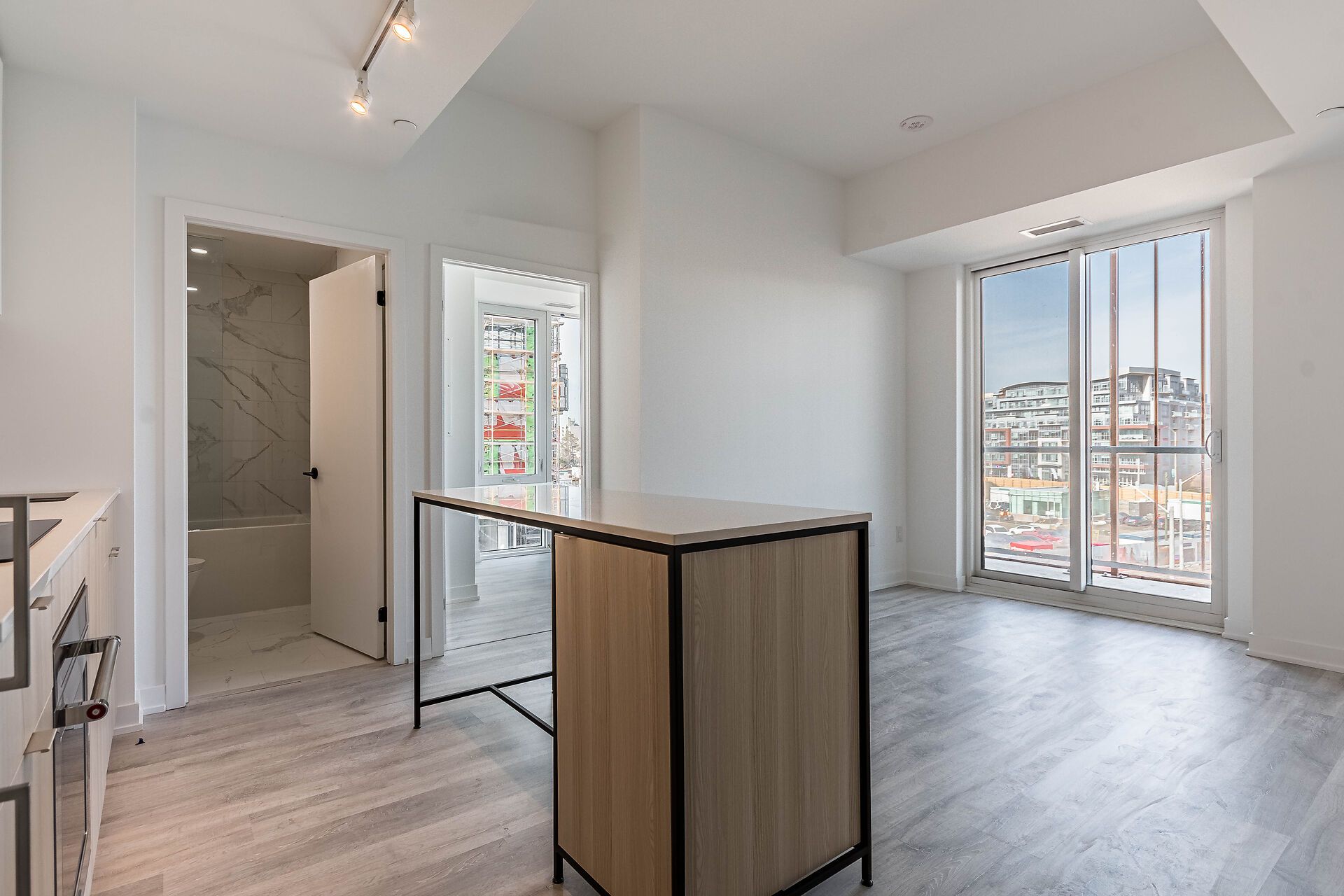 • Spacious great room with a center island and balcony access.