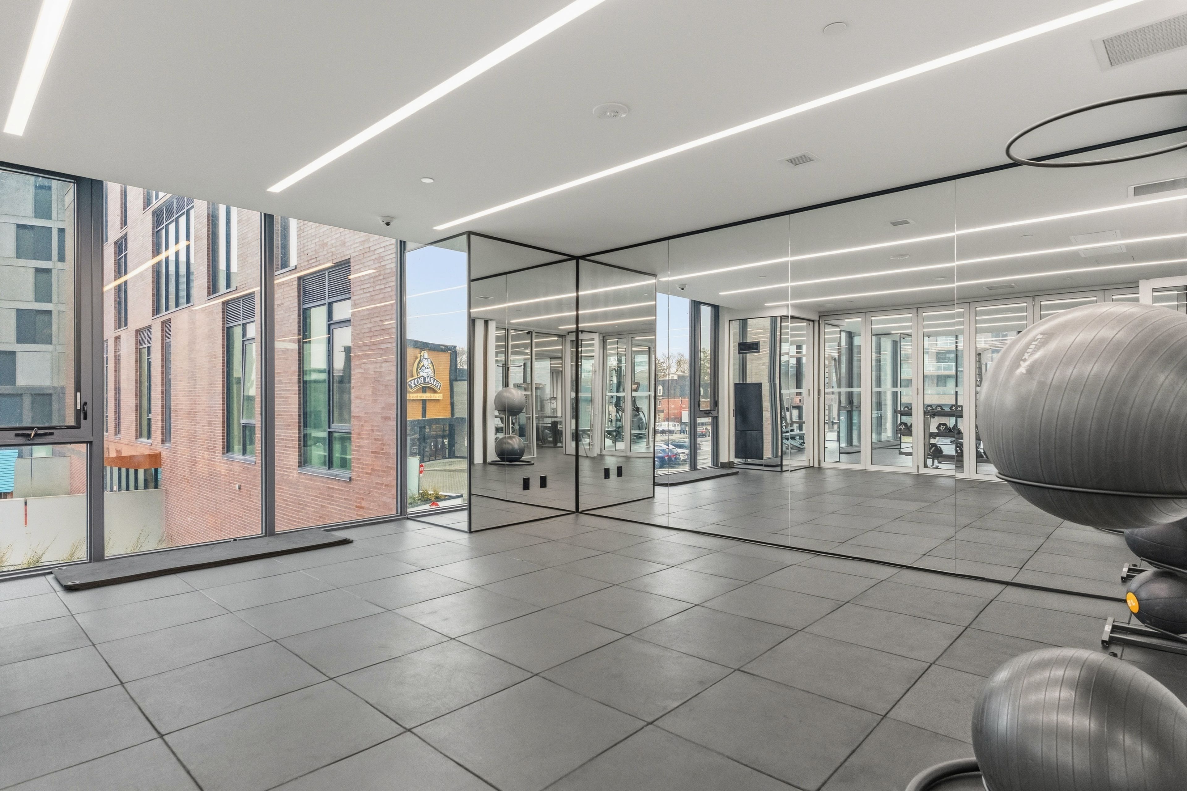 • Amenities include fitness center, party lounge, outdoor terrace, and communal spaces.