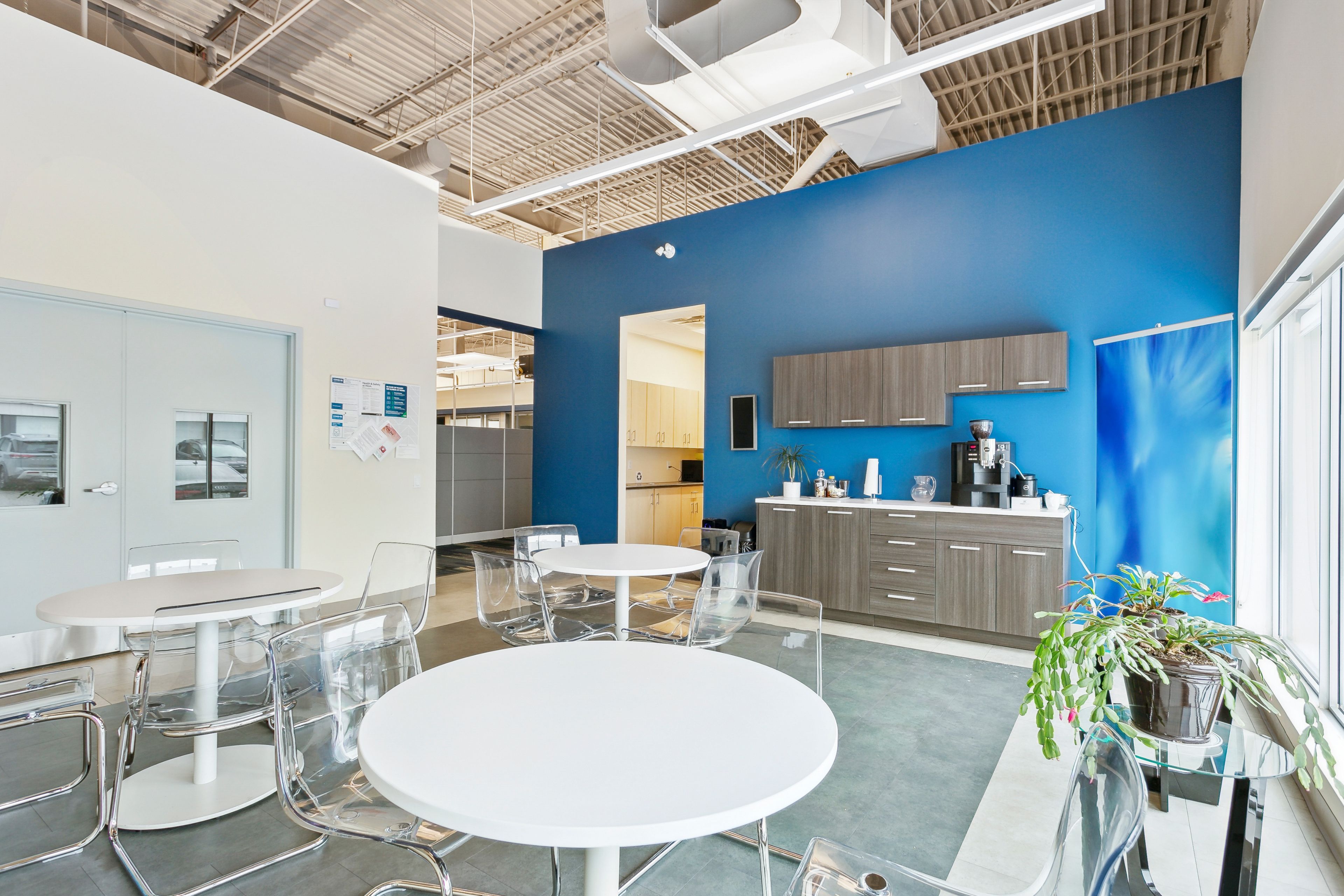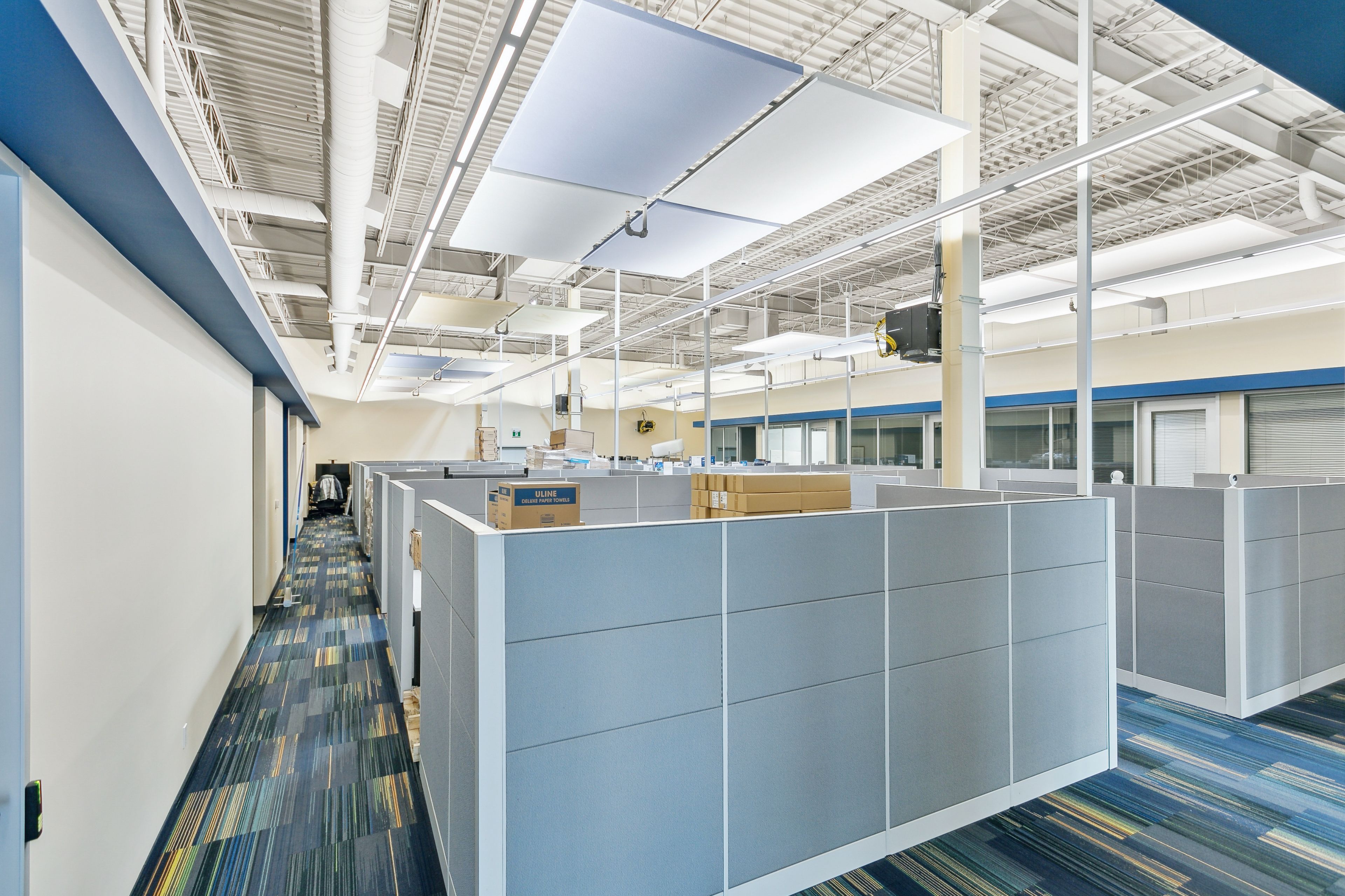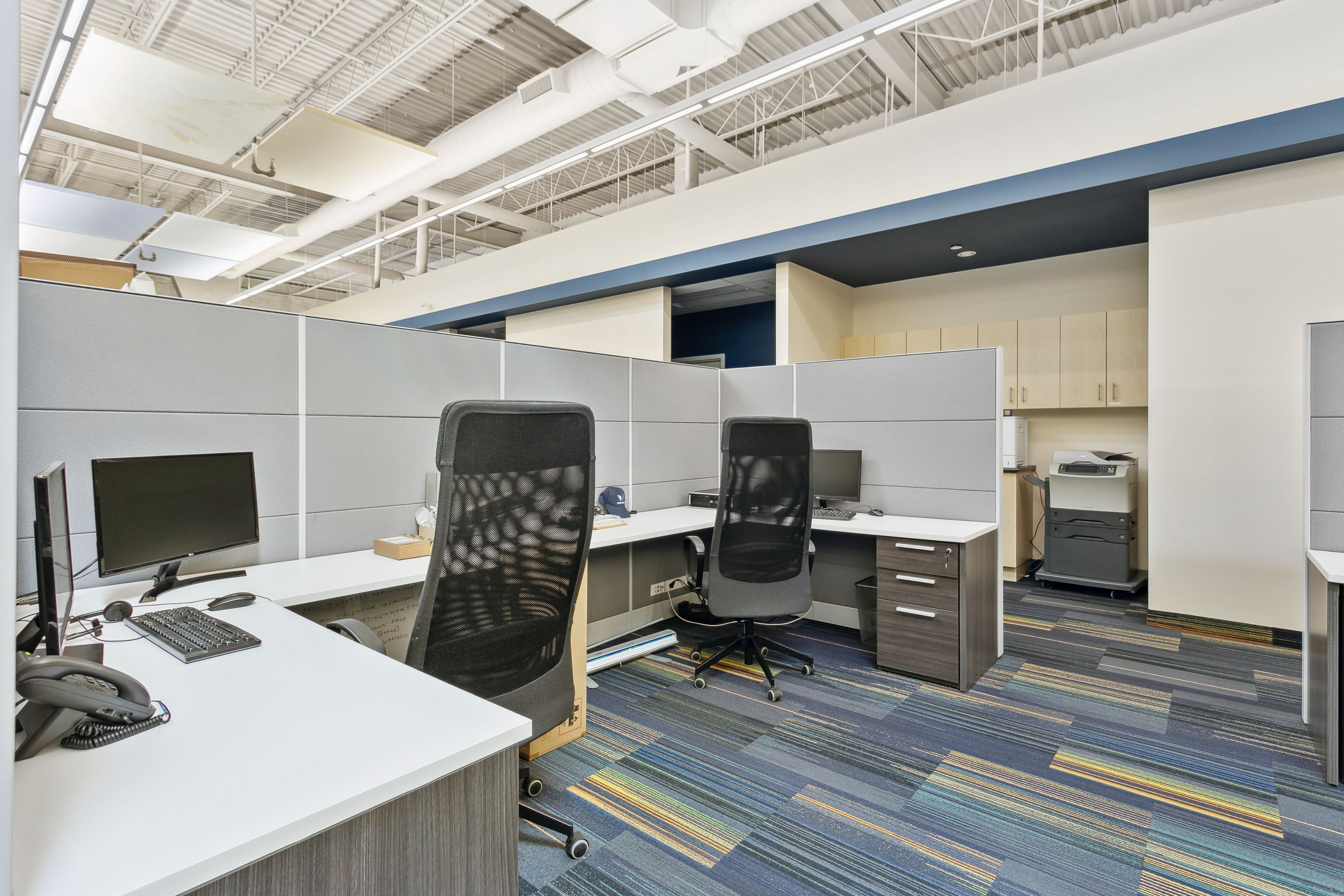 • High ceilings create an open and spacious work environment.