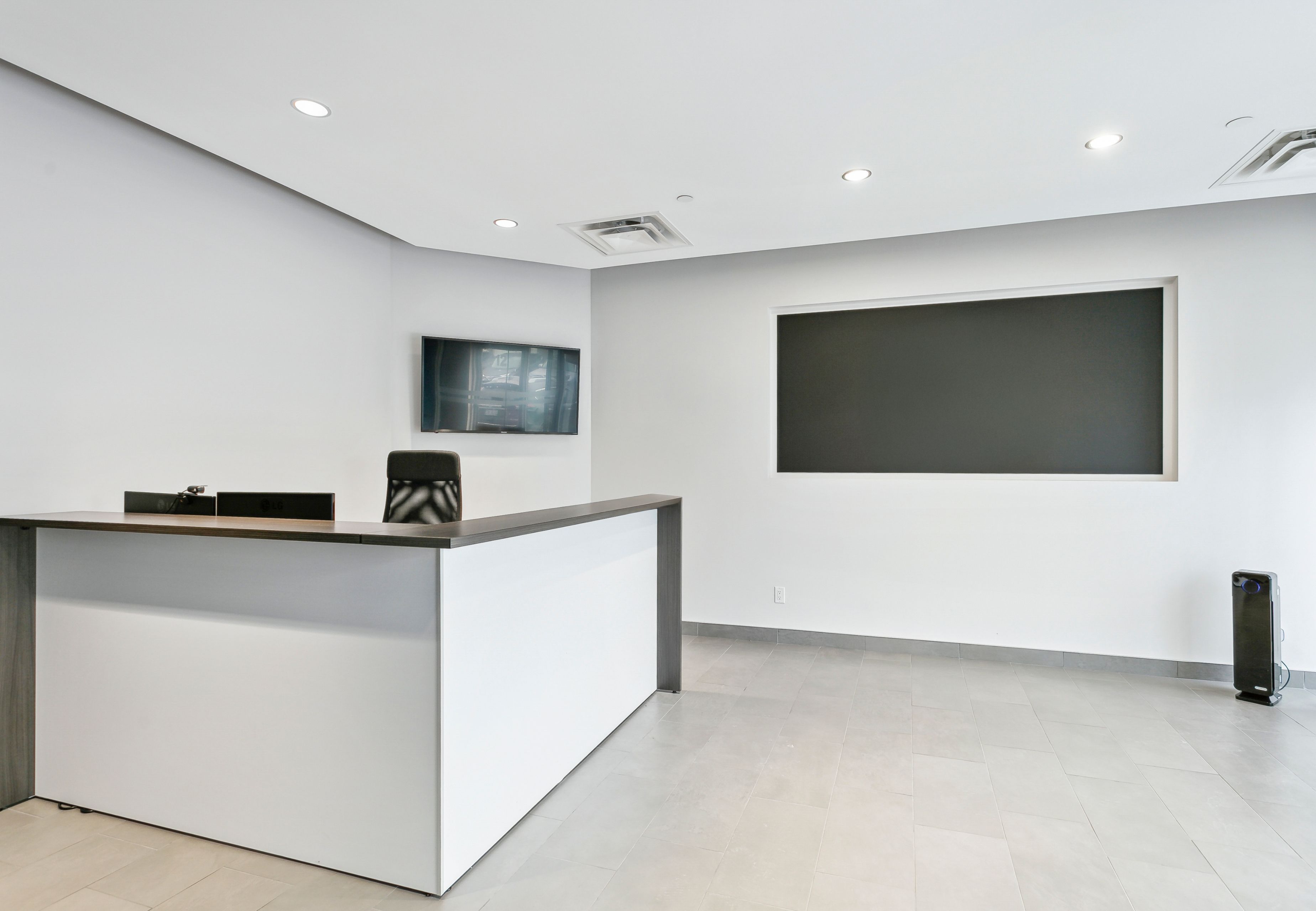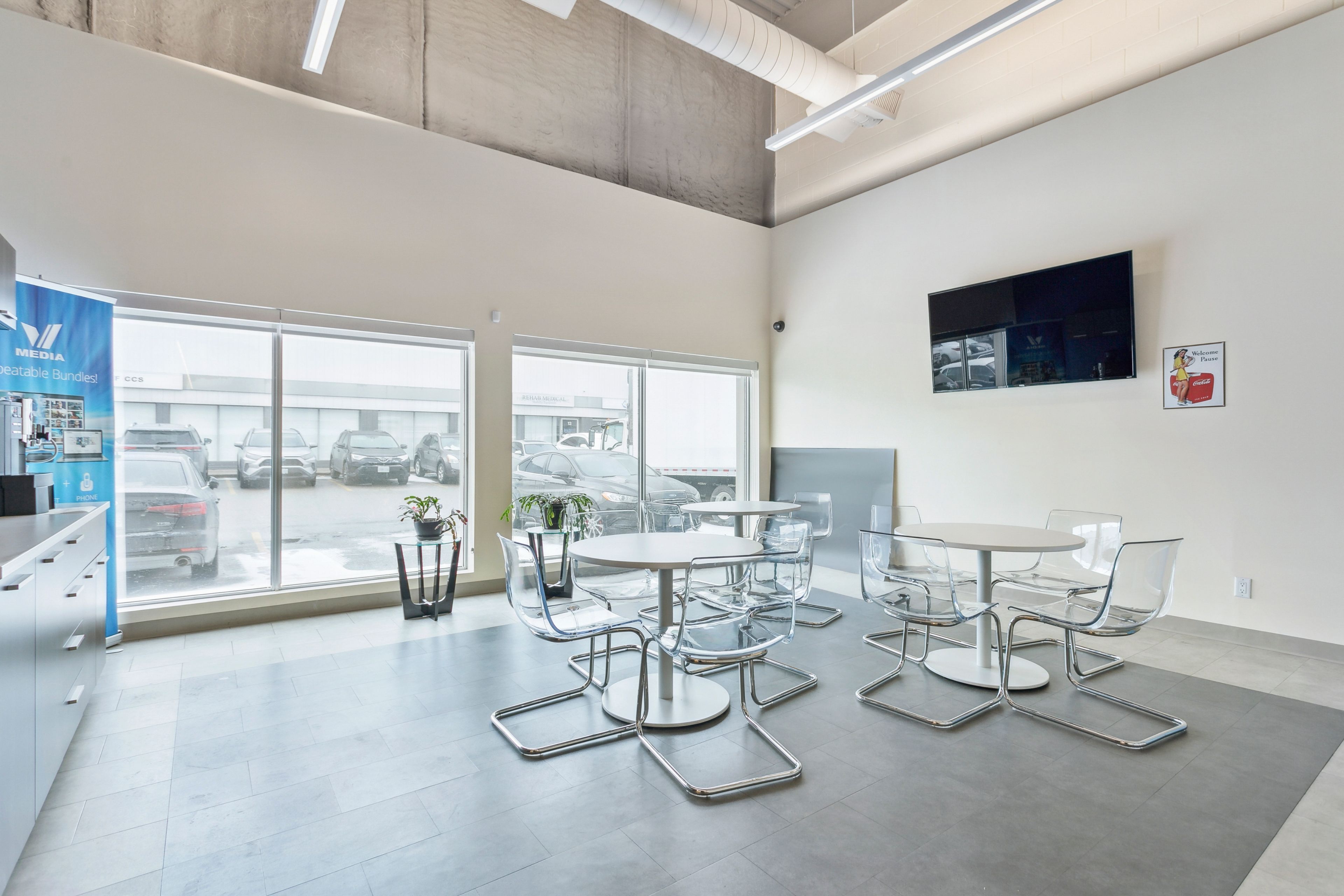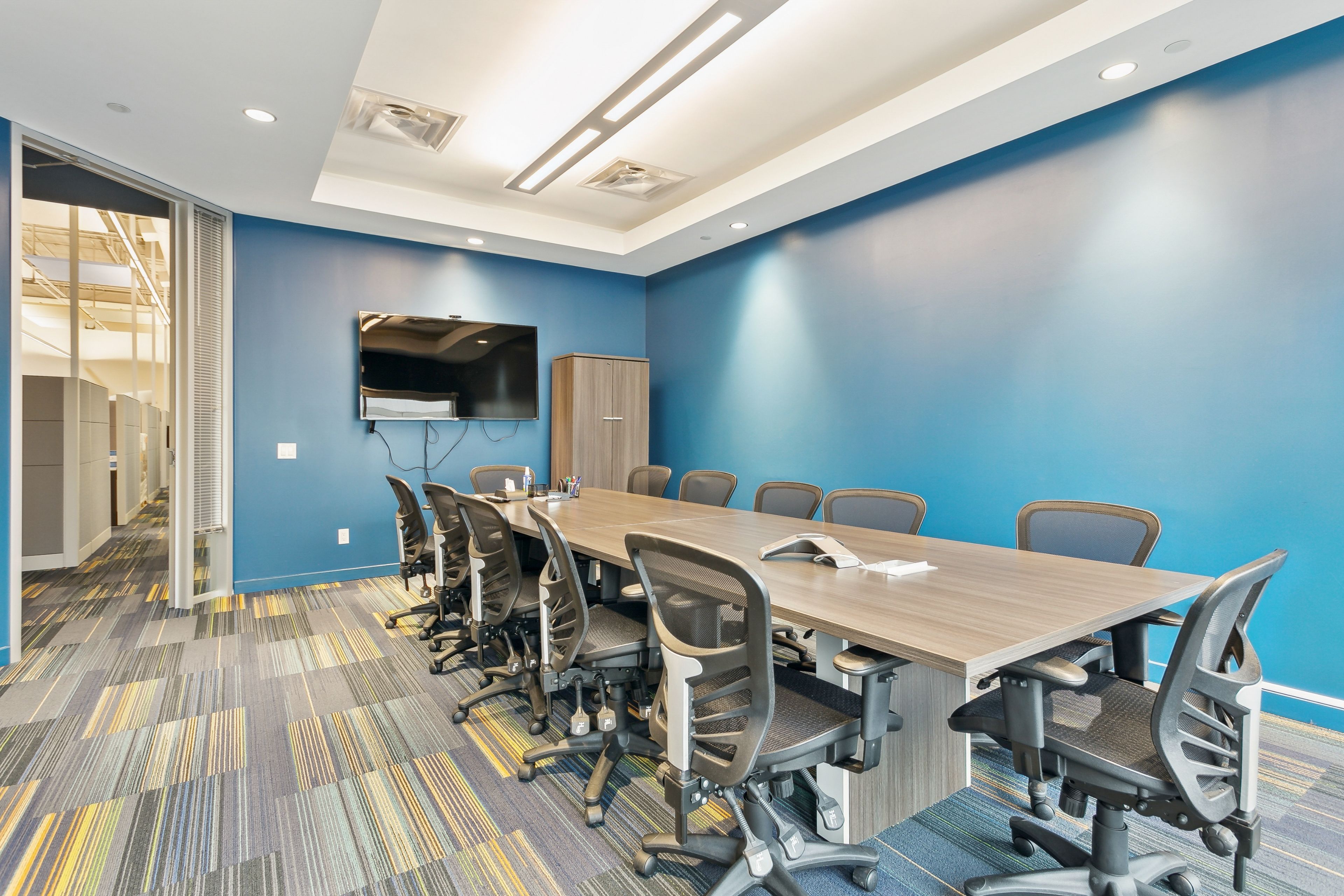 • High ceilings create an open and spacious work environment.