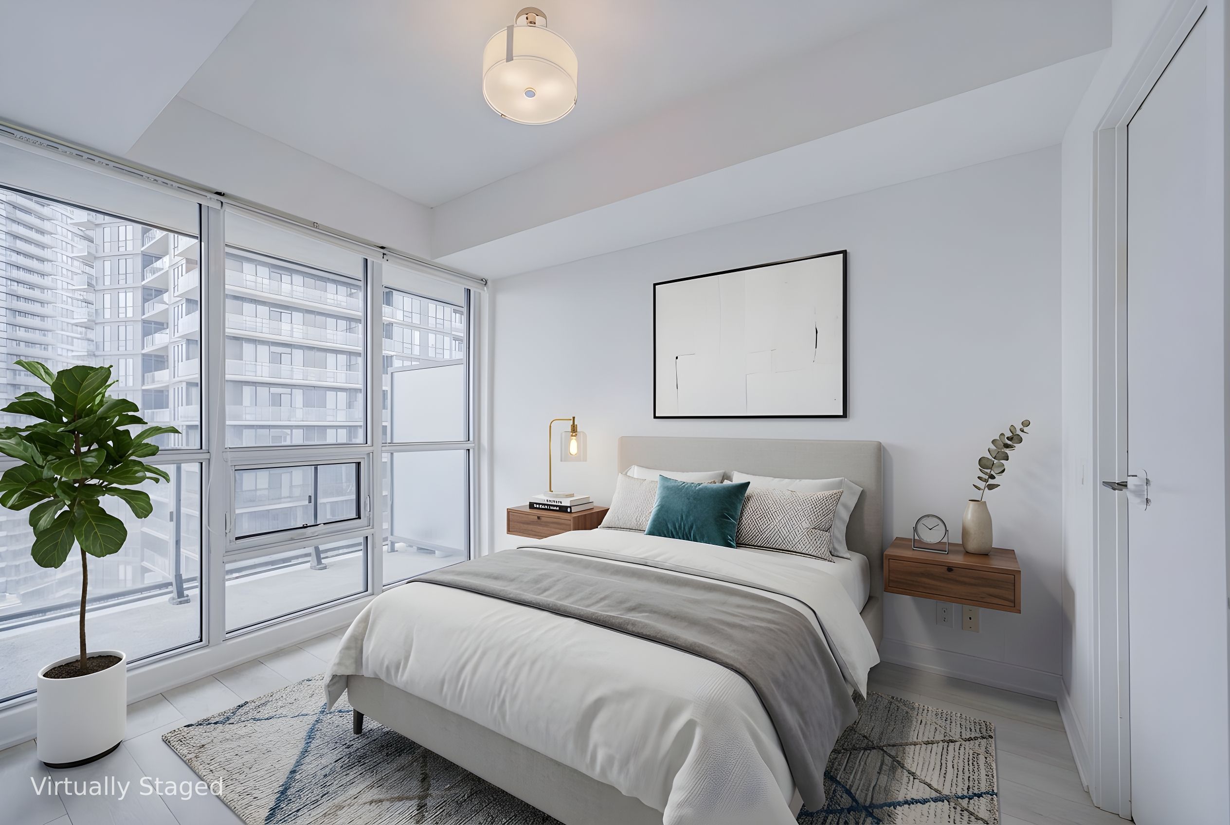 Sunny and spacious condo unit 1 bedroom +1 large den (a bedroom size), with breathtaking south-west views of the waterfront, humber bay, marina, lake and yacht club! Toronto's vibrant lakeside community! This luxurious unit features open concept and functional layout, boasts 9' ceilings, floor-to-ceiling windows, a modern kitchen with granite countertops, sunny living room facing to south and west overlook humber bay. Primary bedroom with large window and walk-in closet. Large den could be used as a 2nd bedroom. Laminate flooring throughout. (some photos are virtual staged). 1 parking and 1 locker. 24 hr concierge, direct access to world class fineness center. The street-level pavilion offers unmatched convenience with shopping right at your doorstep. 24 hours metro, shoppers, lcbo, td, scotia bank, pizza place, restaurants, starbucks, embrace nature along toronto's waterfront trail, stroll through the marina, humber bay park, yacht club, and mimico trails or dine alfresco at nearby lakeside eateries. Door steps to ttc, close to go, with easy access to downtown, airport, hwy gardiner expressway, qew.