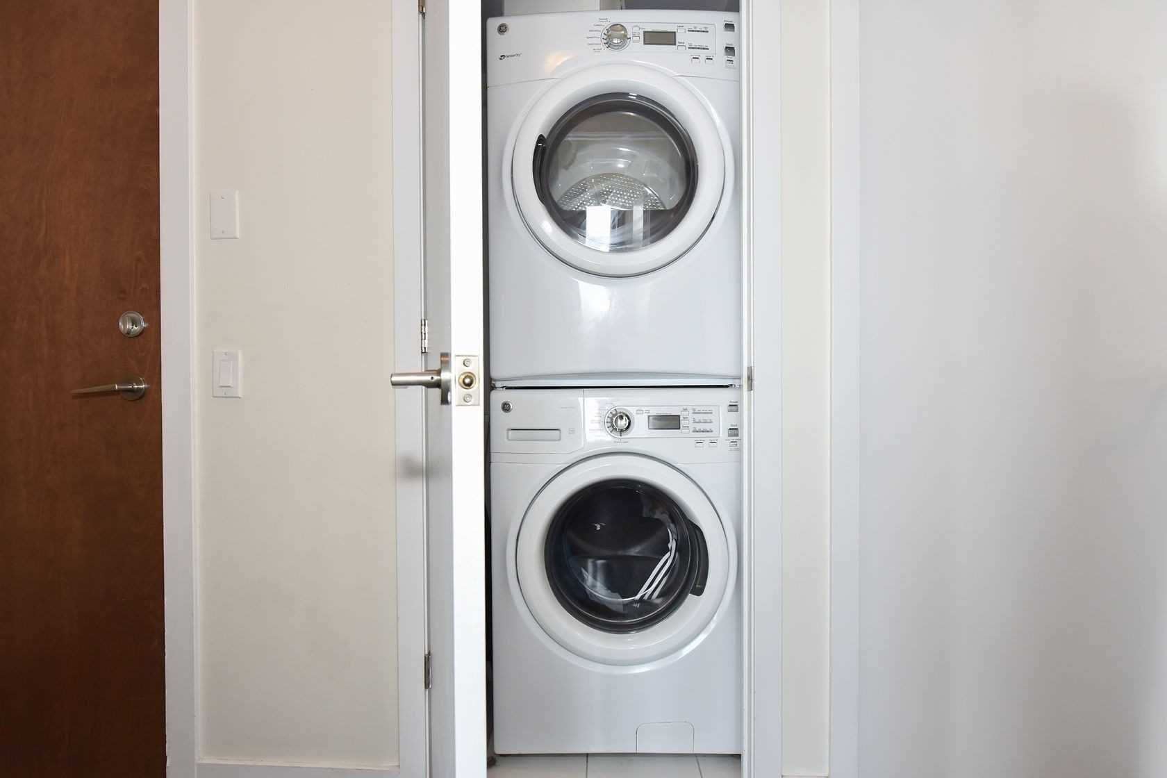 West lake 2 luxury 2 br, 2 bath corner unit, fantastic city & lake view, 9" ceiling, floor to ceiling windows, 24 hr concierge. Bank, metro, shoppers drug smart downstairs. Easy access to highway. Minutes to cne & downtown financial district. Enjoy lakeshore park, bike trail, beach & sunny side pool, amazing amenities include hot tub, theatre, steam room, party room, business centre. Stainless steel fridge, stove, dishwasher, b/i microwave, stacked washer & dryer, all eif's. One parking and one locker included! Tenant pays hydro separately.