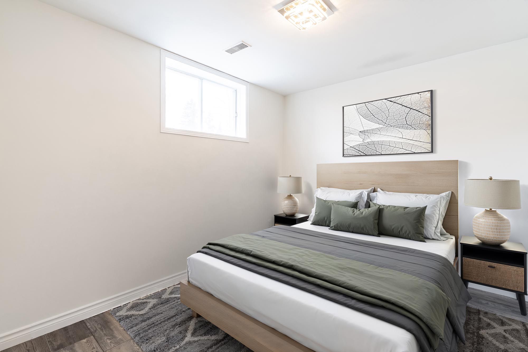 Top 5 reasons you will love this home: 1) beautifully refreshed with quality finishes throughout, this raised bungalow welcomes you with an updated eat-in kitchen that immediately sets the tone, with a spacious breakfast area made for gathering and sleek quartz countertops that bring everything together, creating a warm and functional space perfectly suited for everything from weekday breakfasts to weekend gatherings 2) two spacious bedrooms anchor the main level, offering comfortable spaces to unwind, accompanied by an updated bathroom that adds afresh, modern touch, while outside, the oversized in-town lot provides room to breathe and enjoy the outdoors, complemented by a heated and fully insulated two-car garage that is ideal for protected parking, extra storage, or the perfect workshop space 3) the lower level reveals a generous family room centred around a cozy gas fireplace and custom built-in shelving that adds both charm and practicality, while two additional well-sized bedrooms provide flexibility for family, guests, or a home office in a space that feels finished and welcoming 4) engineered hardwood flooring flows throughout the home, complemented by a sliding glass-door walkout to the side deck, while the main bathroom impresses with a glass corner shower, relaxing soaker tub, and elegant ceramic tile flooring, plus enjoy added conveniences including a gas hookup for the dryer, included washer and dryer, and 200-amp electrical service 5) ideally located close to the beach and the sparkling shores of lake simcoe, this home is perfectly positioned to enjoy the charm and character of the alcona community, with shopping, dining, and everyday amenities just moments away. 1,265 above grade sq. Ft. Plus a finished lower level. *please note some images have been virtually staged to show the potential of the home.