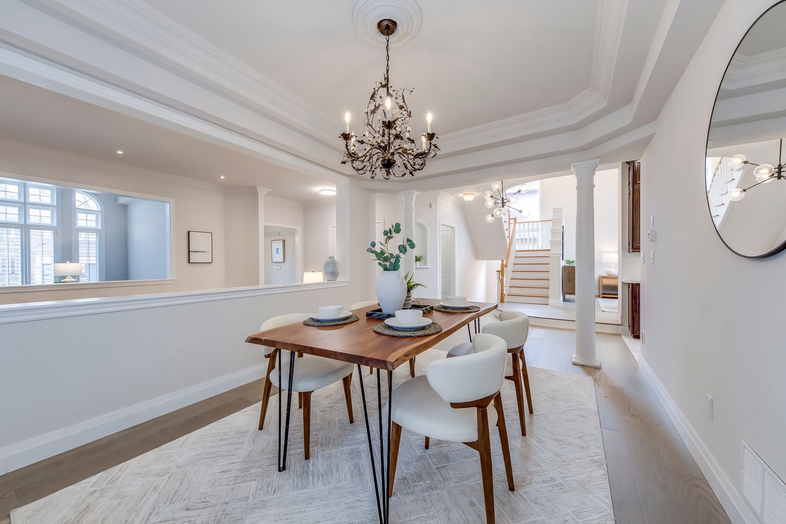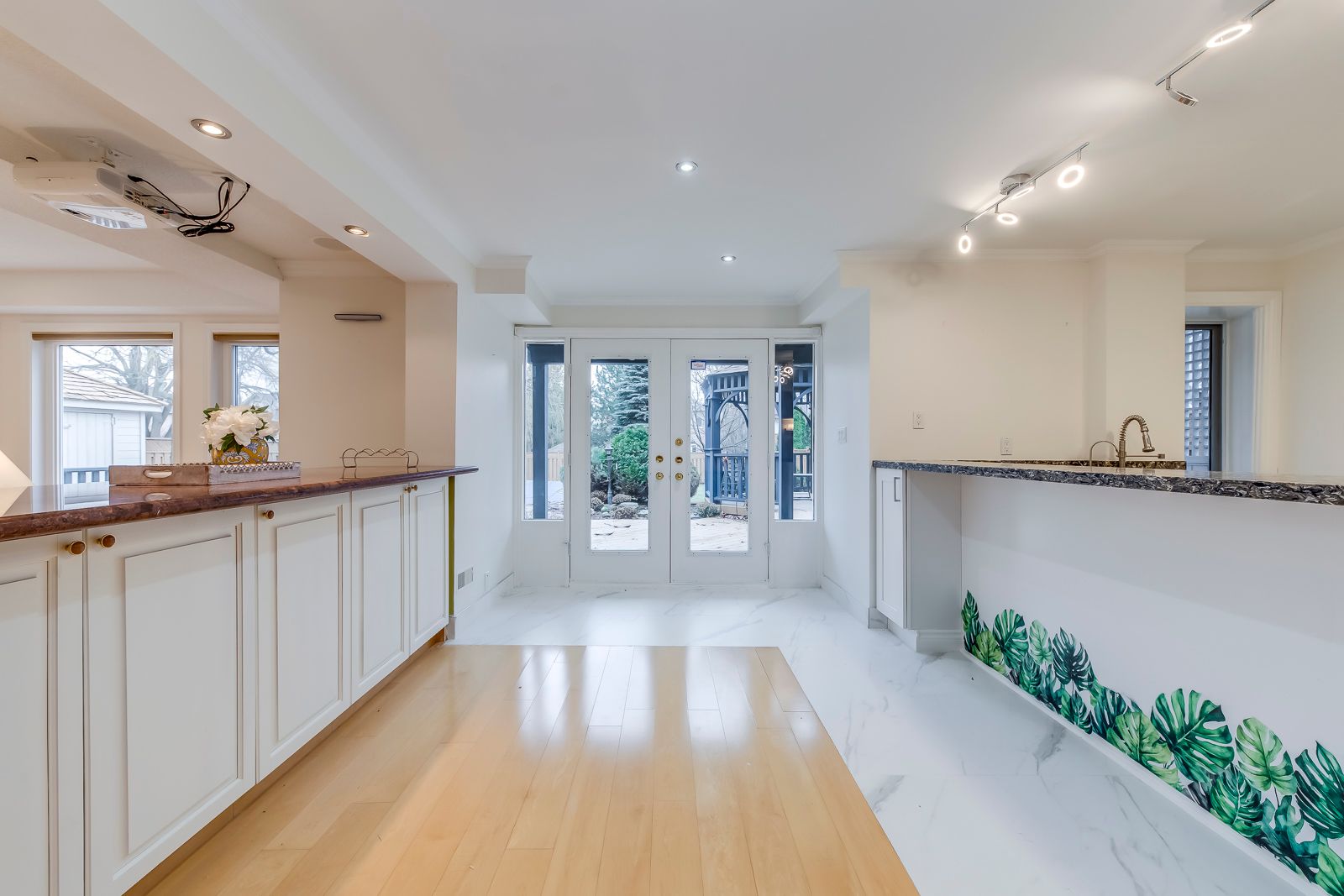 Custom-built residence in the heart of joshua creek offering 4,700 sq. Ft. Of total living space, including 3,325 sq. Ft. Above grade, set on a premium 59 x 165 ft. Lot with an in-ground pool. The thoughtfully designed and renovated main level features a gracious foyer, formal living and dining rooms, and a private office with cathedral ceiling-ideal for working from home. The family room showcases soaring ceilings, a fireplace, and oversized ceiling-height windows that fill the space with natural light. The kitchen, updated in 2020, offers a large centre island, quality cabinetry, premium appliances, and a walk-out to an expansive wood deck overlooking the pool, gazebo, and tranquil ravine setting. A main floor laundry room with garage access and a convenient powder room complete this level. The upper level features a luxurious primary suite with a spa-inspired ensuite (2020) and walk-in closet. Additional generously sized bedrooms offer ensuite or semi-ensuite access and overlook the open-to-below family room, enhancing the home's sense of space and volume. The professionally finished walk-out lower level (approx. 1,640 sq. Ft.) includes a home theatre/recreation room with built-in bar and walk-out to the yard, a separate media room with fireplace, a dedicated music room, a den, full bathroom, cold room, utility space, and ample storage-ideal for an in-law suite. A new guest bedroom was added in 2020. The spectacular backyard is a private retreat featuring a large deck, and beautifully maintained in-ground pool, backing onto mature greenery for exceptional privacy. Located within a highly sought-after school district, including top-ranked joshua creek public school and iroquois ridge high school, and just minutes to highways, shopping, parks, and amenities, this move-in-ready home offers an exceptional blend of luxury, space, and location in one of oakville's most desirable communities.
