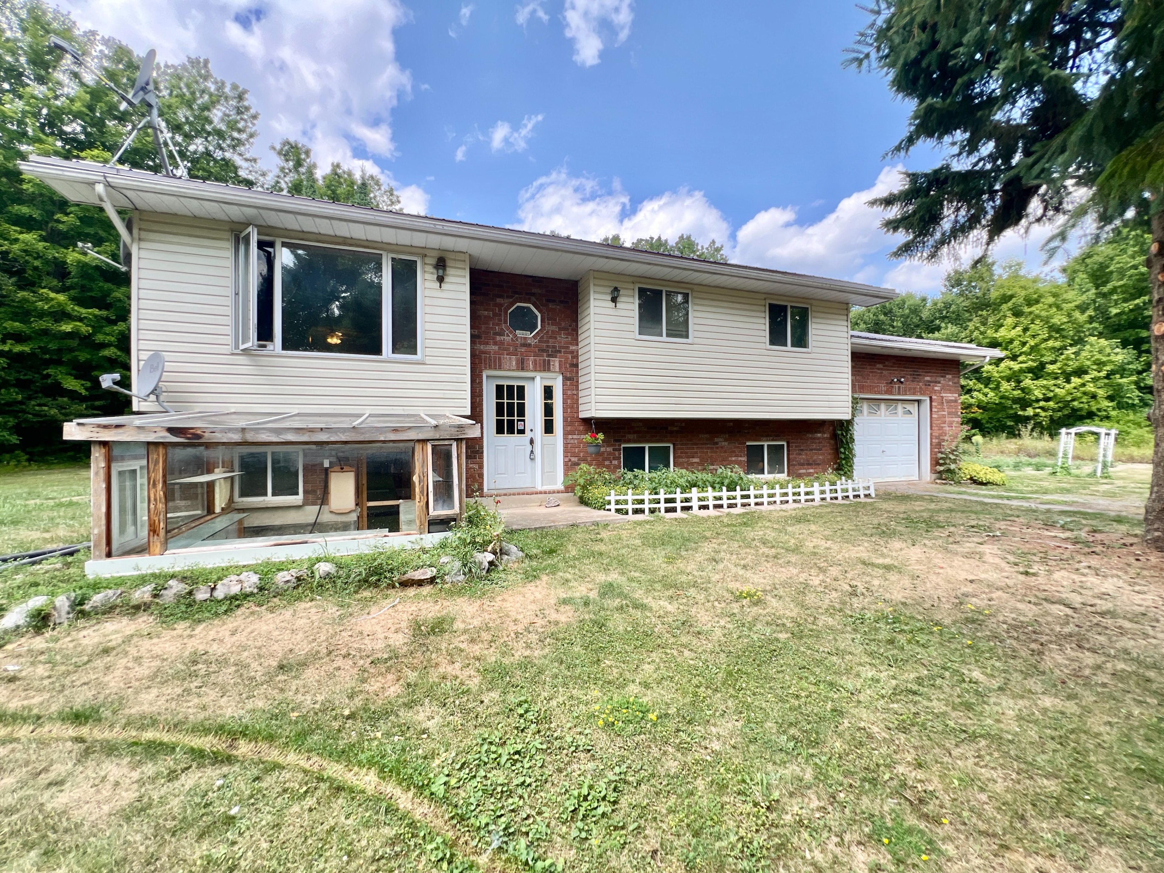 Tucked away on scenic moneymore rd, just 20 minutes north of hwy 401 between belleville and napanee, this rural retreat is an ideal setting for hobby farmers, nature enthusiasts, or anyone seeking a live-off-the-land lifestyle with easy access to town. With over 1,000 feet of road frontage, there is exciting potential for future severance (buyer to verify). The land is rich with opportunity, featuring a mix of ironwood, pine, and sugar maples, crisscrossed with trails and teeming with wildlife. A modest sugar shack sits tucked among the trees, where the current owner tapped approximately 50maples-imagine producing your own syrup each spring. Whether you are looking to hunt, hike, harvest, or simply unplug, this property delivers a true four-season rural experience. A 30'x 50' detached outbuilding with hydro provides ample space for a workshop, equipment storage, or future barn conversion, while multiple additional sheds offer flexibility for tools, firewood, or small livestock-well suited for expanding your hobby farm vision. The raised bungalow features 3 bedrooms and 2 full baths, with a spacious eat-in kitchen ideal for family meals or entertaining. Step outside onto the covered back deck and take in the peaceful country views. Downstairs, the partially finished lower level offers a separate entrance walk-up to the attached garage-ideal for an in-law suite or a practical mudroom after a day outdoors. The wood/oil forced air system supports a more self-reliant lifestyle-harvest your own firewood and reduce heating costs, with oil backup when needed. Propane conversion is also an option. Located less than 2 km from a well-connected trail network, this property is a dream for snowmobilers and atv enthusiasts. Recent 2024 updates include a new metal roof, water softener, and pressure tank. Bonus: bell fibe internet!