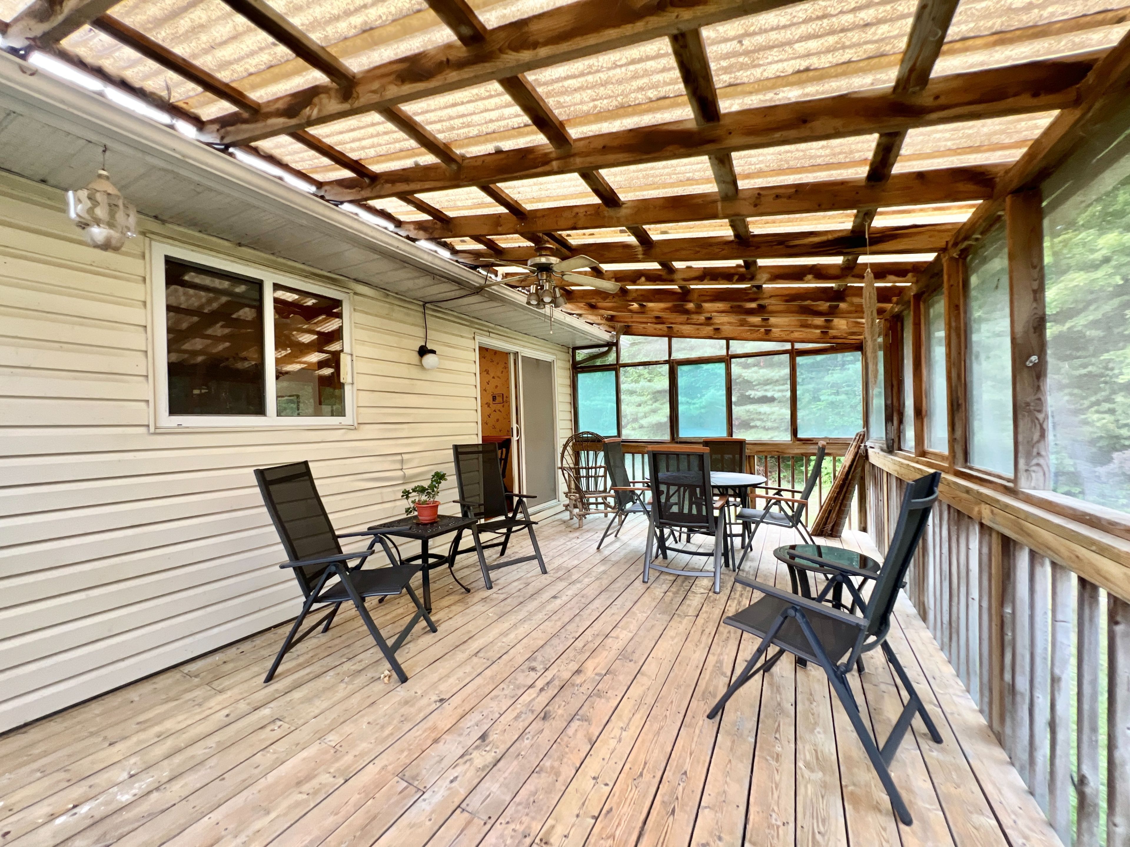 • Spacious raised bungalow with eat-in kitchen and covered back deck.