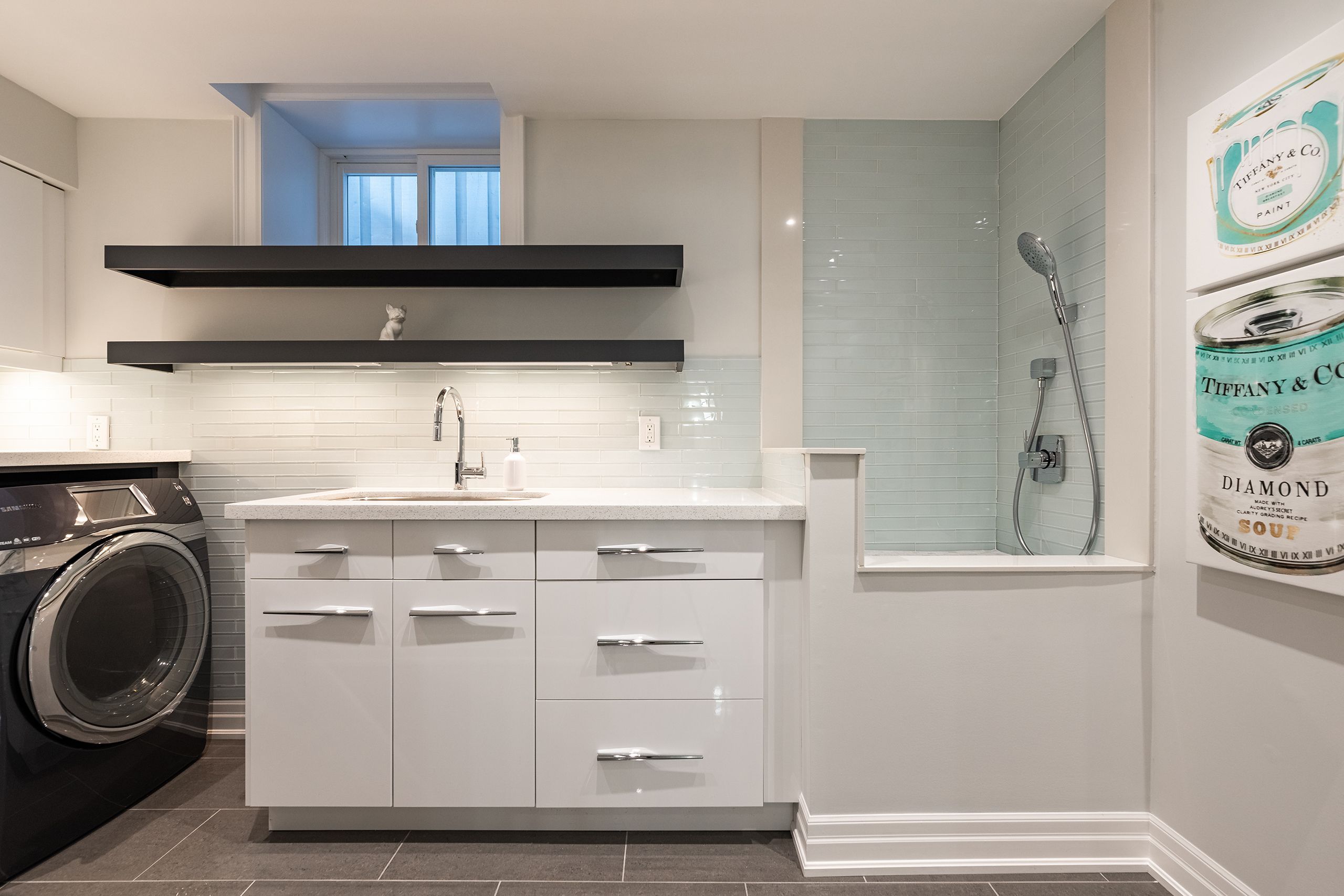 • Finished basement includes home gym, crafts room, and extra bedroom.