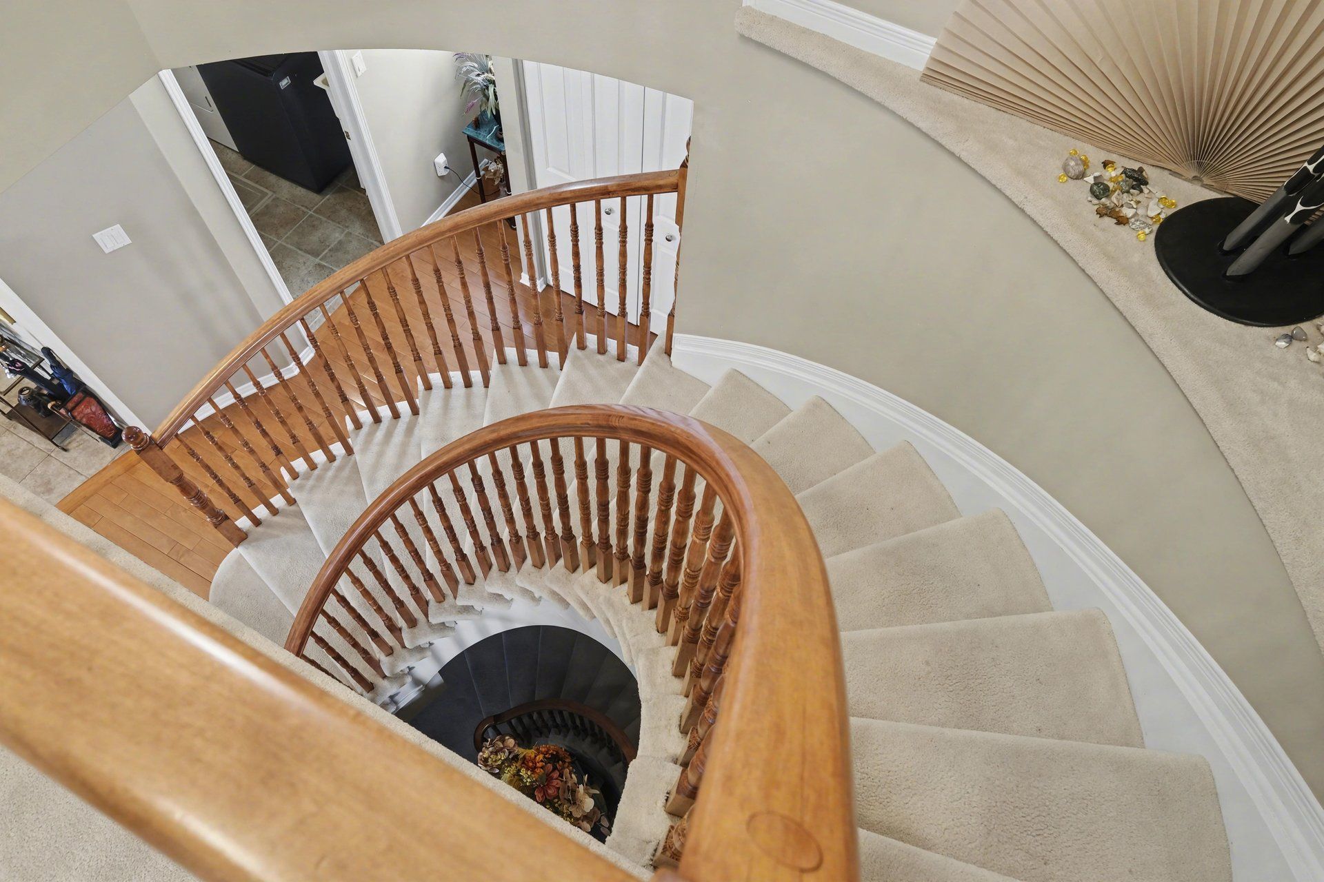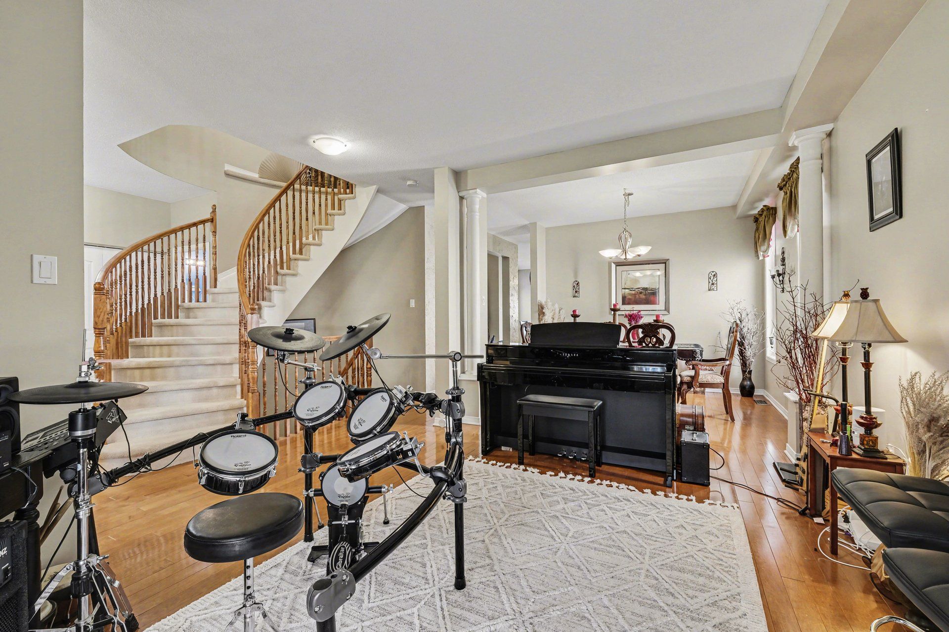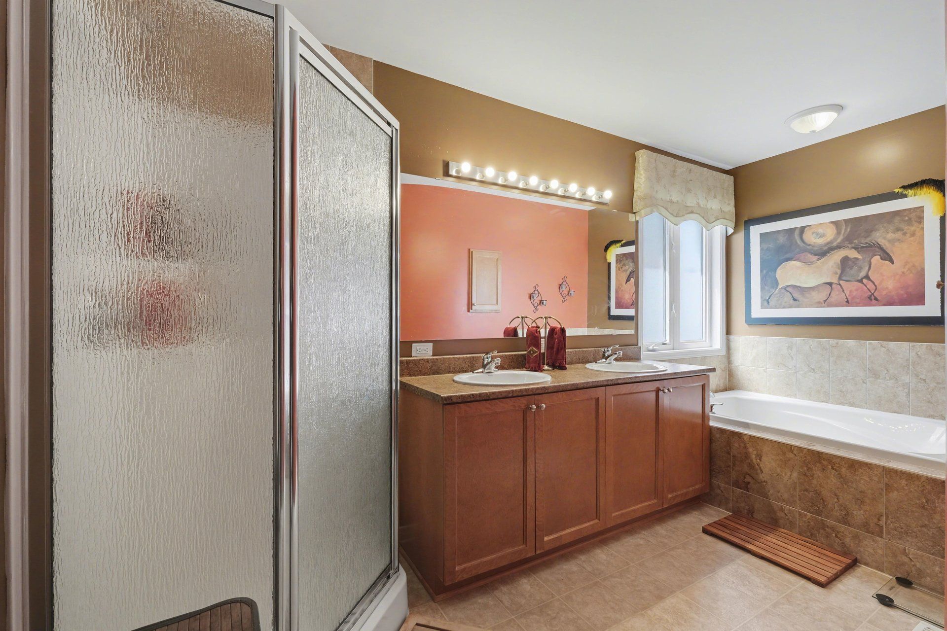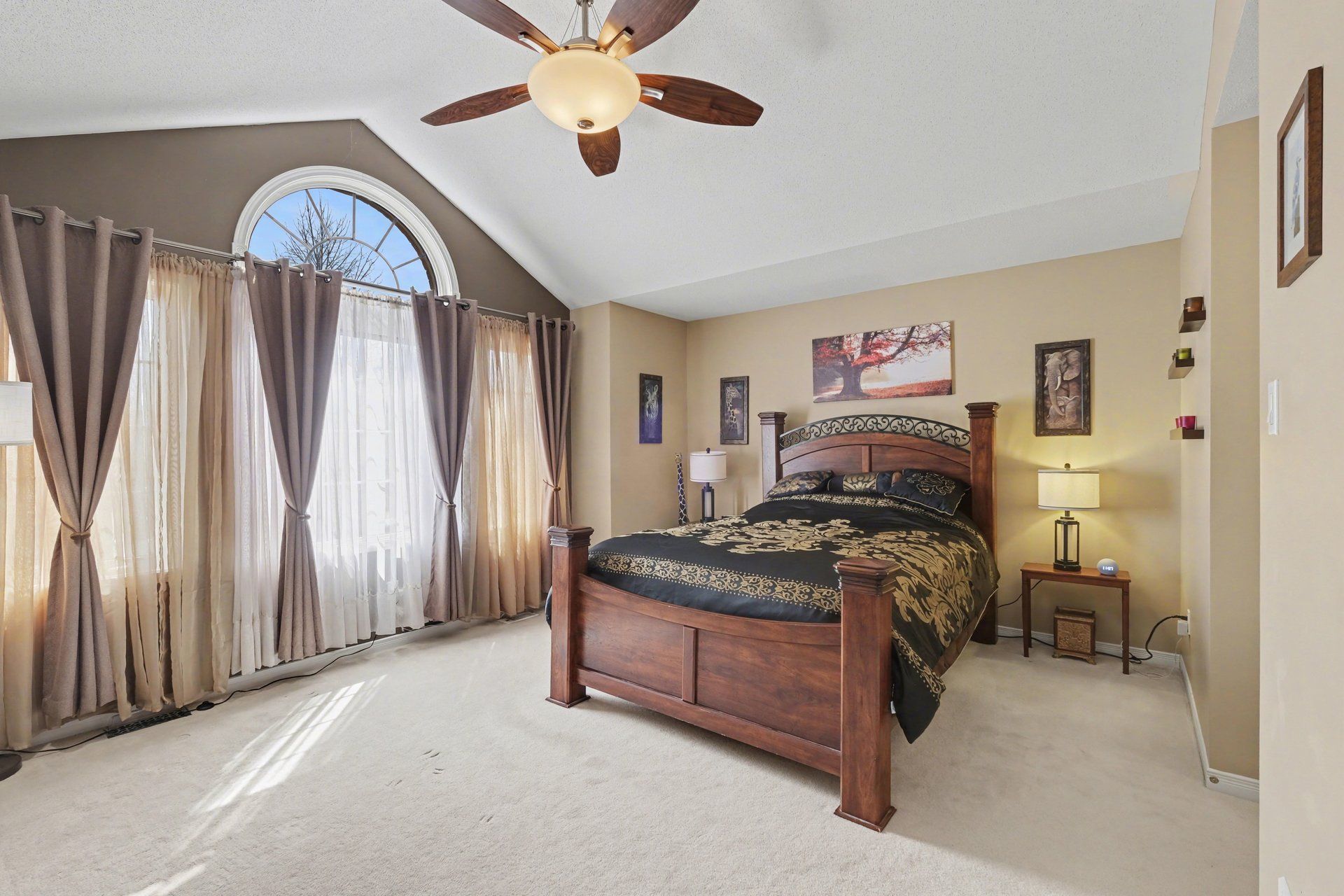 Beautiful detached 4 bedroom, 3. 5 bathroom, 2 car garage home with over 2600 sqft of living space located on a quiet crescent in a good neighbourhood. A full brick front facade and covered front porch welcome you to this lovely home. Many windows fill this home with natural light throughout the day. The main floor offers a tiled foyer, a two-piece powder room, a living and dining room with hardwood floors and decorative pillars, a spacious, sunken family room with a gas fireplace and a good-sized kitchen featuring a vaulted ceiling, plenty of wood cabinets, an island, and an eating area. An upgraded circular staircase runs from the basement to the top floor creating a beautiful visual of the open space. Spacious remarkable master bedroom features cathedral ceilings, large windows, a walk-in closet plus an extra closet and a five-piece en-suite. 3 other good sized bedrooms and an extra bathroom complete the 2nd level. The lower level adds more living space with a recreation room, bedroom, 3 pieces bathroom, workshop and storage area. Fenced in backyard with a decorative fence, patio and shed. Situated close to many amenities like transit, schools, parks, shopping, restaurants and much more...