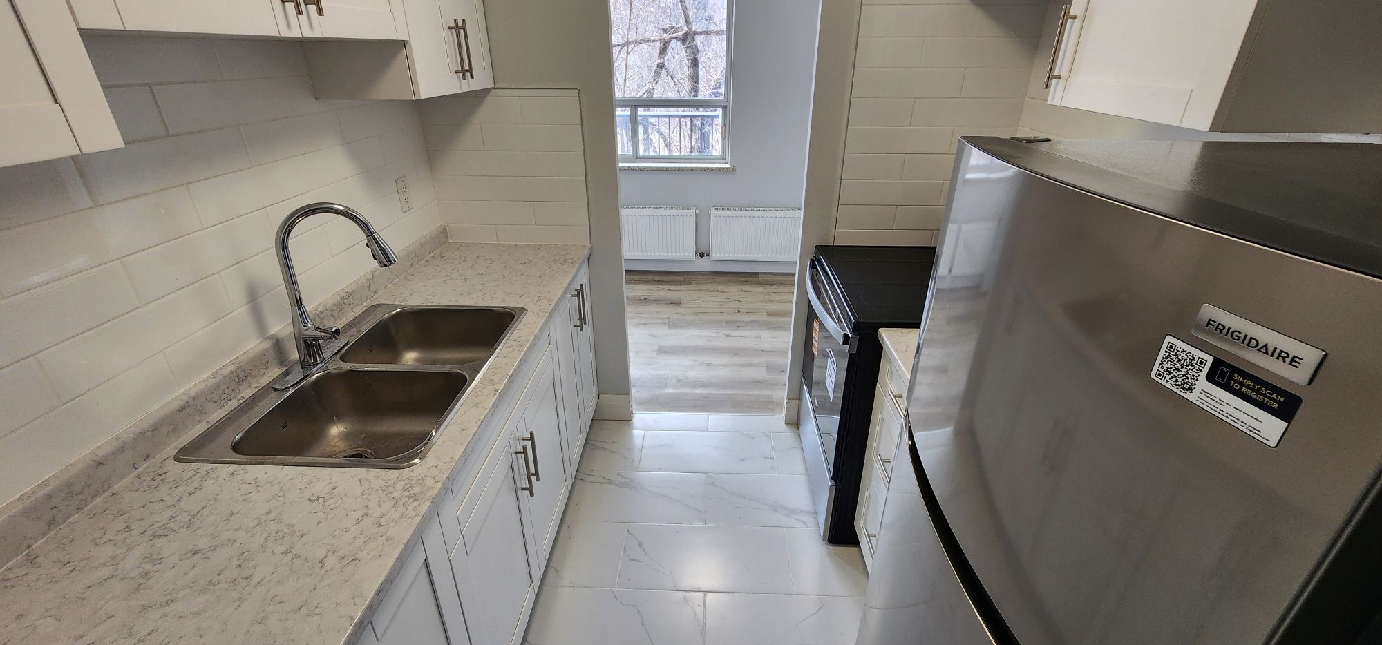 Bright and spacious one bedroom unit in a highly convenient lawrence and westonlocation in toronto. This well-laid-out suite features a large living area with separate dining space,good-size bedrooms, and parquet and ceramic flooring throughout. The modern kitchen offers quartz countertops, a double sink, and excellent storage. Upgraded washroom. The unit is filled with natural light and offers a comfortable, open feel, perfect for everyday living. Parking space and a locker available. Steps to ttc, minutes to hwy 401, and 400 close to humber riverhospital, shopping, parks, and everyday amenities. Ideal for professionals or families seeking space,convenience, and value.
