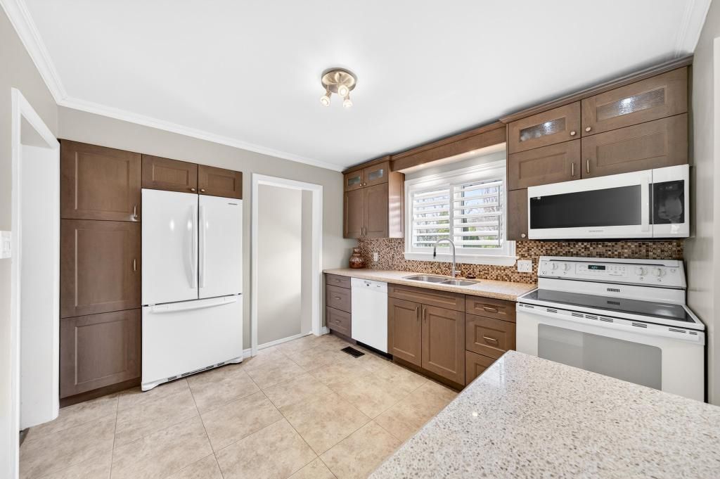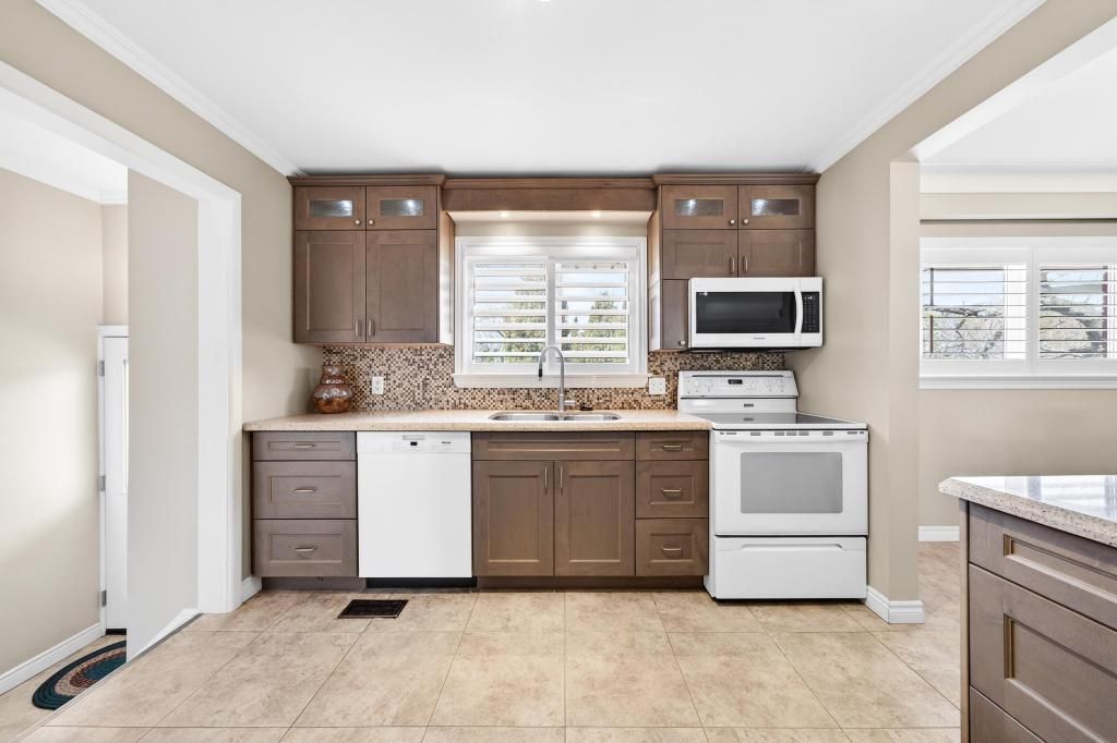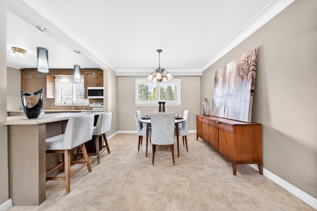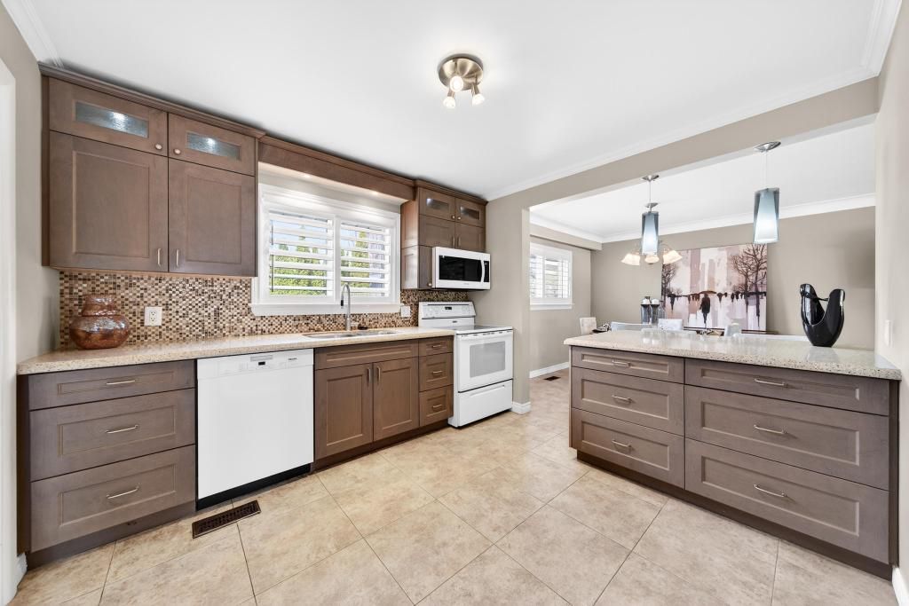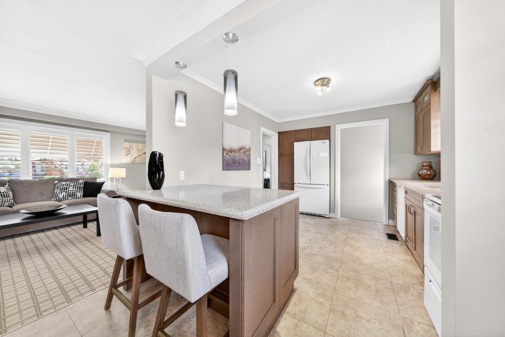 • Updated custom kitchen with quartz countertops and separate dining area.