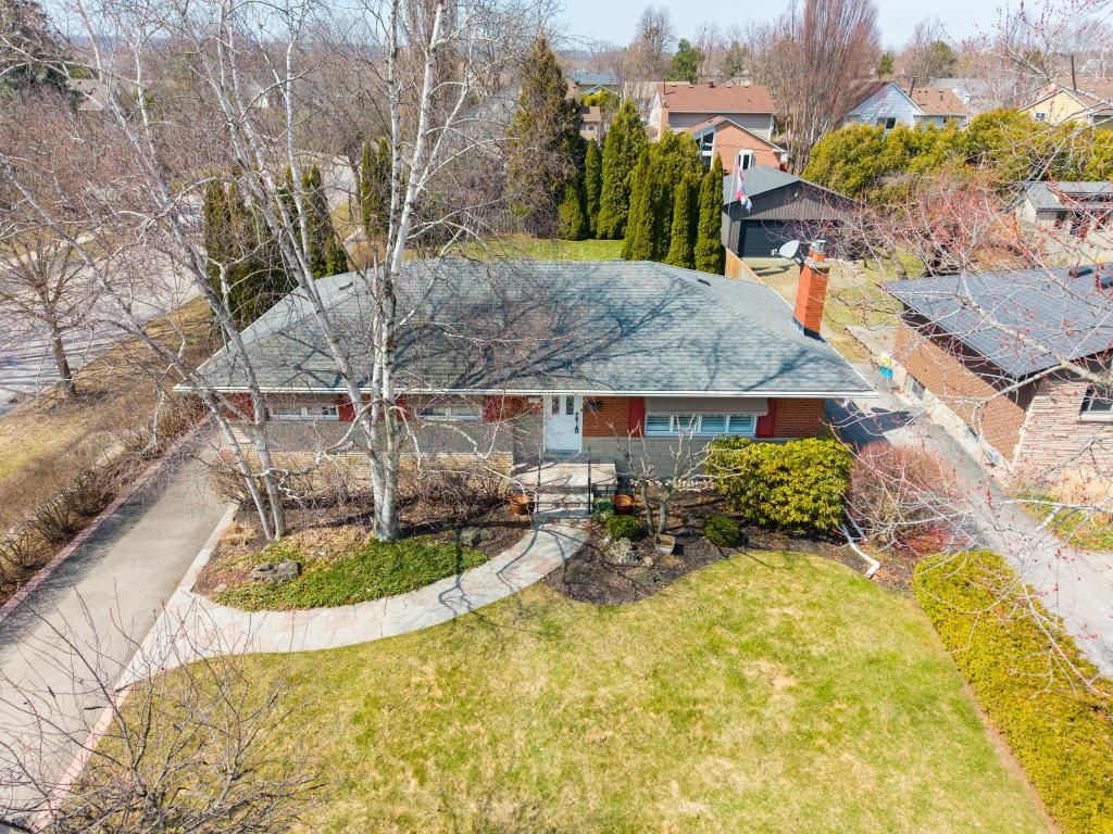 Solid, all-brick bungalow with a mid century modern vibe in the heart of downtown burlington, offering timeless charm with thoughtful updates throughout. This well-maintained home features 3+1 bedrooms and 2 full bathrooms, ideal for families or those seeking flexible living space. The spacious living room has character and charm with a floor-to-ceiling stone fireplace and large updated windows. The renovated custom kitchen is a standout, complete with quartz countertops and a separate dining area. A second living space is found in the lower level along with a 4th bedroom, 3 pc bath, and a huge laundry/storage/utility area to make your own. Major updates provide peace of mind, including a newer roof, washer and dryer, eavestroughs, gutter guards, irrigation system and a sump pump with weeping tile. This private and spacious corner lot is 63. 64 x 144 deep, a unique gem offering tons of potential. Steps to tom thompson french immersion public school and short walk to bchs and the burlington go station - perfect for commuters and families alike. Enjoy a highly walkable lifestyle on this very quiet street with easy access to downtown shopping, community events, parks, restaurants, waterfront, shops and more. A perfect blend of character, quality, and modern convenience in a prime location.