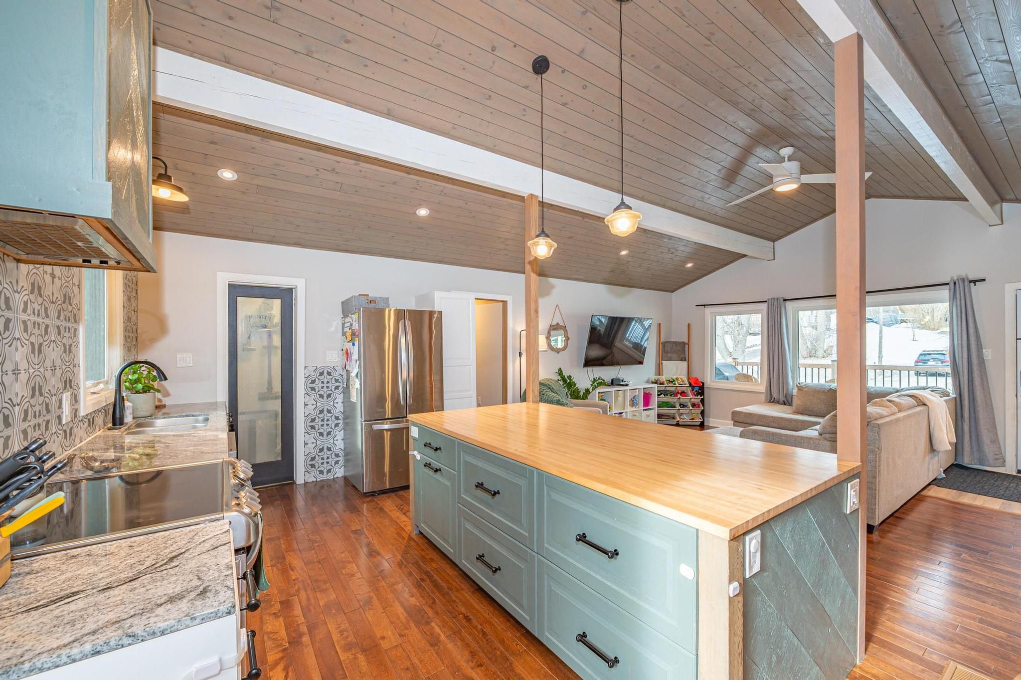 • Updated four-season home in a friendly waterfront community near Pigeon Lake.