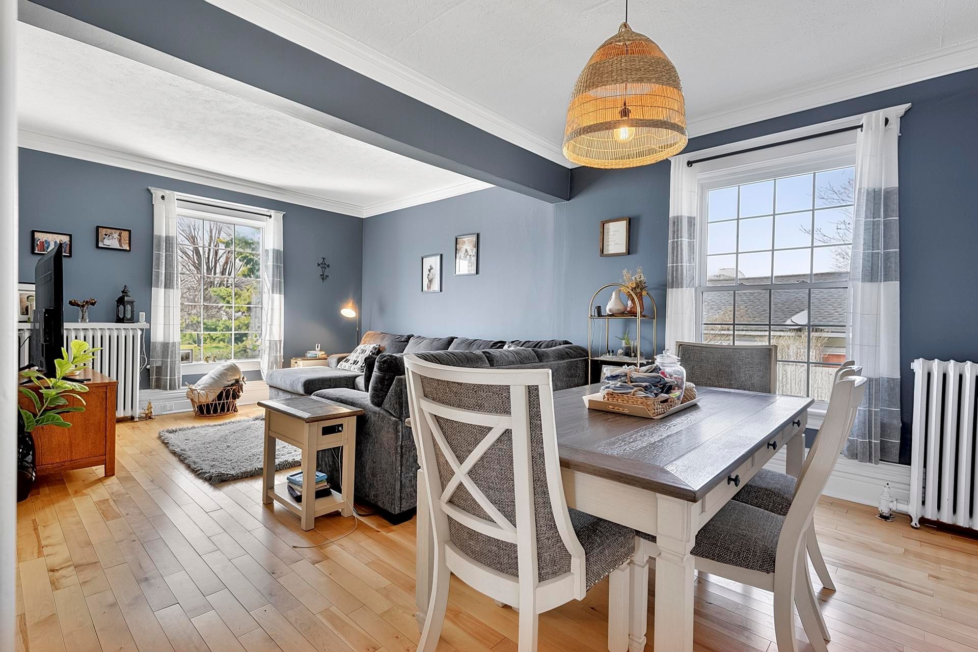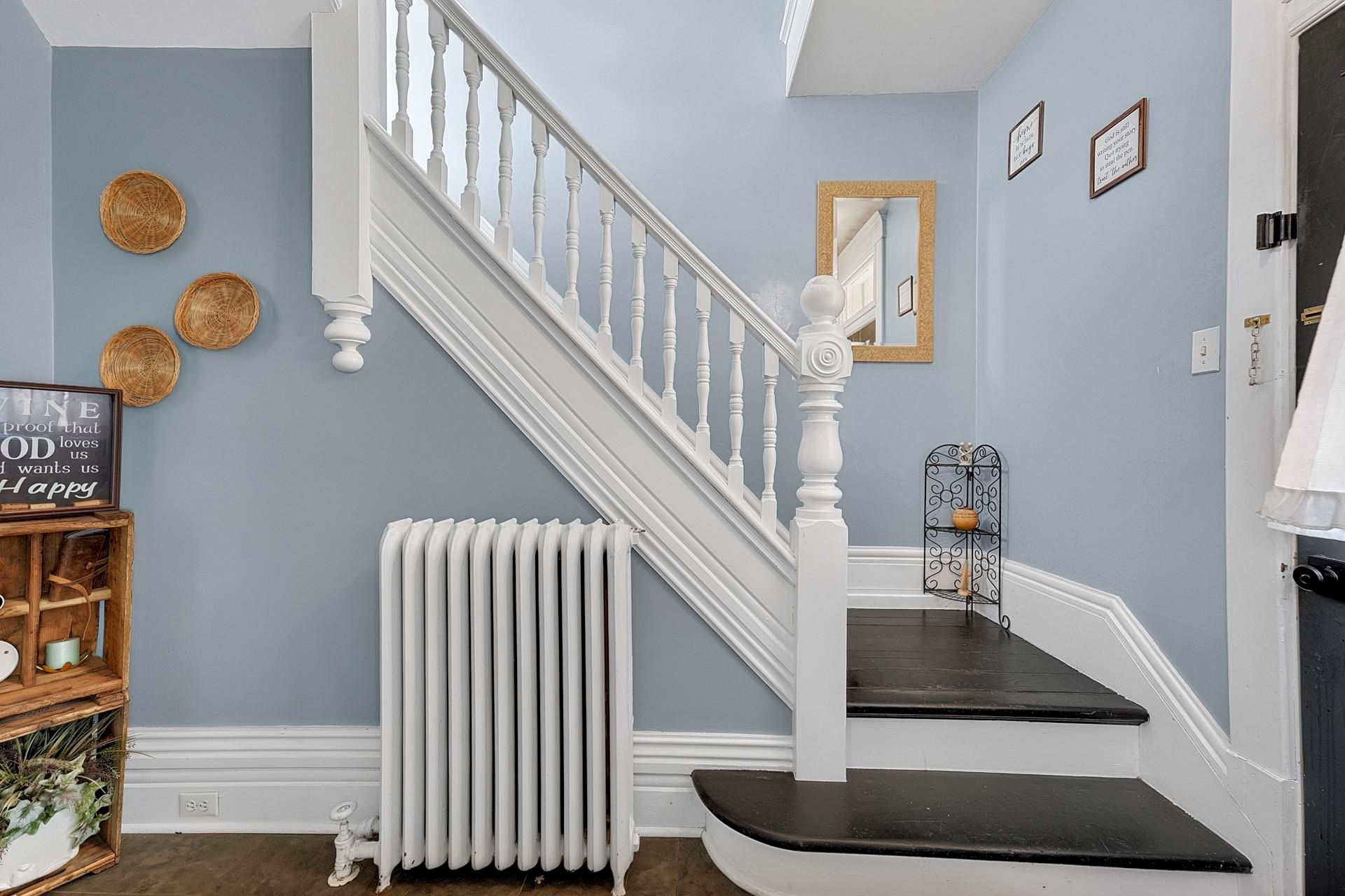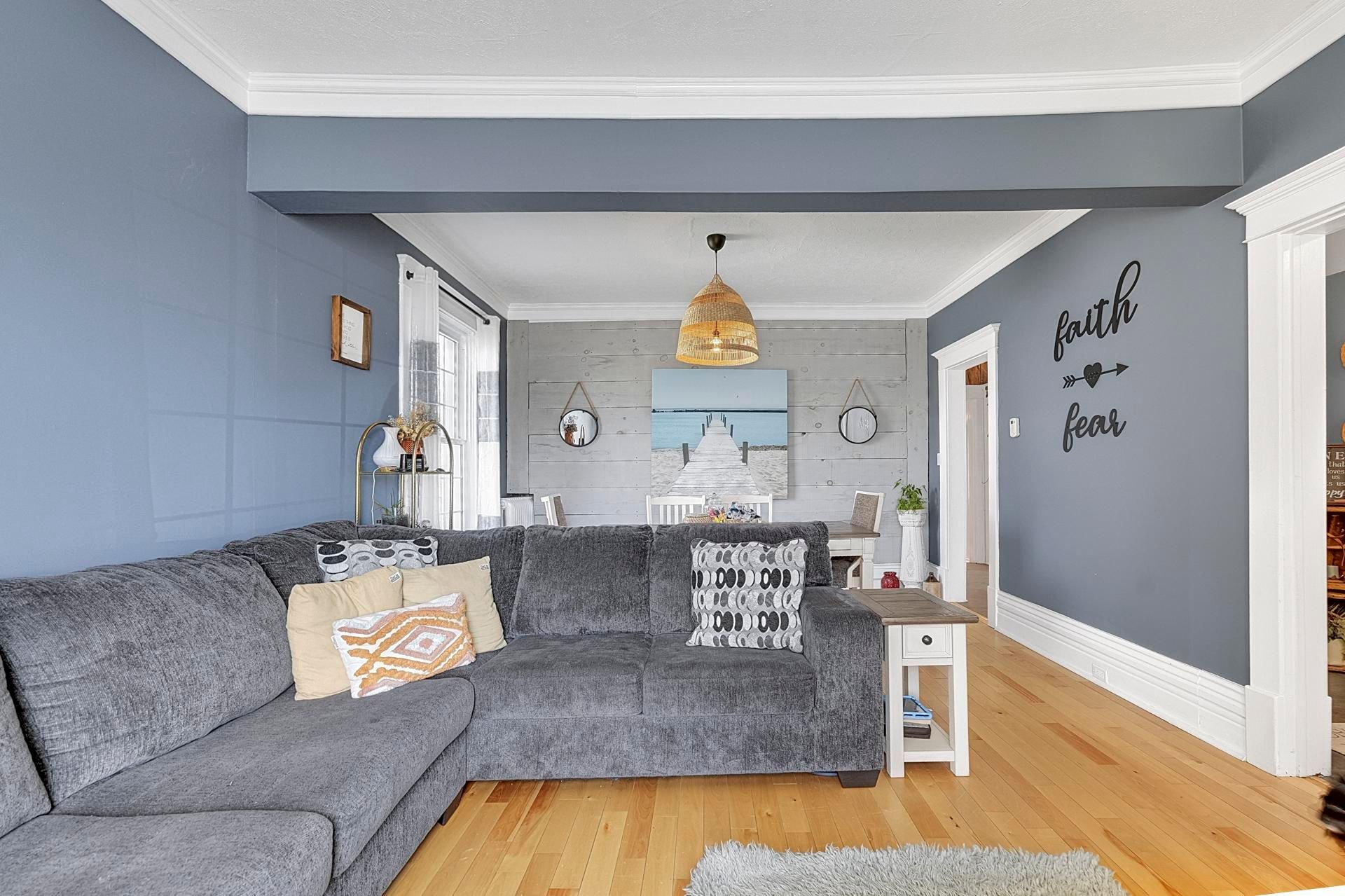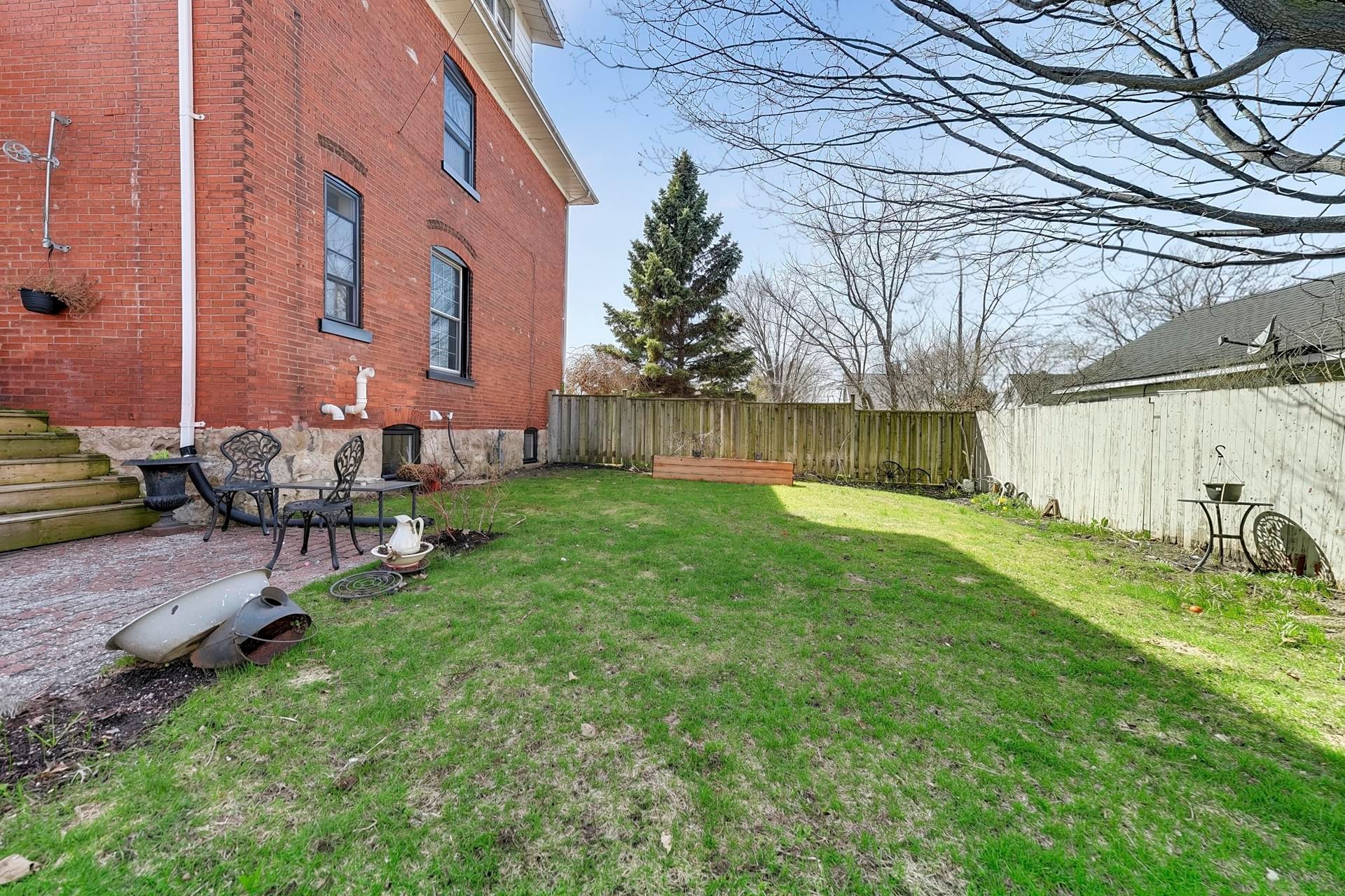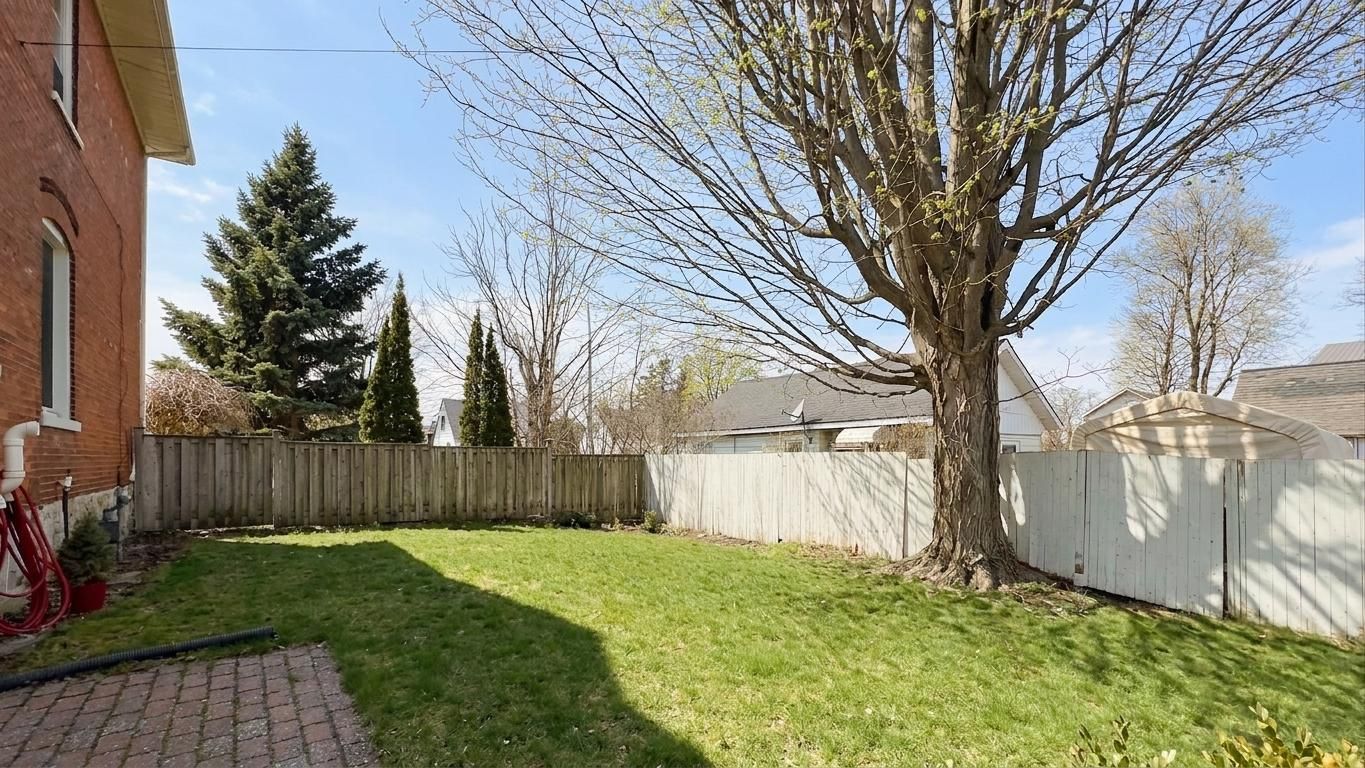 This freshly decorated 3 bedroom 2 bathroom brick family home sits on a spacious 62' x 135' lot with a fenced in rear yard with irrigation system and storage shed. The white and natural wood kitchen offers a sit up island with a main floor 2pc bath and laundry tucked away beside it. An open dining/living room, formal front foyer and rear mud room entry round out the main floor. A gas fired hot water boiler provides the heating and there is a ductless a/c system for cooling. The second floor has 3 bedrooms and a 4 pc bath, and there is added finished space in the attic to use as a 4th bedroom or family room. The basement has space for storage and the utilities. The side lane has space for 2 cars and backs out to the side street.