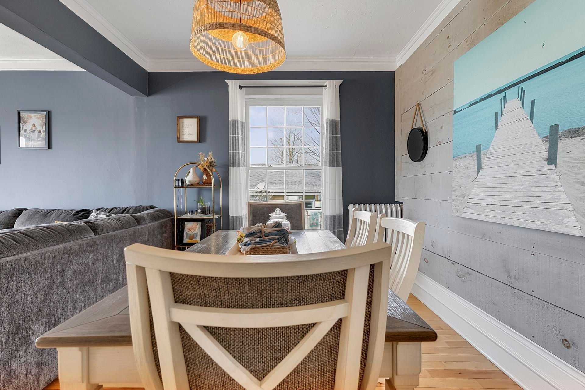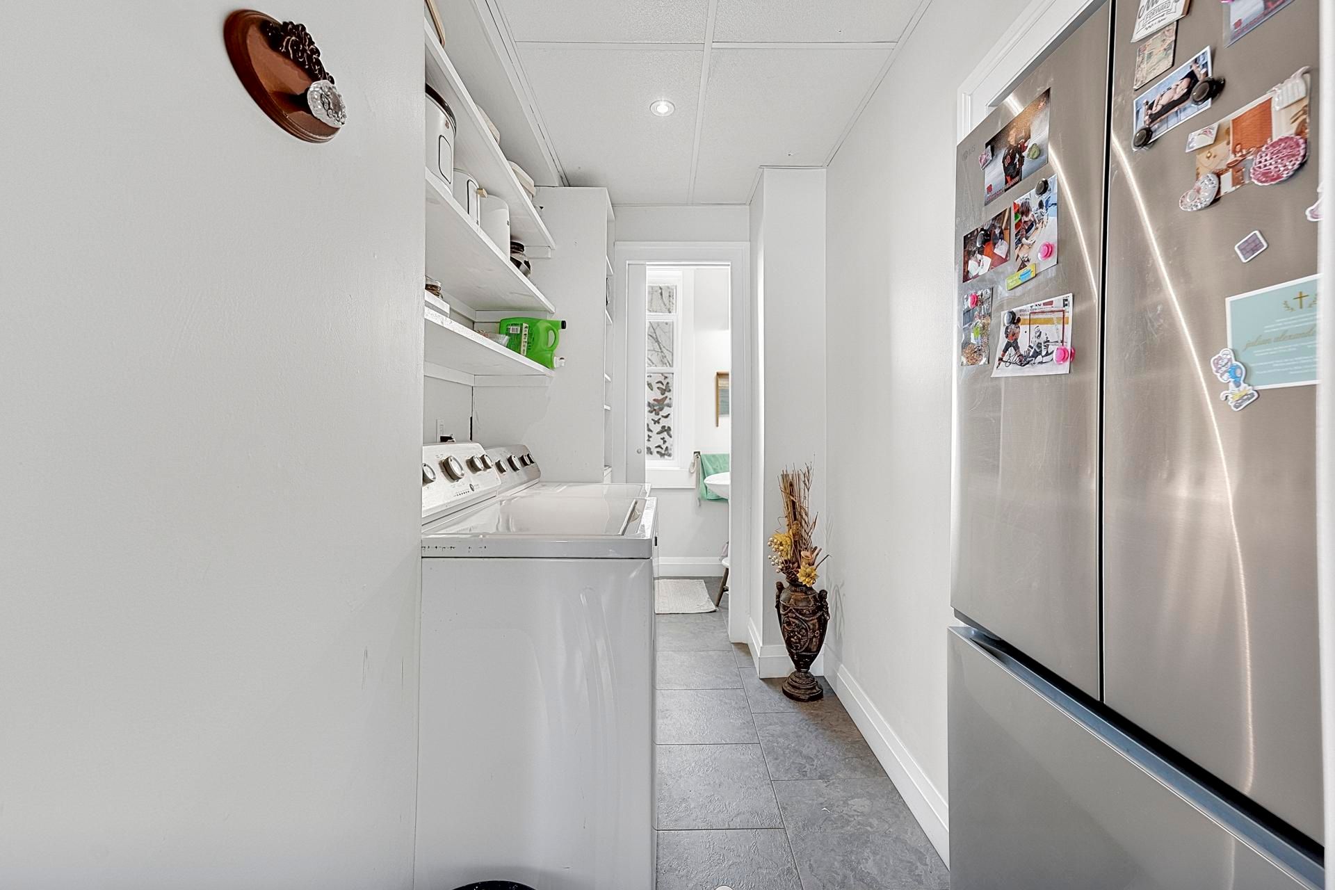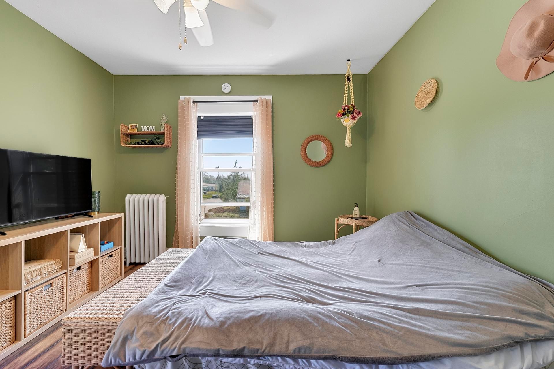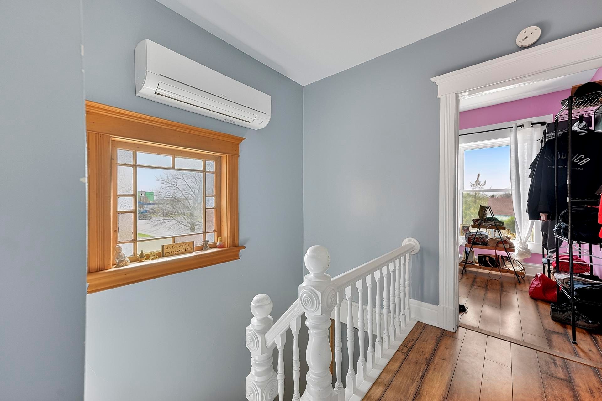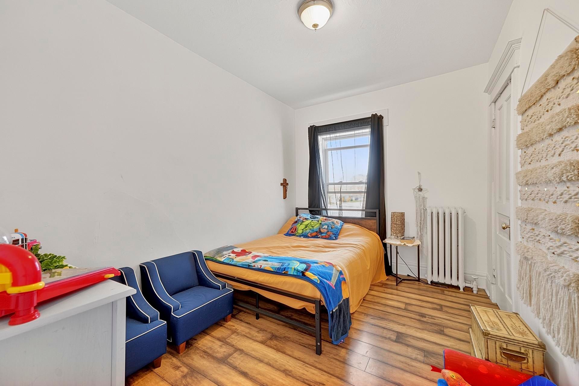 This freshly decorated 3 bedroom 2 bathroom brick family home sits on a spacious 62' x 135' lot with a fenced in rear yard with irrigation system and storage shed. The white and natural wood kitchen offers a sit up island with a main floor 2pc bath and laundry tucked away beside it. An open dining/living room, formal front foyer and rear mud room entry round out the main floor. A gas fired hot water boiler provides the heating and there is a ductless a/c system for cooling. The second floor has 3 bedrooms and a 4 pc bath, and there is added finished space in the attic to use as a 4th bedroom or family room. The basement has space for storage and the utilities. The side lane has space for 2 cars and backs out to the side street.