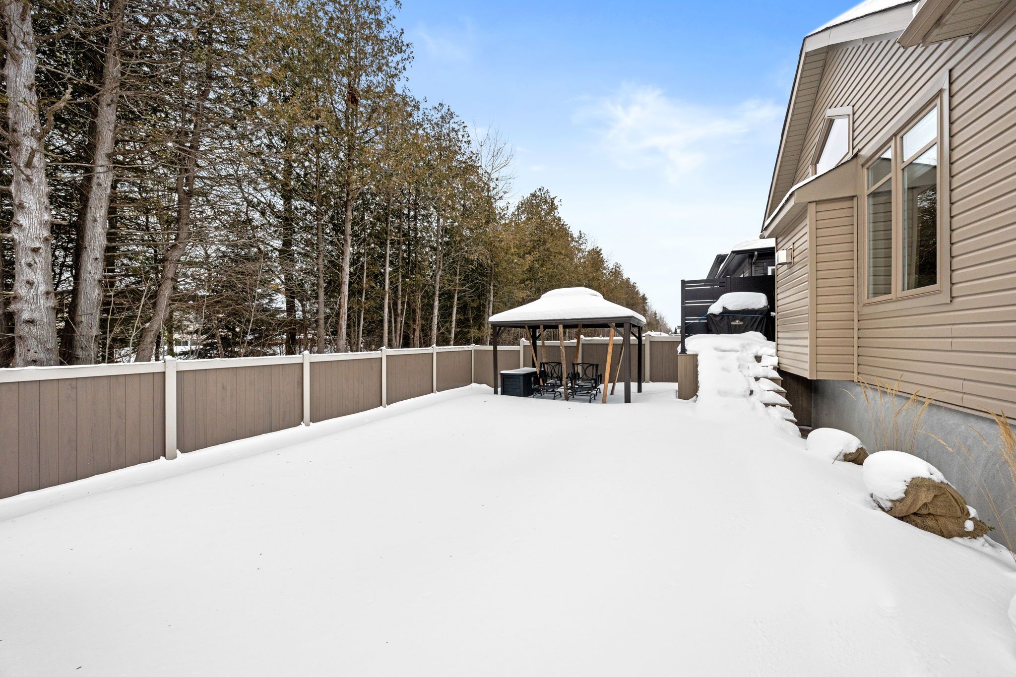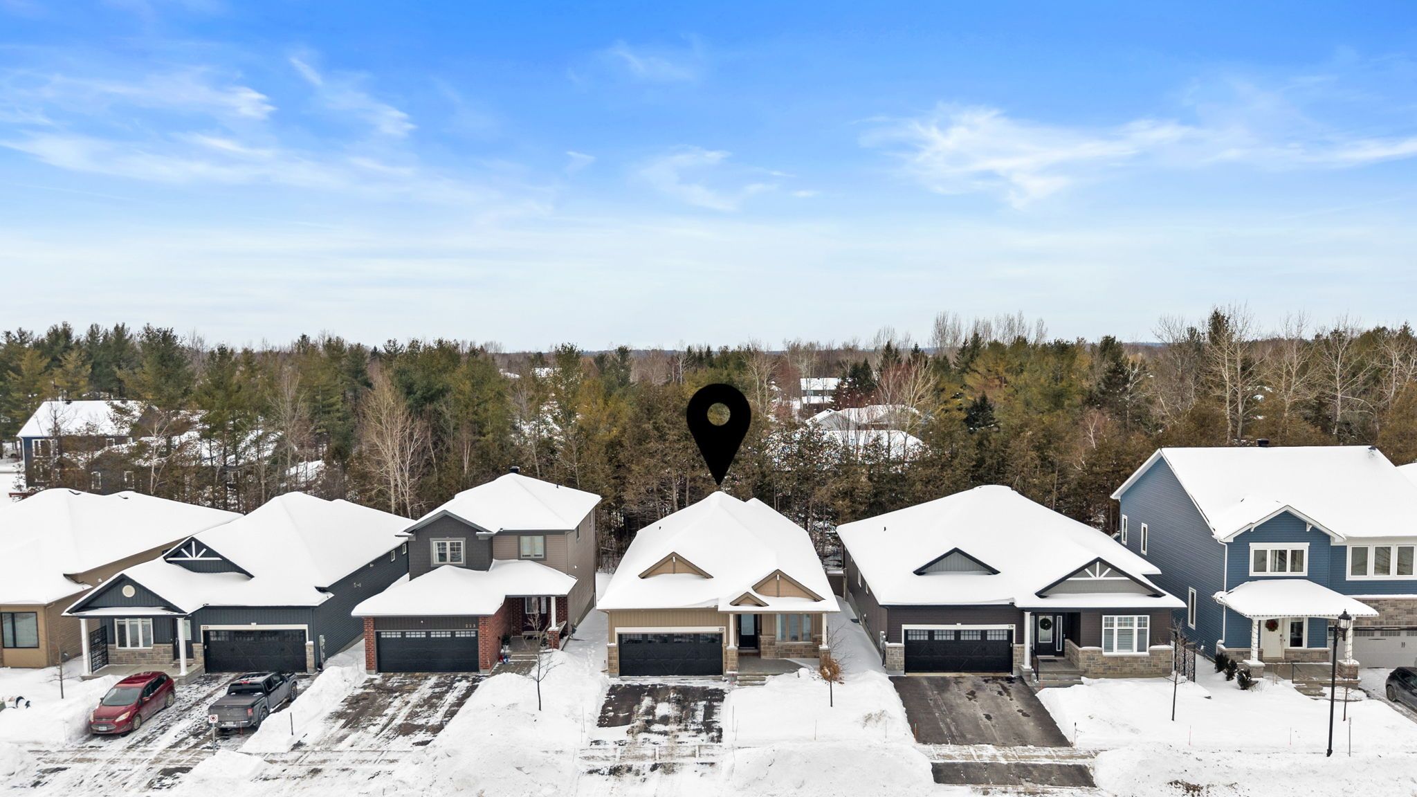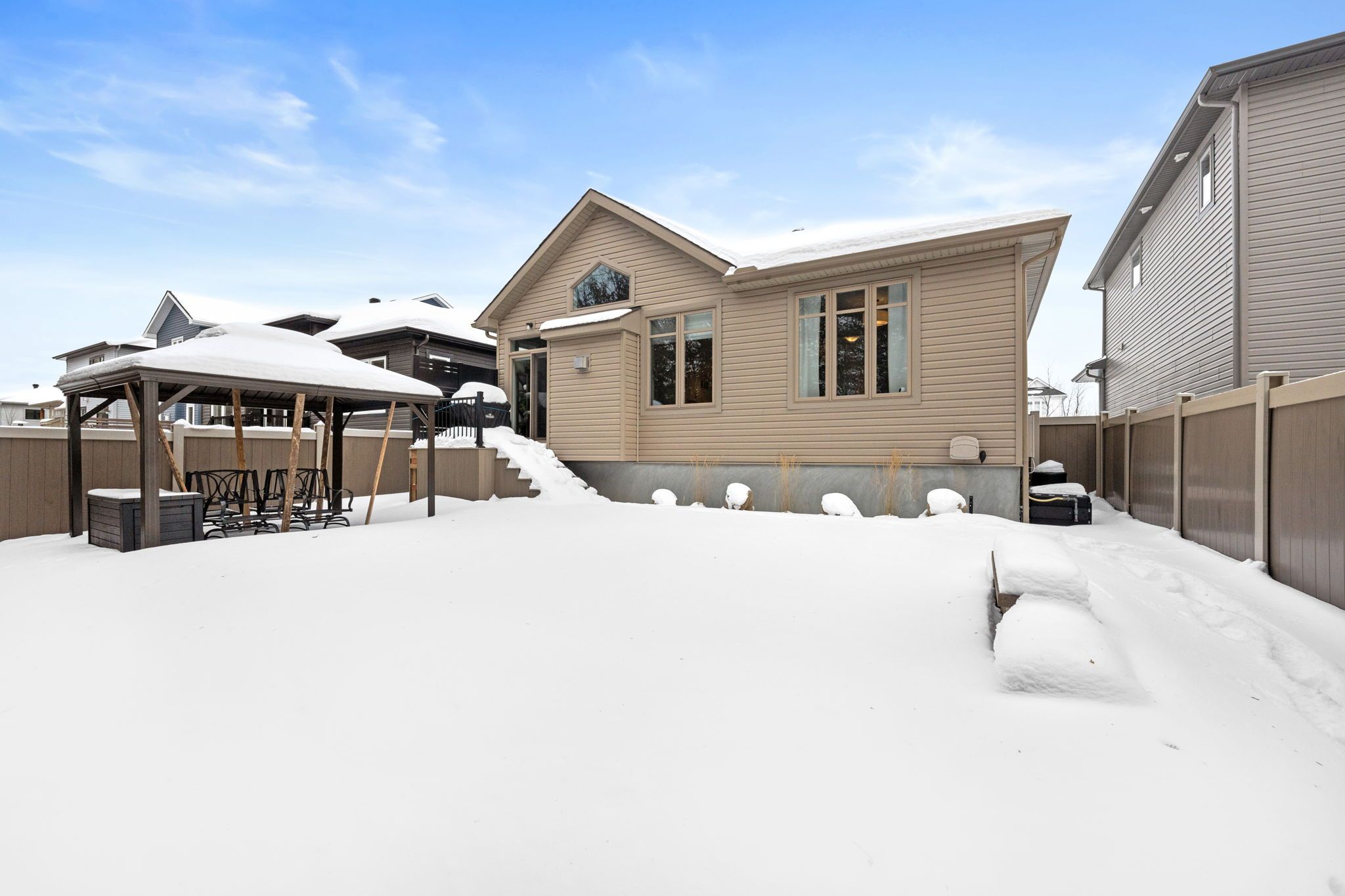Welcome to this exceptional 2-bedroom, 2-bathroom home located in the award-winning equinelle golf course and community. Built by eq homes, the highly desirable dumont model is loaded with countless upgrades and offers a warm, inviting atmosphere throughout. The impressive great room features a soaring vaulted ceiling with an exposed wood beam, a striking floor-to-ceiling stone feature wall, and an oversized linear fireplace that creates a stunning focal point for everyday living and entertaining. The gorgeous kitchen is thoughtfully designed with quartz countertops, stainless steel appliances, a walk-in pantry, and a huge island with a blanco sink, perfect for gathering with family and friends. The space flows seamlessly into a versatile coffee bar area, adding both style and functionality. A front room den provides an ideal home office, library, or flex space. The spacious primary bedroom offers a walk-in closet and an upgraded ensuite, while the second bedroom is also well sized and beautifully finished. Additional upgrades include automated lighting, custom automated blinds and window coverings, upgraded wide-plank hardwood flooring, and tile throughout. The basement is drywalled with electrical already in place, offering excellent potential for future development. Step outside and discover a true backyard retreat-an absolute oasis designed to impress. The private, tree-lined yard offers exceptional seclusion and resort-like ambiance, highlighted by a heated saltwater plunge pool complete with custom lighting, padded stairs, and a tranquil waterfall feature. Composite decking, a charming gazebo, and thoughtfully designed outdoor spaces create the perfect setting for relaxing, entertaining, or unwinding after a round of golf. This spectacular outdoor space truly sets the home apart and must be seen to be fully appreciated.