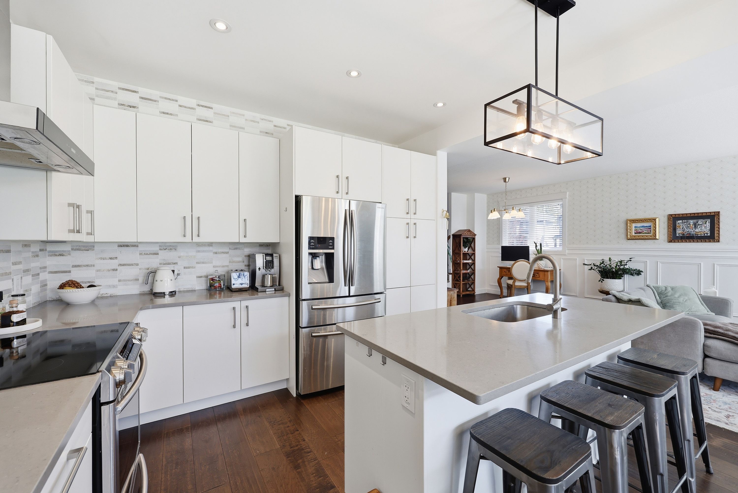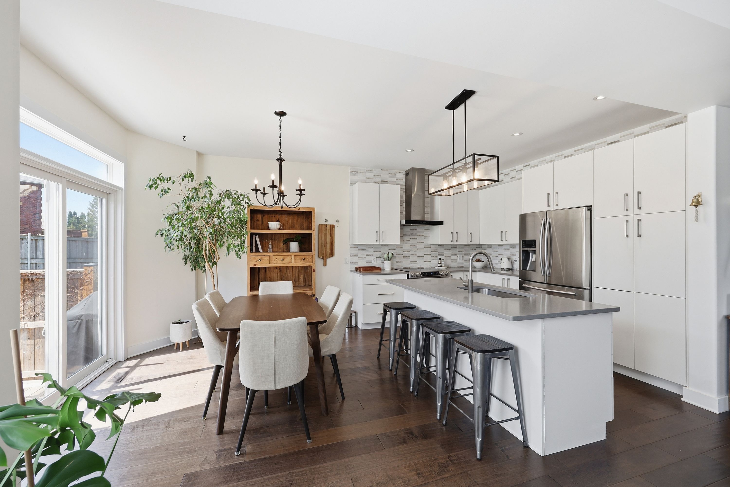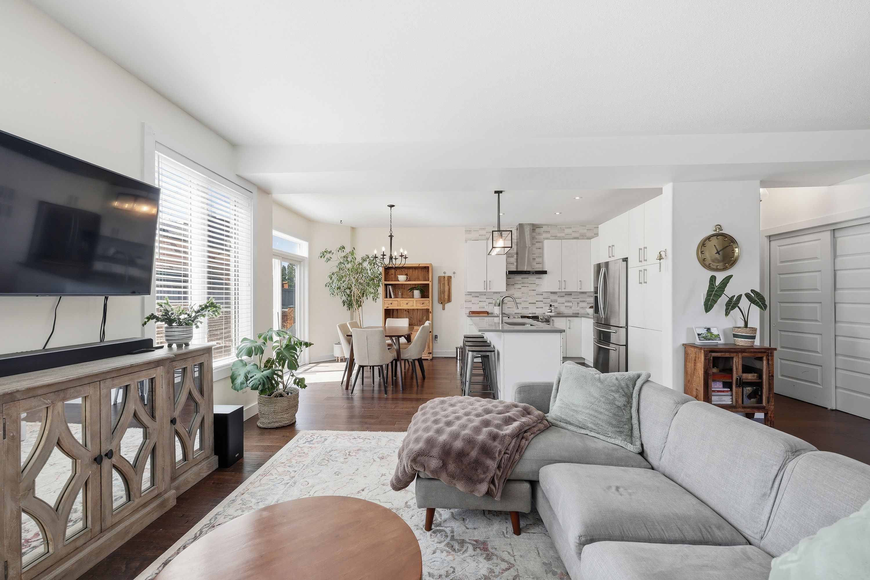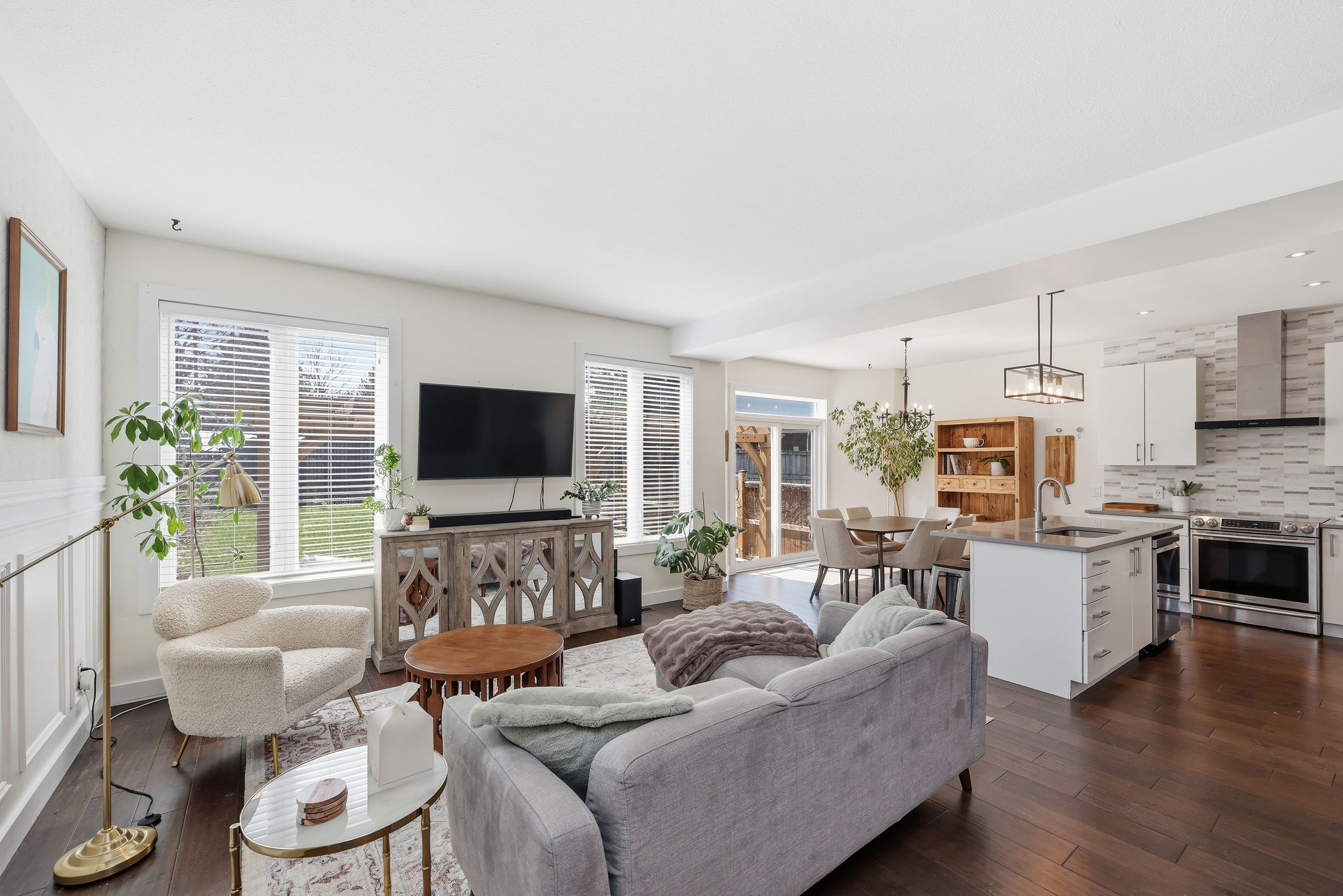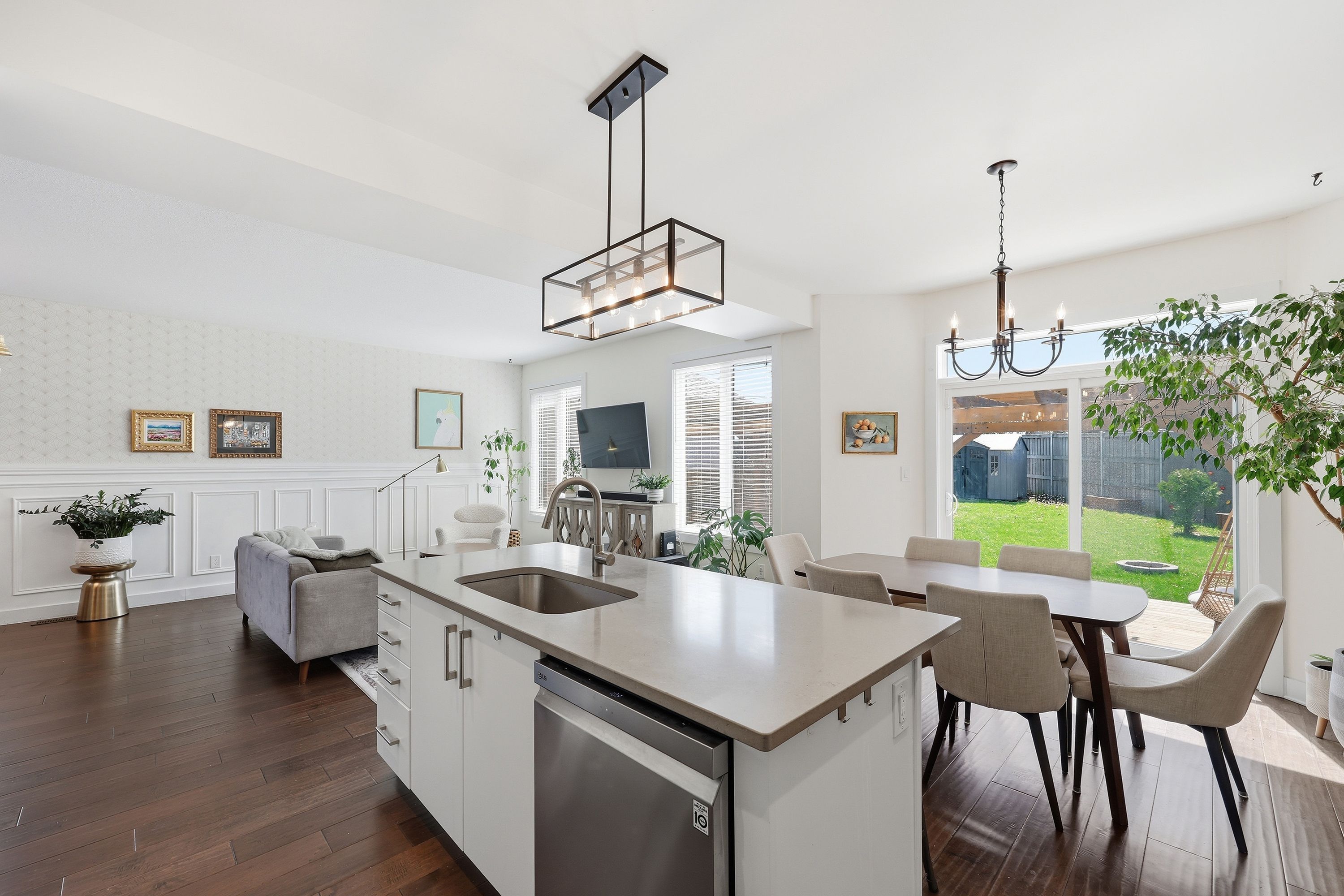 • Bright open concept main floor with modern kitchen and dining area.