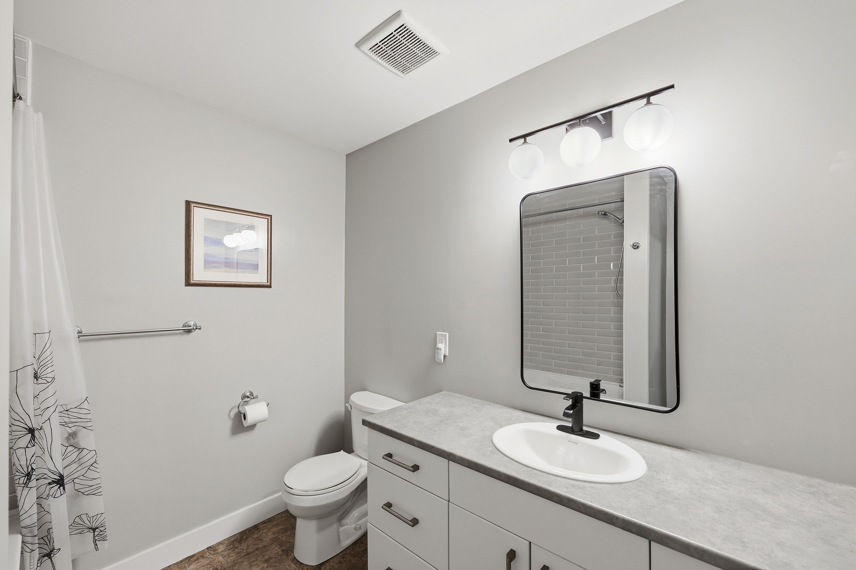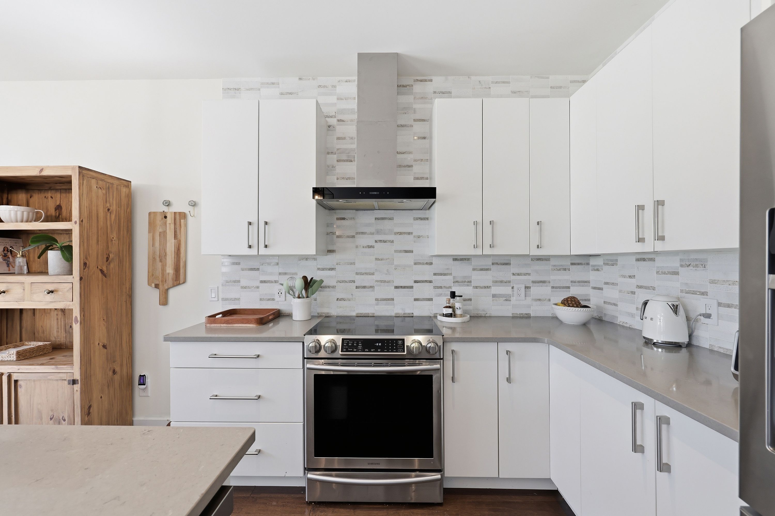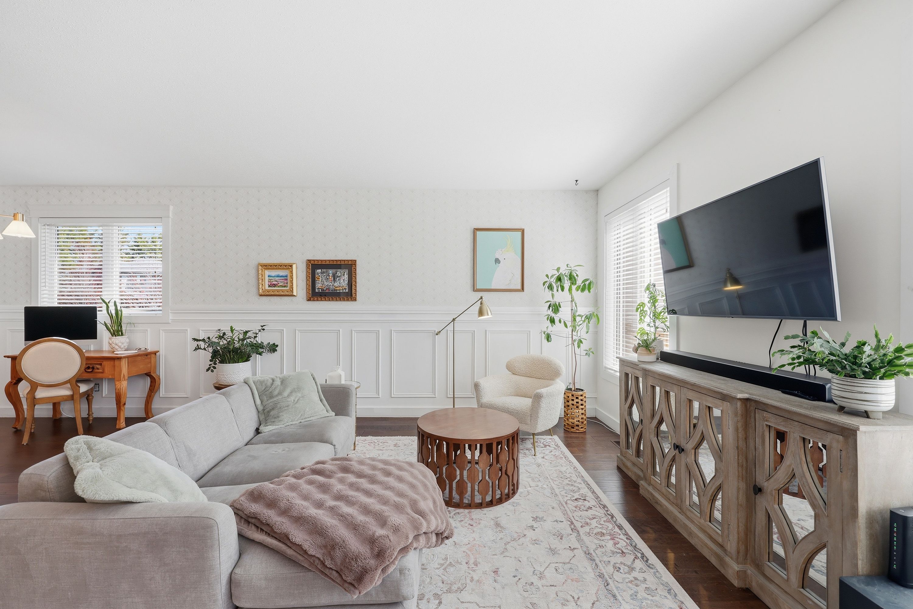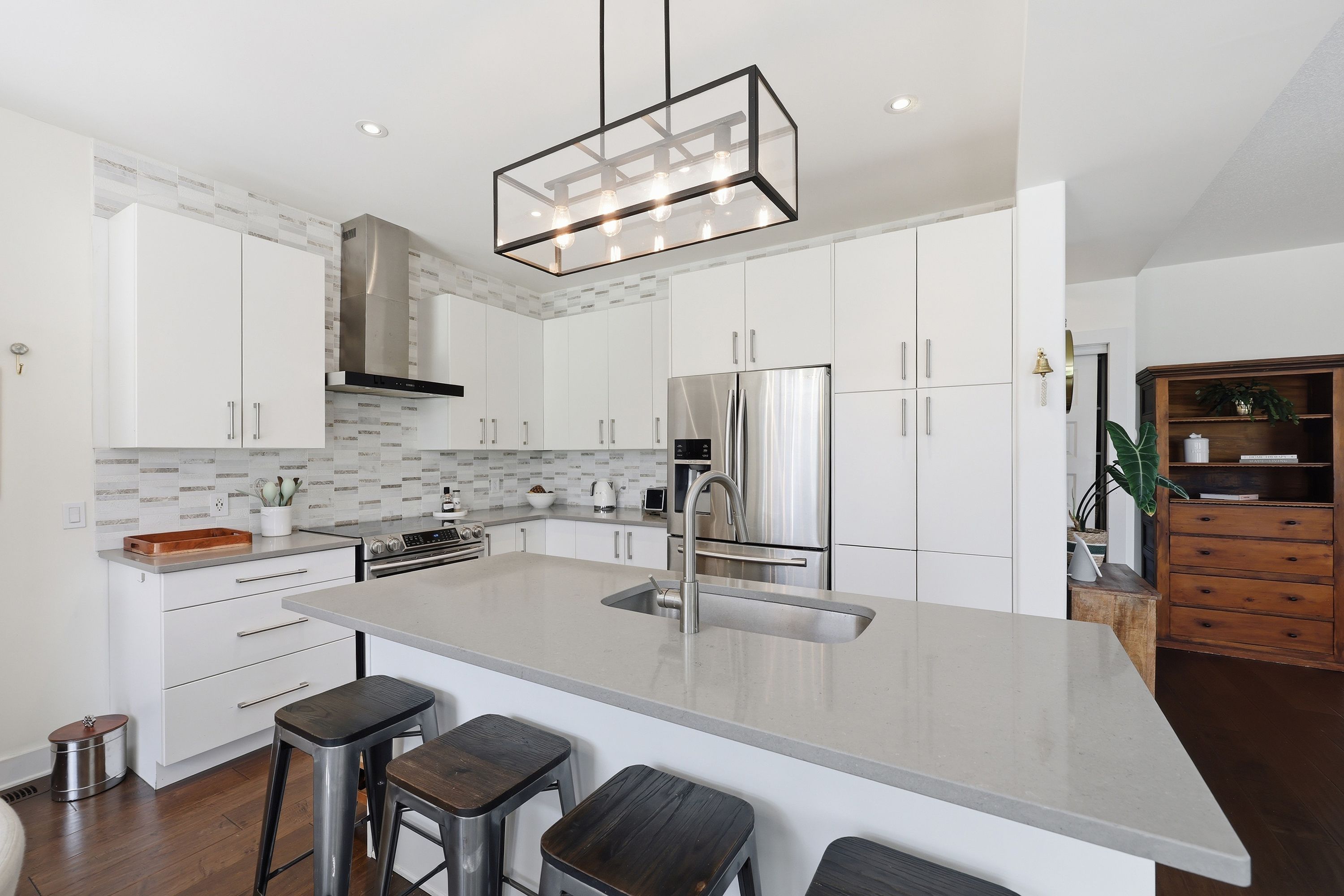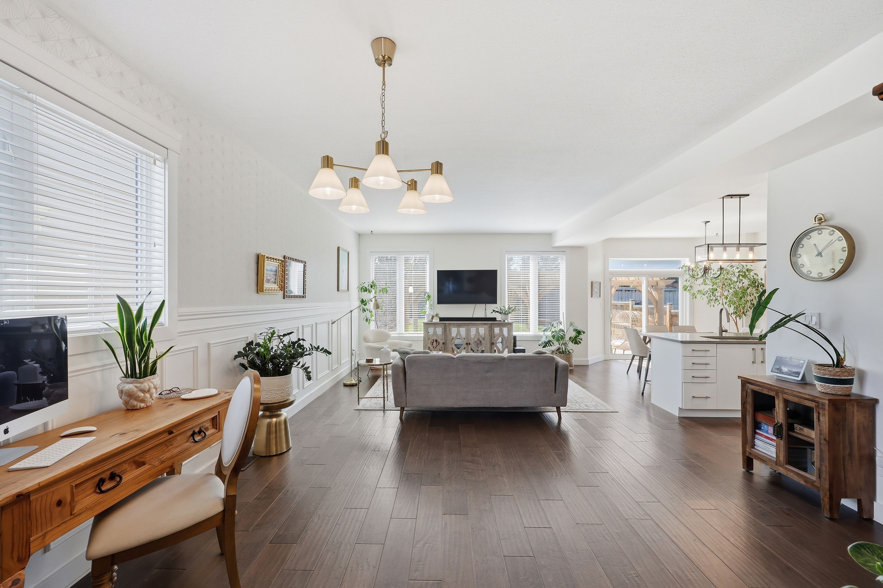 • Bright open concept main floor with modern kitchen and dining area.
