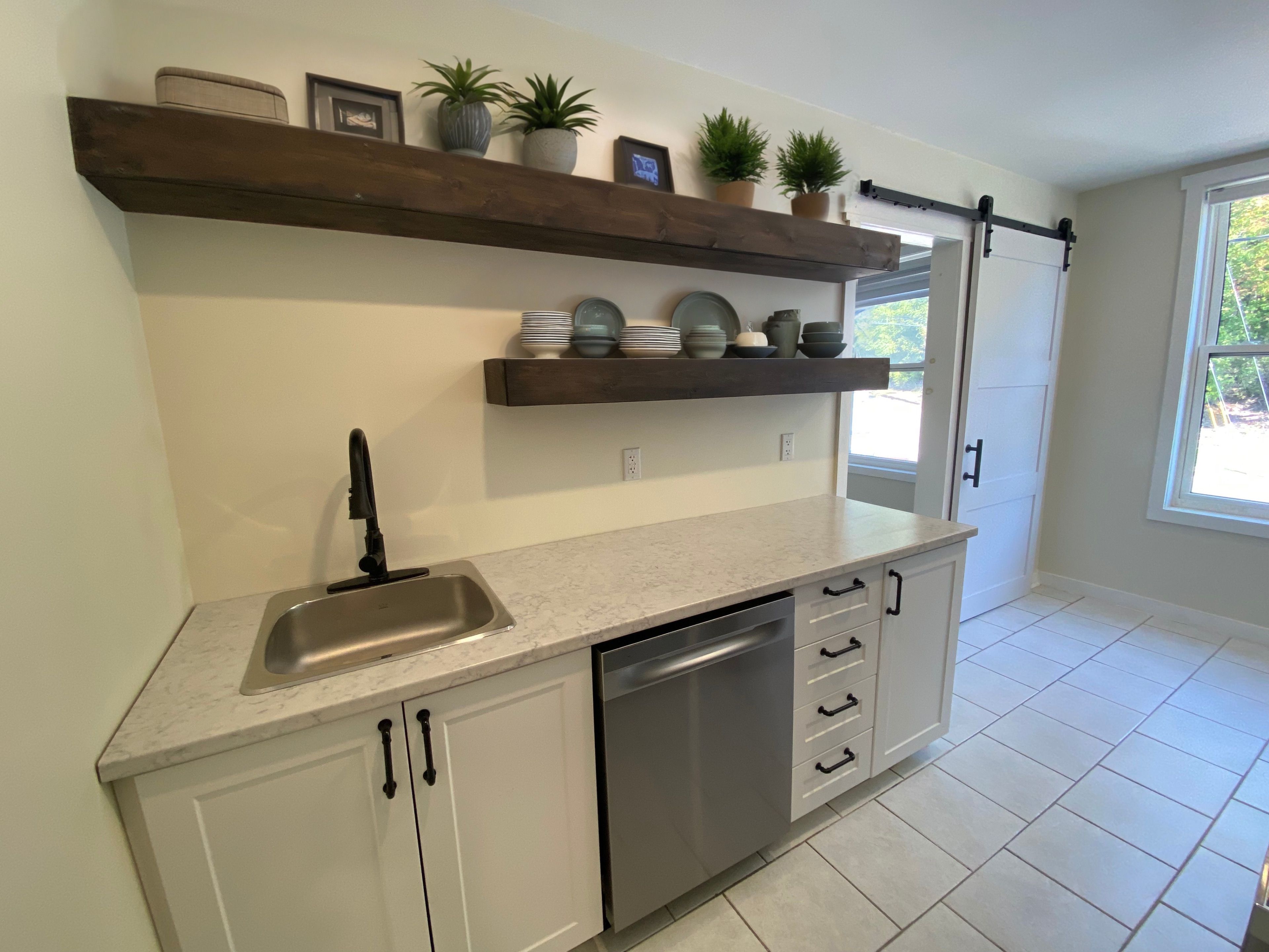 • Updated kitchen features stainless steel appliances and eat-in dining space.