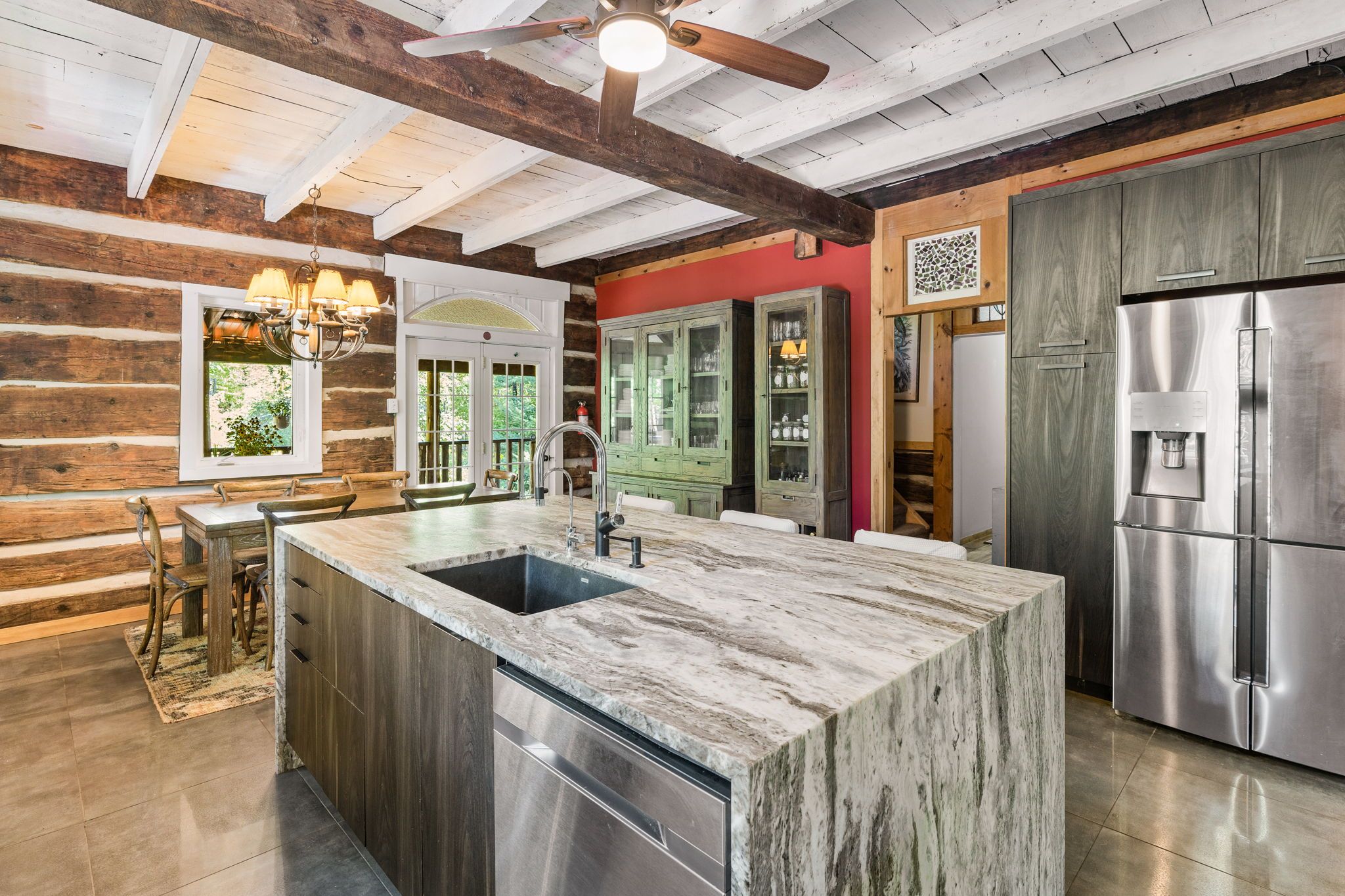 Some places speak to the soul, and this is one of them. Set on a peaceful municipal road just 15 minutes from bobcaygeon and buckhorn, this 15-acre retreat offers forest, trails, and ponds a sanctuary where life feels beautifully simple. At its heart is an 1836 log cabin, lovingly preserved and thoughtfully updated. The front porch invites slow mornings with coffee in hand, while inside a renovated kitchen blends modern convenience with rustic charm a granite waterfall island, abundant cabinetry, and natural light spilling across the eat-in dining space with walkout to the rear deck. The main floor also includes a cozy office/bedroom, full bathroom, laundry, and utility space. Upstairs, three bedrooms and a second 4pc bath provide room for family and guests, while the separate master suite feels like its own retreat with serene views over the property. The living room radiates warmth and magic perfect for gathering, playing the piano, or simply enjoying the ambiance. Step outside and life feels enchanted. A spacious back deck overlooks the pond, while a screened-in room sets the stage for evenings with a glass of wine and the soundtrack of nature. Multiple fire pits invite storytelling under the stars. A detached garage with woodstove and storage adds practicality to the lifestyle. Beyond the main home, the property unfolds with soulful spaces: a 2-storey log cabin designed as a spiritual retreat with a main-floor service room and upstairs bedroom, plus a second 2-storey log cabin with dining/living area, forest-view bedroom, composting toilet, and outdoor shower. A 17 yurt (2022) adds a magical touch for meditation, gatherings, or guests. With a drilled well, septic, propane furnace, and water treatment, comfort and peace are perfectly balanced. More than a property this is a way of life.