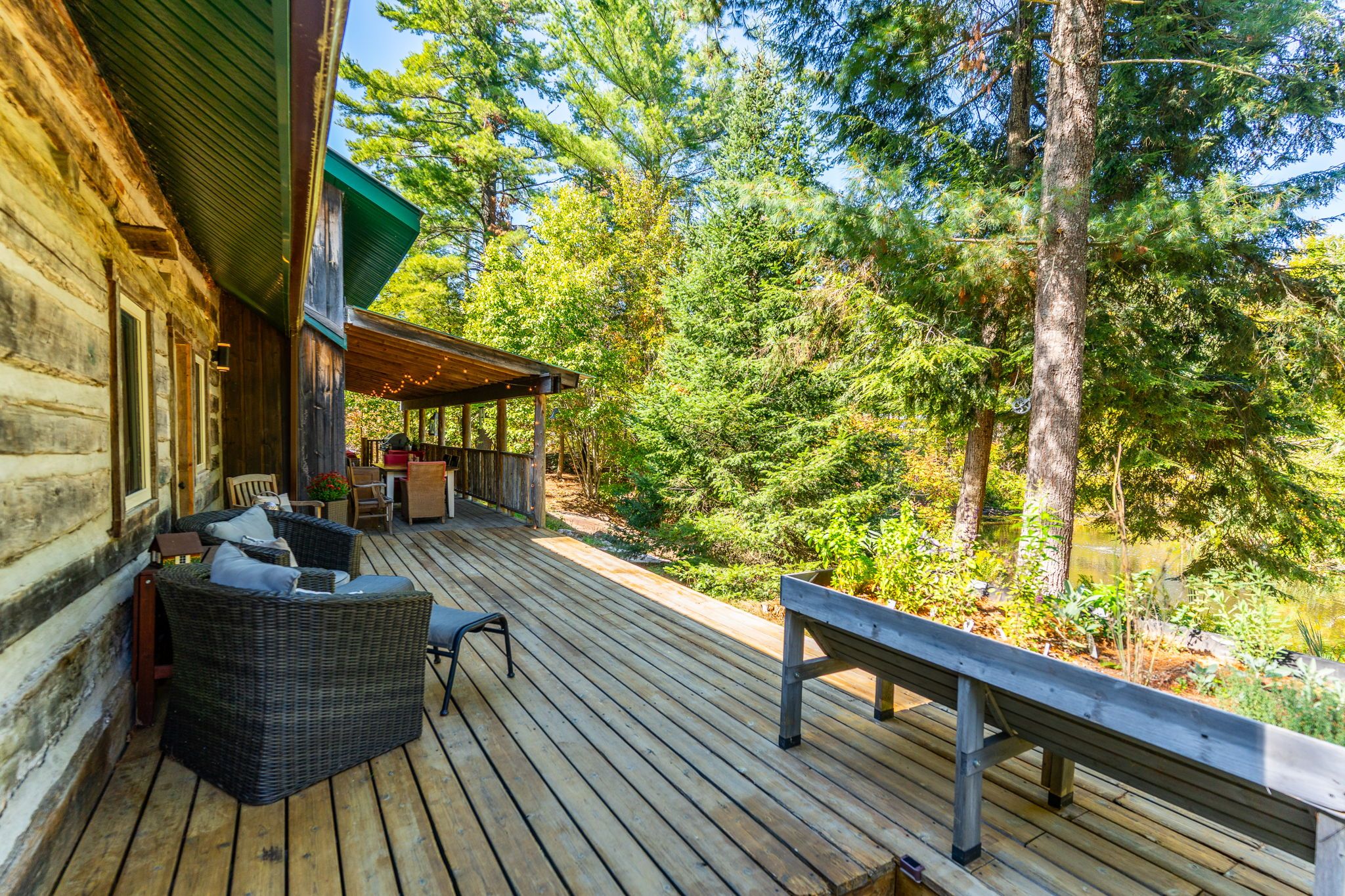 Tucked away on a quiet municipal road just 15 minutes from bobcaygeon and buckhorn, this remarkable 15 acre property offers privacy, nature, and a truly one-of-a-kind lifestyle. Featuring forest, winding trails, and tranquil ponds, this is a setting where everyday life slows down and feels connected to the land. At the heart of the property is an original 1836 log cabin, thoughtfully preserved and tastefully updated to balance character with comfort. Enter the bright front porch with ample space, while inside the renovated kitchen showcases a granite waterfall island, ample cabinetry, and an eat-in dining area with walkout to the rear deck overlooking the pond. The main floor also includes a flexible office or bedroom, 4pc bathroom, laundry, and utility space. Upstairs offers 3 additional bedrooms and a 4-piece bath, while the private primary suite enjoys peaceful views across the property. The living room is warm and welcoming, ideal for gatherings. Step outside to experience the true magic of this property. A large deck and screened-in room create effortless indoor-outdoor living, perfect for entertaining or unwinding while surrounded by nature. Multiple fire pit areas invite evenings under the stars. A detached single-car garage with woodstove & storage. Beyond the main home, the property includes several unique retreat spaces: a two-storey log cabin designed for reflection or guests, a second two-storey cabin with living/dining space, bedroom, composting toilet, and outdoor shower, plus a 17' yurt (2022) ideal for meditation, gatherings, or creative use. Serviced with a drilled well, septic system, propane furnace, and water treatment, this property offers rural serenity without sacrificing comfort. Access the trent severn waterway just down the street with the public boat launch, community centre & local marina.