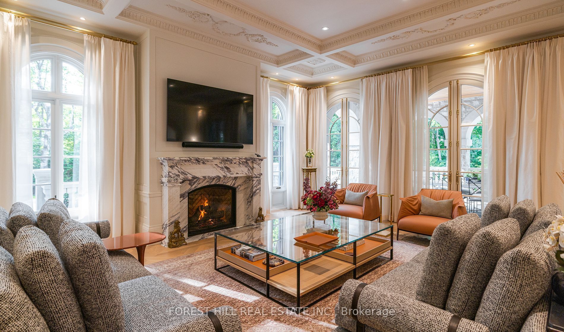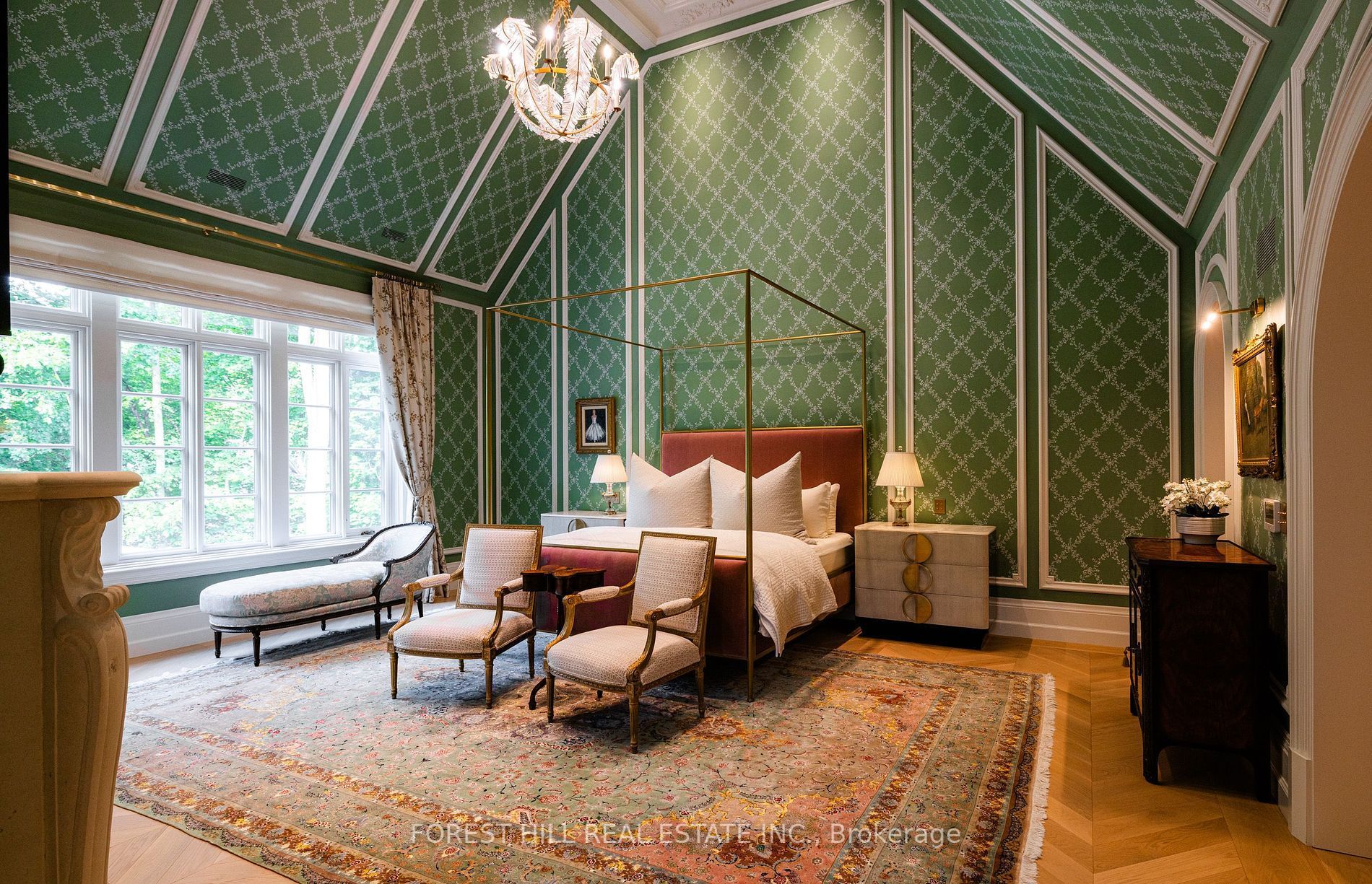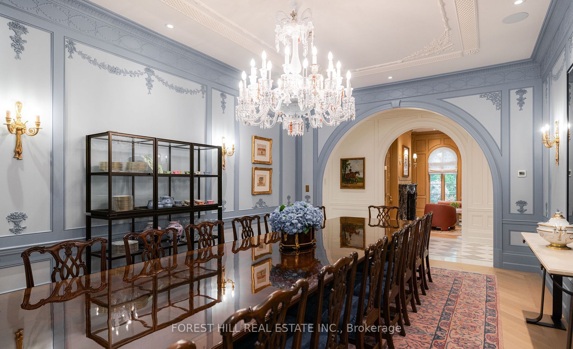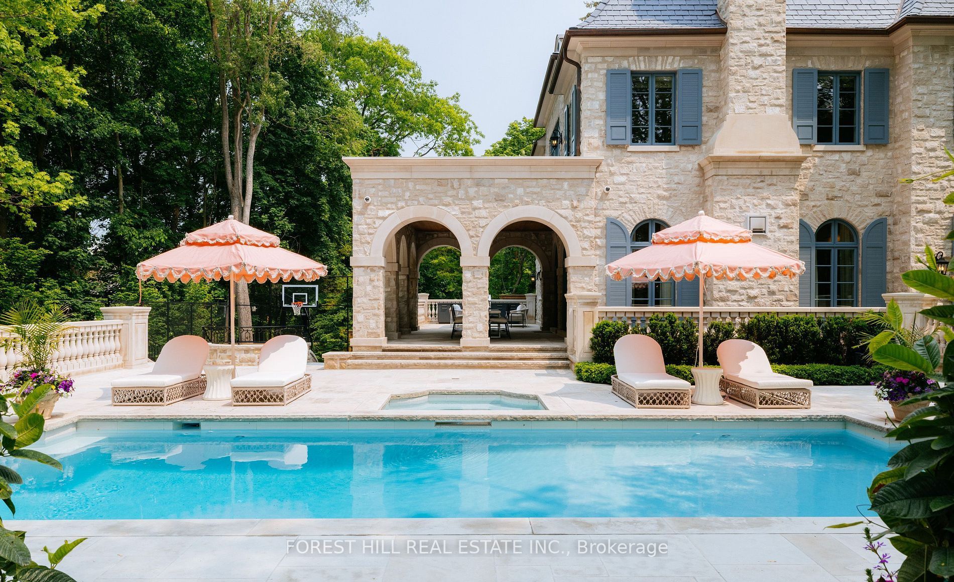 Welcome to 221 forest hill road, an architectural triumph with nearly 13,000 sq ft of living space on a private 17,000 sq ft lot, nestled along the beltline trail in the heart of one of toronto's most exclusive enclaves. This estate represents the pinnacle of bespoke luxury, meticulously brought to life by the city's finest: jtf homes, lorne rose architect, and dvira interiors. Clad in hand-selected limestone and inspired by the romance of the french countryside, the residence evokes the timeless elegance of a provencal chateau. Arched windows with weathered-blue shutters, a stately turret, and a gracefully symmetrical facade create a striking first impression. A dramatic arcaded loggia opens onto manicured grounds and landscaping imagined by fitzgerald and roderick, featuring a lap pool, sports court, and lavish gardens that offer privacy and tranquility. The interiors are nothing short of breathtaking curated blend of old-world grandeur and modern refinement. The main level features soaring ceilings and a dramatic spiral staircase. Chevron-patterned white oak floors, arched passages, imported wallpaper, and tailored lighting reflect impeccable attention to detail. The formal dining room (seating 20) flows effortlessly into a statement kitchen adorned with hand-painted portuguese tiles and custom cabinetry by emanuele furniture design. The sunlit family room is anchored by a hand-carved fireplace and opens onto the gardens through elegant french doors. The crown jewel is the primary suite, a true sanctuary with vaulted ceilings, whimsical wallpaper, arched detailing, and a fireside lounge that creates a retreat-like atmosphere. The piece de resistance: a couture-inspired, two-storey dressing room with a spiral staircase and chandelier, paired with a spa-like ensuite clad in expansive stone and shirley wagner fixtures. The lower level features a sprawling rec room, games lounge, prep kitchen, gym, cedar sauna, and a home theatre for the ultimate cinematic escape.