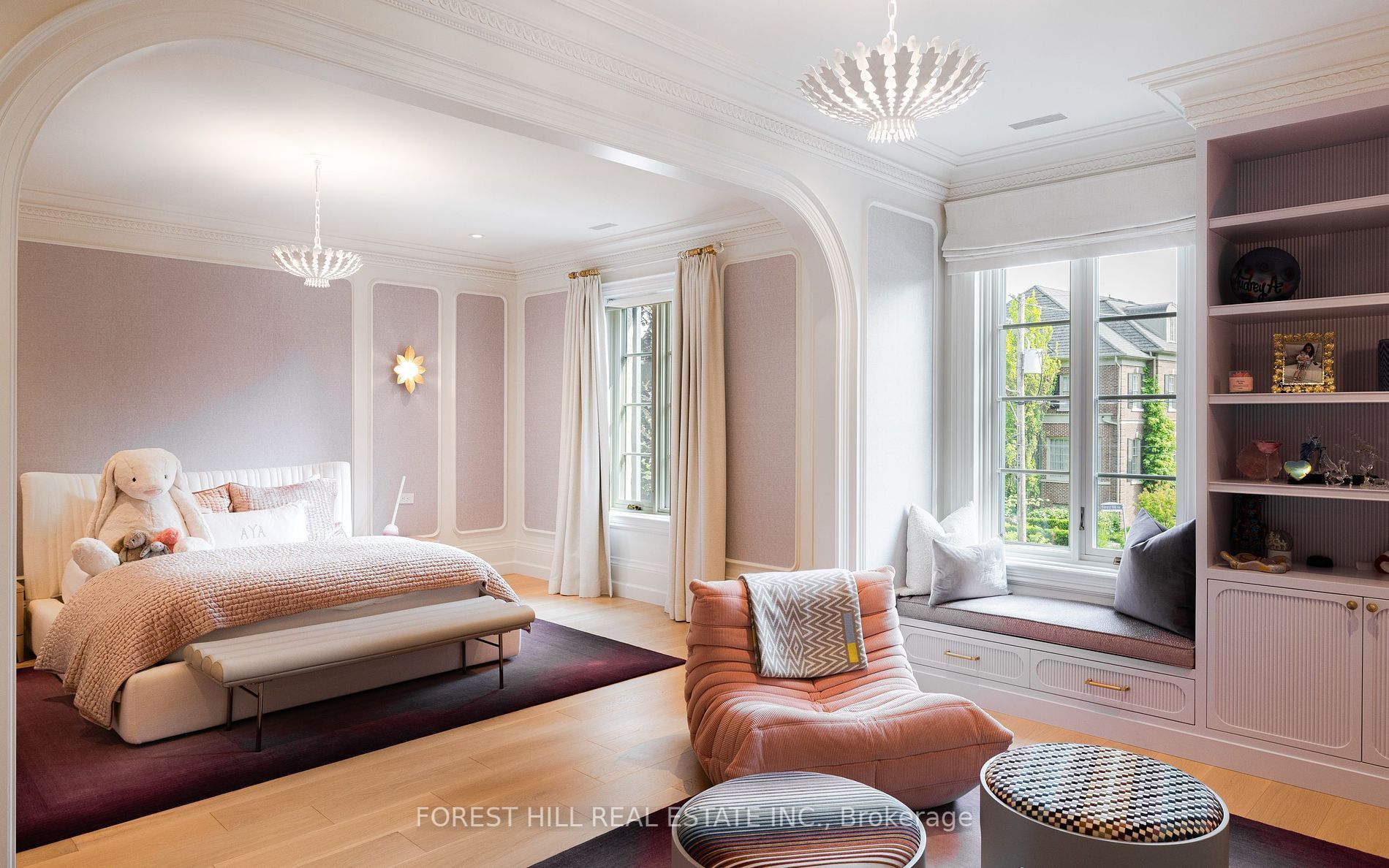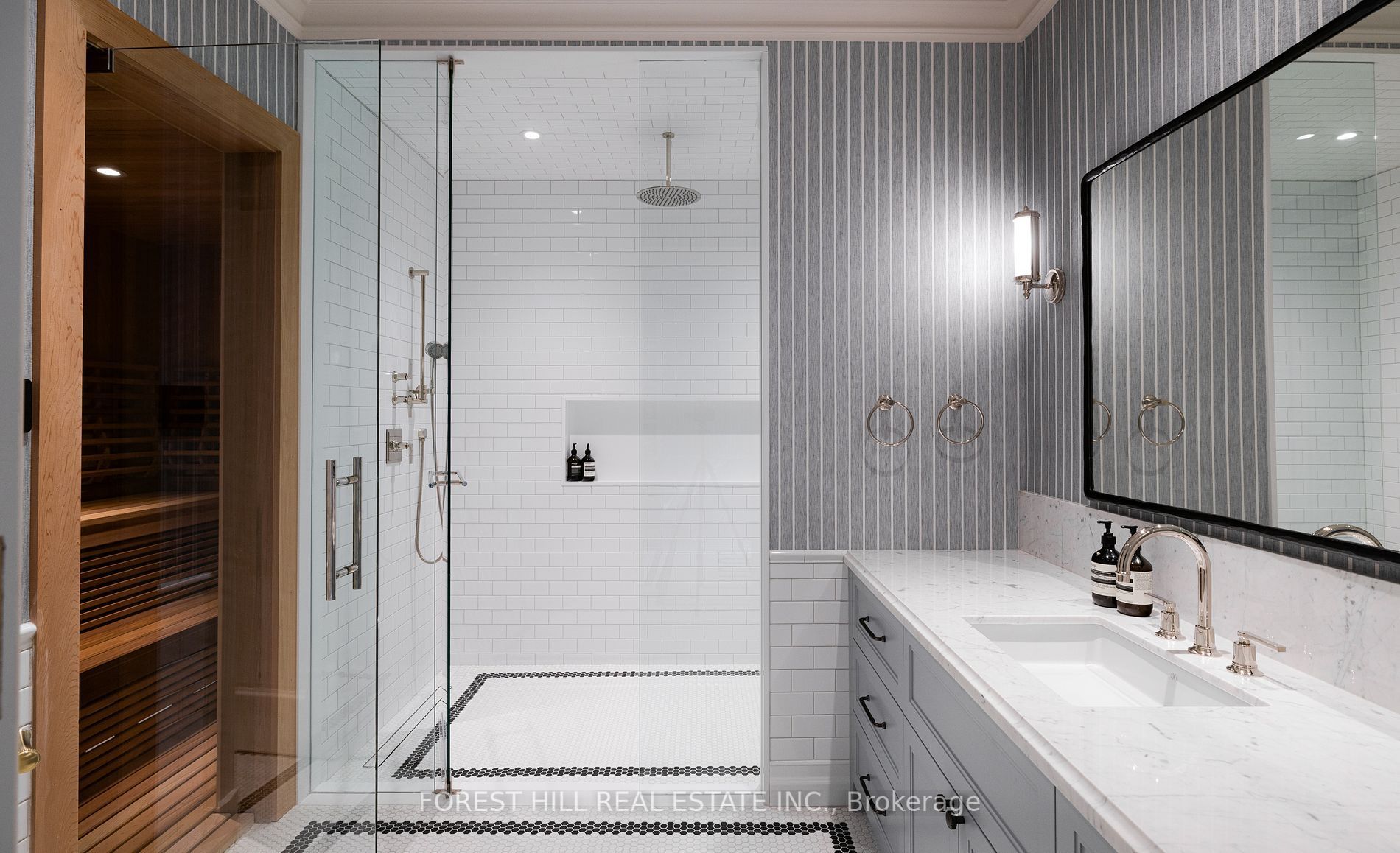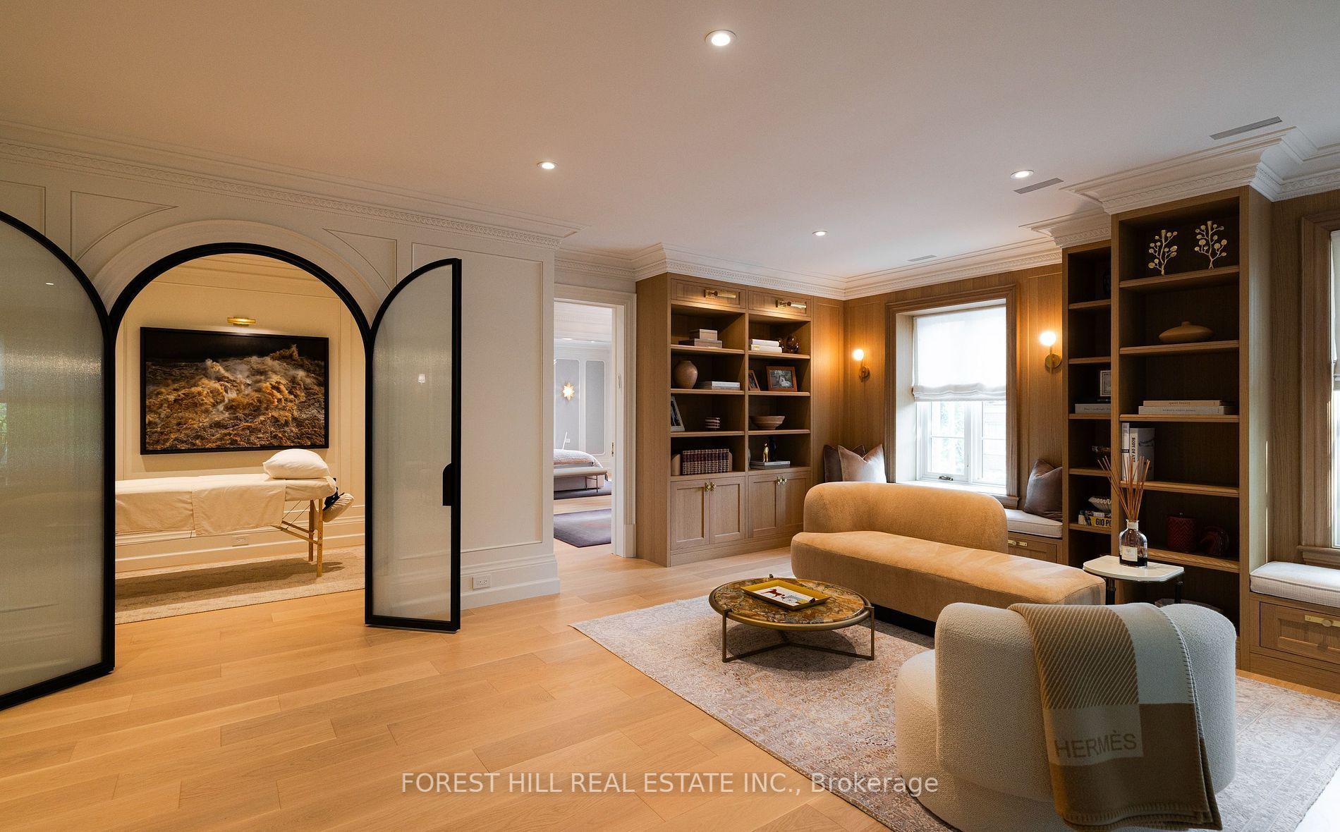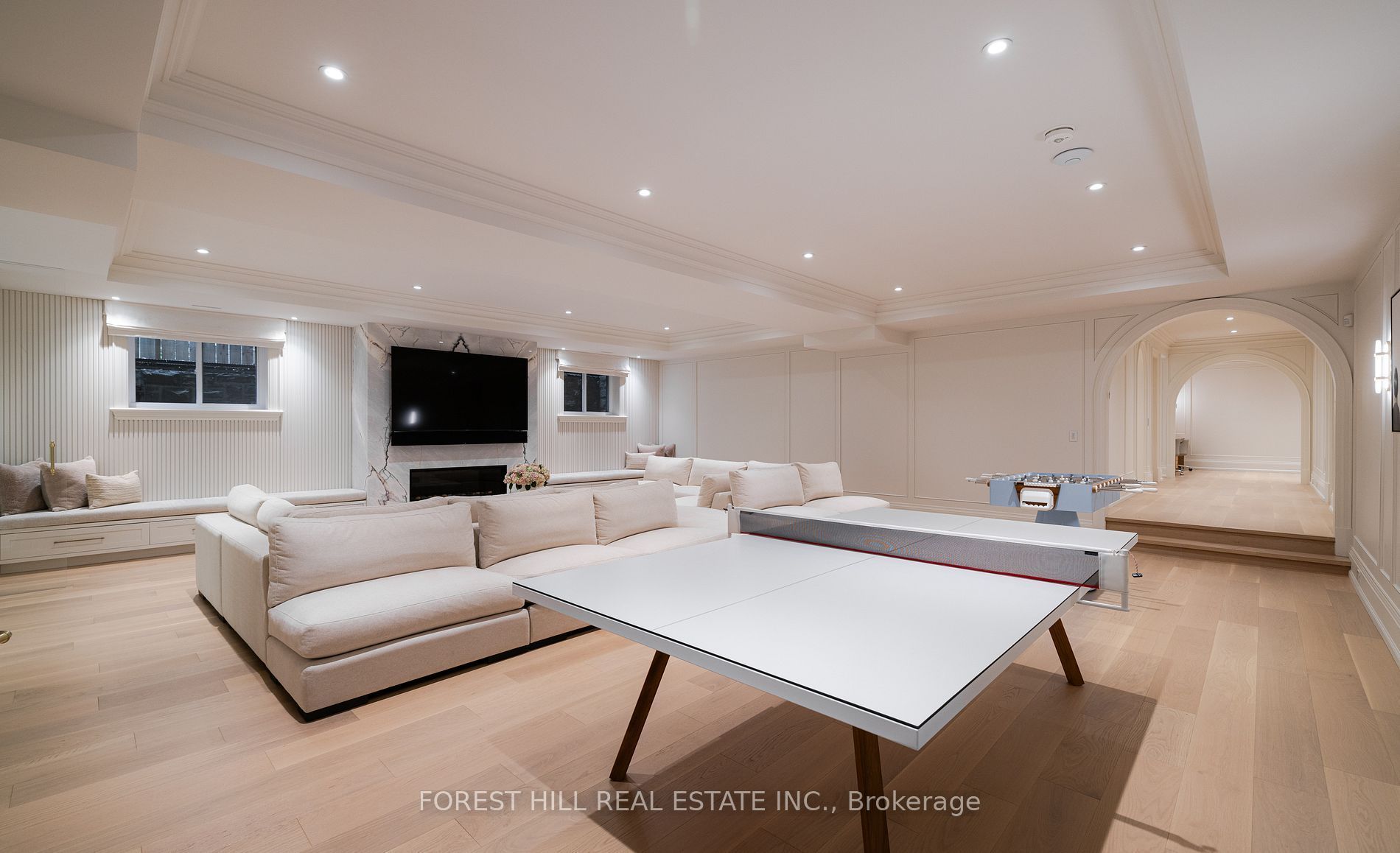 Welcome to 221 forest hill road, an architectural triumph with nearly 13,000 sq ft of living space on a private 17,000 sq ft lot, nestled along the beltline trail in the heart of one of toronto's most exclusive enclaves. This estate represents the pinnacle of bespoke luxury, meticulously brought to life by the city's finest: jtf homes, lorne rose architect, and dvira interiors. Clad in hand-selected limestone and inspired by the romance of the french countryside, the residence evokes the timeless elegance of a provencal chateau. Arched windows with weathered-blue shutters, a stately turret, and a gracefully symmetrical facade create a striking first impression. A dramatic arcaded loggia opens onto manicured grounds and landscaping imagined by fitzgerald and roderick, featuring a lap pool, sports court, and lavish gardens that offer privacy and tranquility. The interiors are nothing short of breathtaking curated blend of old-world grandeur and modern refinement. The main level features soaring ceilings and a dramatic spiral staircase. Chevron-patterned white oak floors, arched passages, imported wallpaper, and tailored lighting reflect impeccable attention to detail. The formal dining room (seating 20) flows effortlessly into a statement kitchen adorned with hand-painted portuguese tiles and custom cabinetry by emanuele furniture design. The sunlit family room is anchored by a hand-carved fireplace and opens onto the gardens through elegant french doors. The crown jewel is the primary suite, a true sanctuary with vaulted ceilings, whimsical wallpaper, arched detailing, and a fireside lounge that creates a retreat-like atmosphere. The piece de resistance: a couture-inspired, two-storey dressing room with a spiral staircase and chandelier, paired with a spa-like ensuite clad in expansive stone and shirley wagner fixtures. The lower level features a sprawling rec room, games lounge, prep kitchen, gym, cedar sauna, and a home theatre for the ultimate cinematic escape.