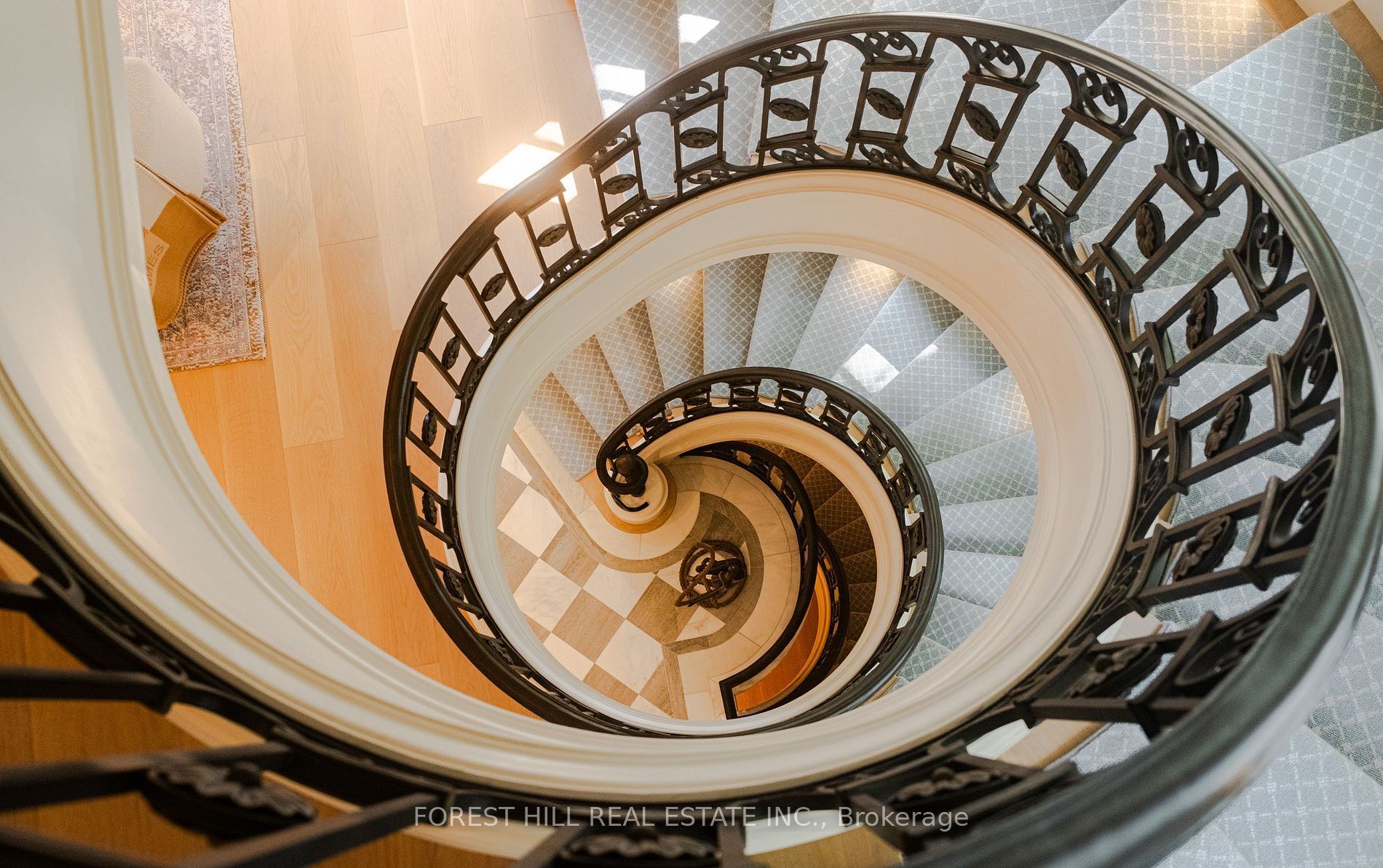 • Impressive interiors feature high ceilings, designer finishes, and a grand spiral staircase.