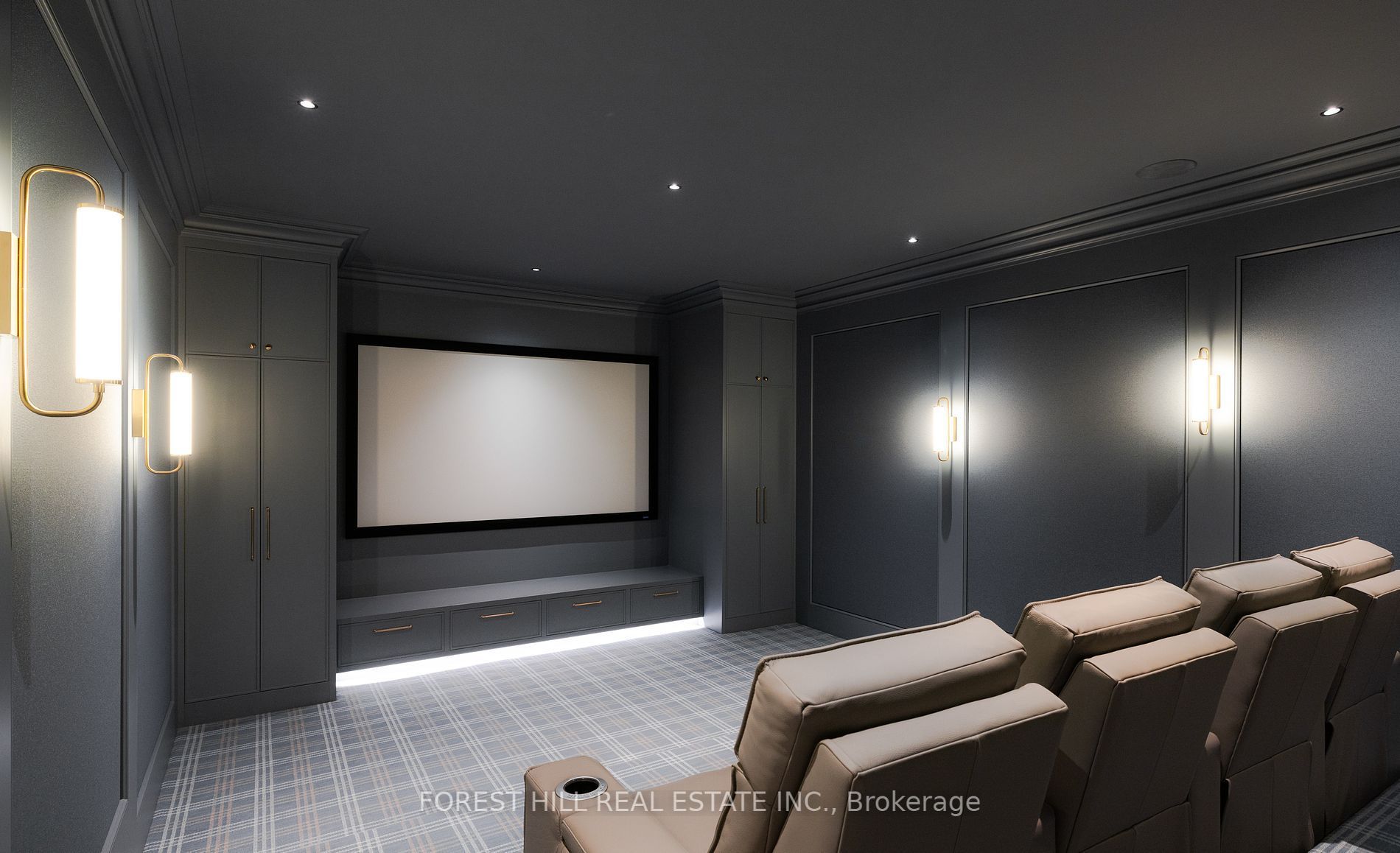 • Lower level includes a gym, sauna, home theatre, and ample entertainment space.
