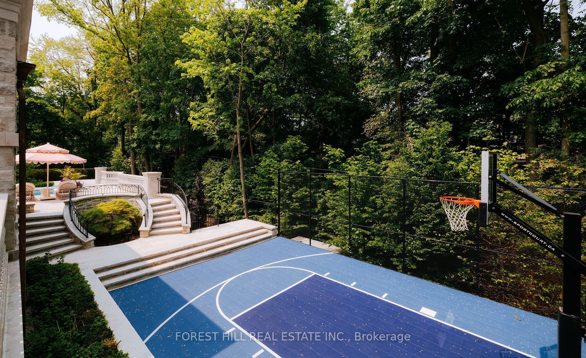 • Stunning grounds include a lap pool, sports court, and beautifully manicured gardens.