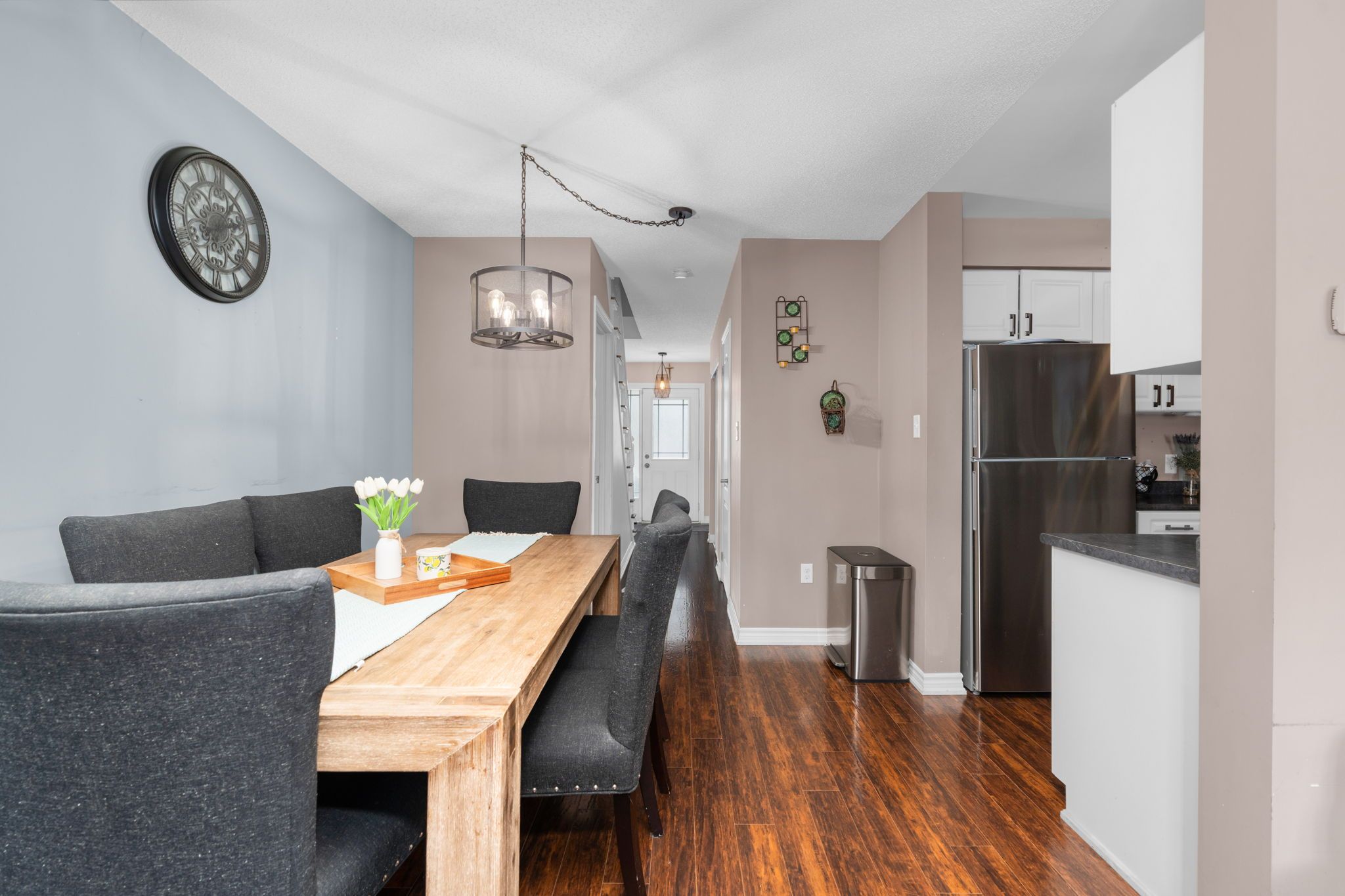 • Open-concept layout connects the living, dining, and updated kitchen.