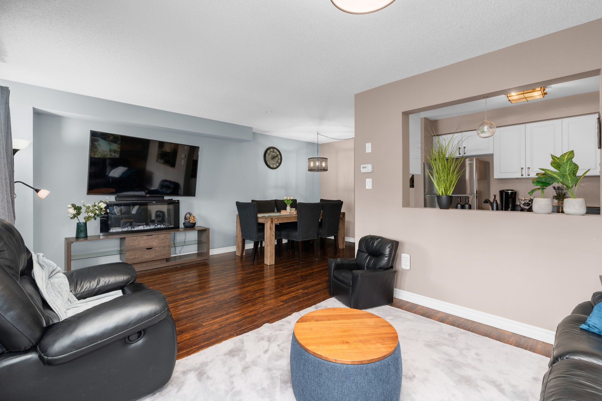 A bright and spacious brownstone townhouse offering over 1700 sq ft of finished living space. From the moment you step inside, you'll love the open and inviting layout. The foyer leads into a sunlit living and dining area that flows seamlessly into the updated kitchen, ideal for entertaining, with sightlines that keep the chef connected to the conversation. Upstairs, you'll find three generous bedrooms, including a private primary retreat with its own 4-piece ensuite. The family bedrooms are well-sized and share a modern main bath, perfect for kids, extended family, or guests. The fully finished walk-out basement is a true bonus, featuring a 3-piece bathroom and plenty of natural light. Whether you need a home office, a rec room, or a cozy spot to relax, this space is ready to adapt to your lifestyle. Living here means less upkeep and more time to enjoy life. Your condo fees cover building insurance, all landscaping, all snow removal including driveway and entrance steps, exterior window washing, road maintenance, and visitor parking. There's even a playground on-site! Located minutes from schools, parks, the ardagh bluffs, rec centres, shopping, big-box stores, and with easy access to highway 400, this townhome puts everything you need at your doorstep. Don't miss the chance to make this beautiful home yours. Schedule your showing today!