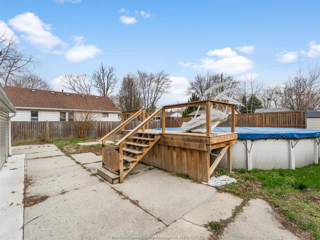 • Fenced yard with a large deck and above ground pool.