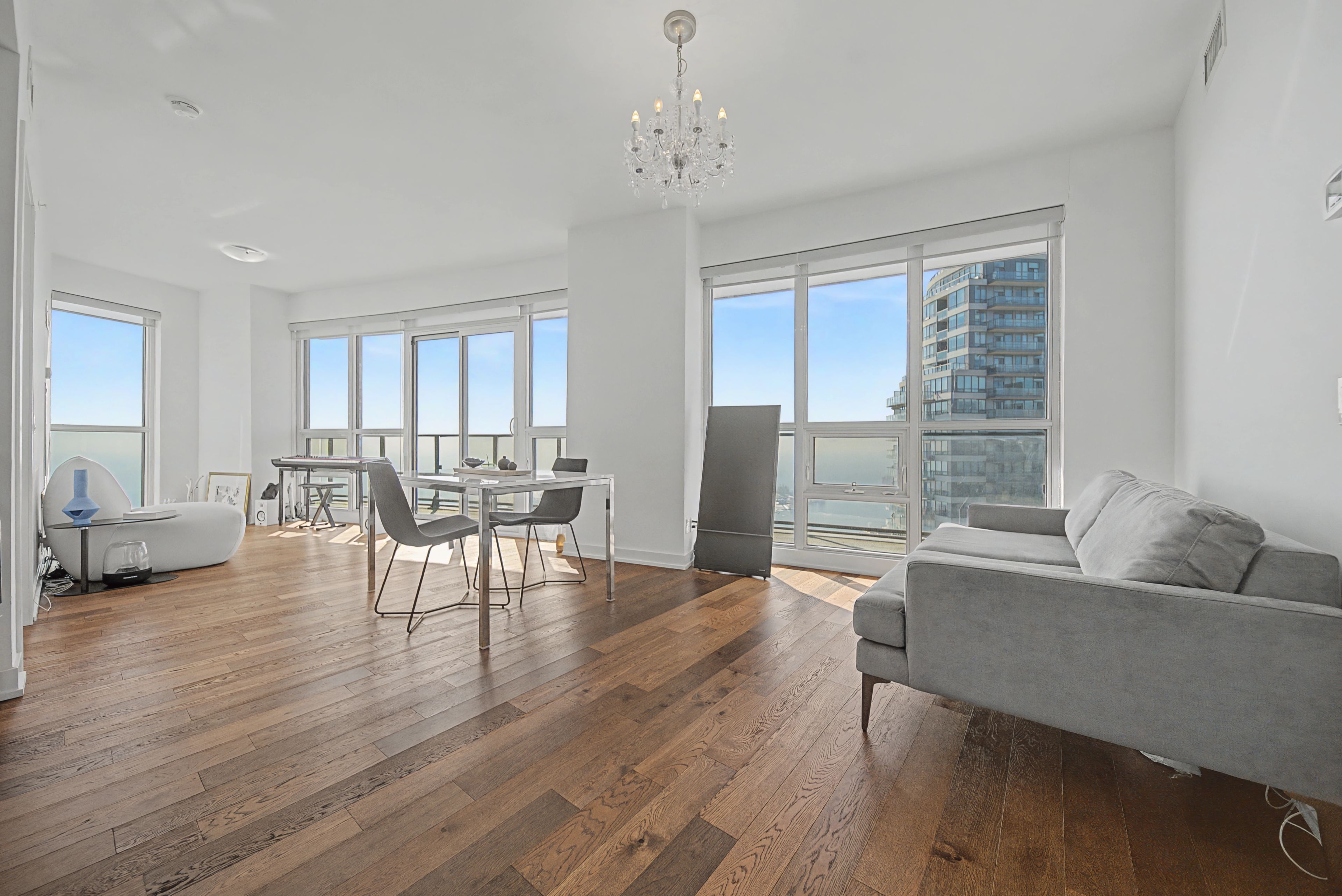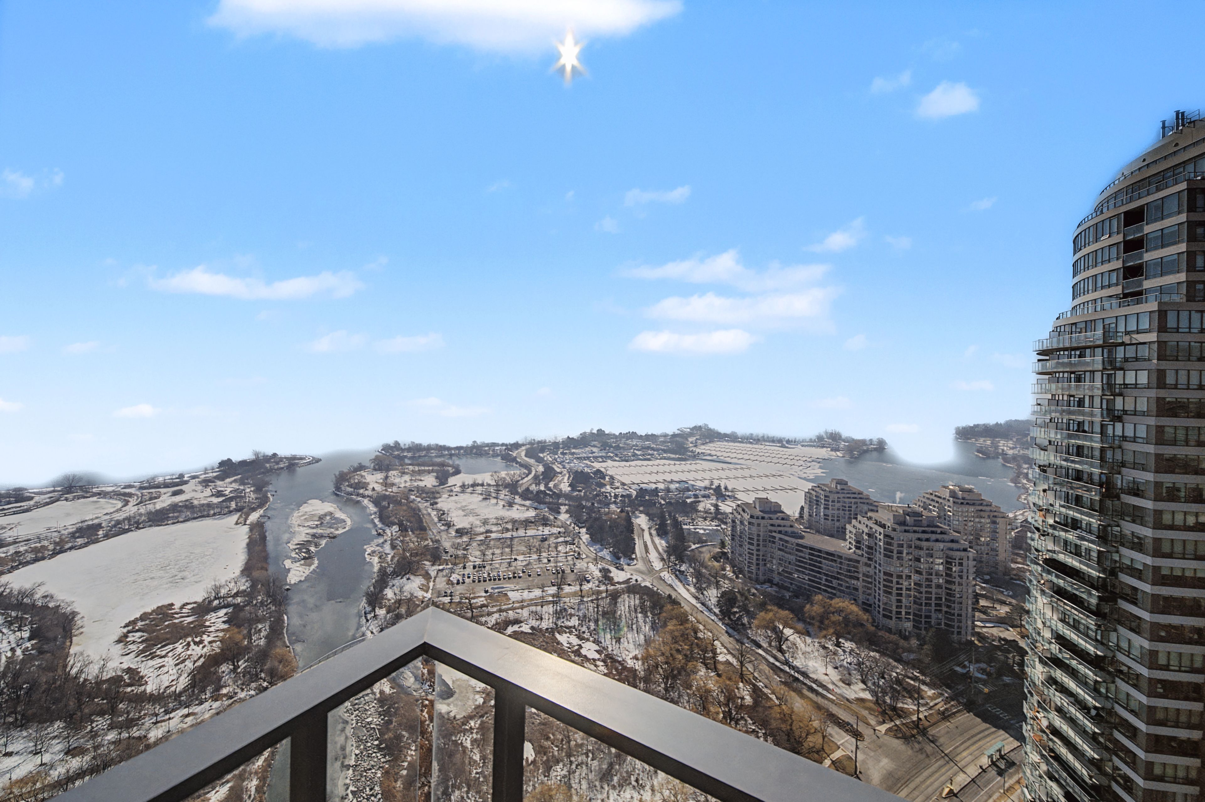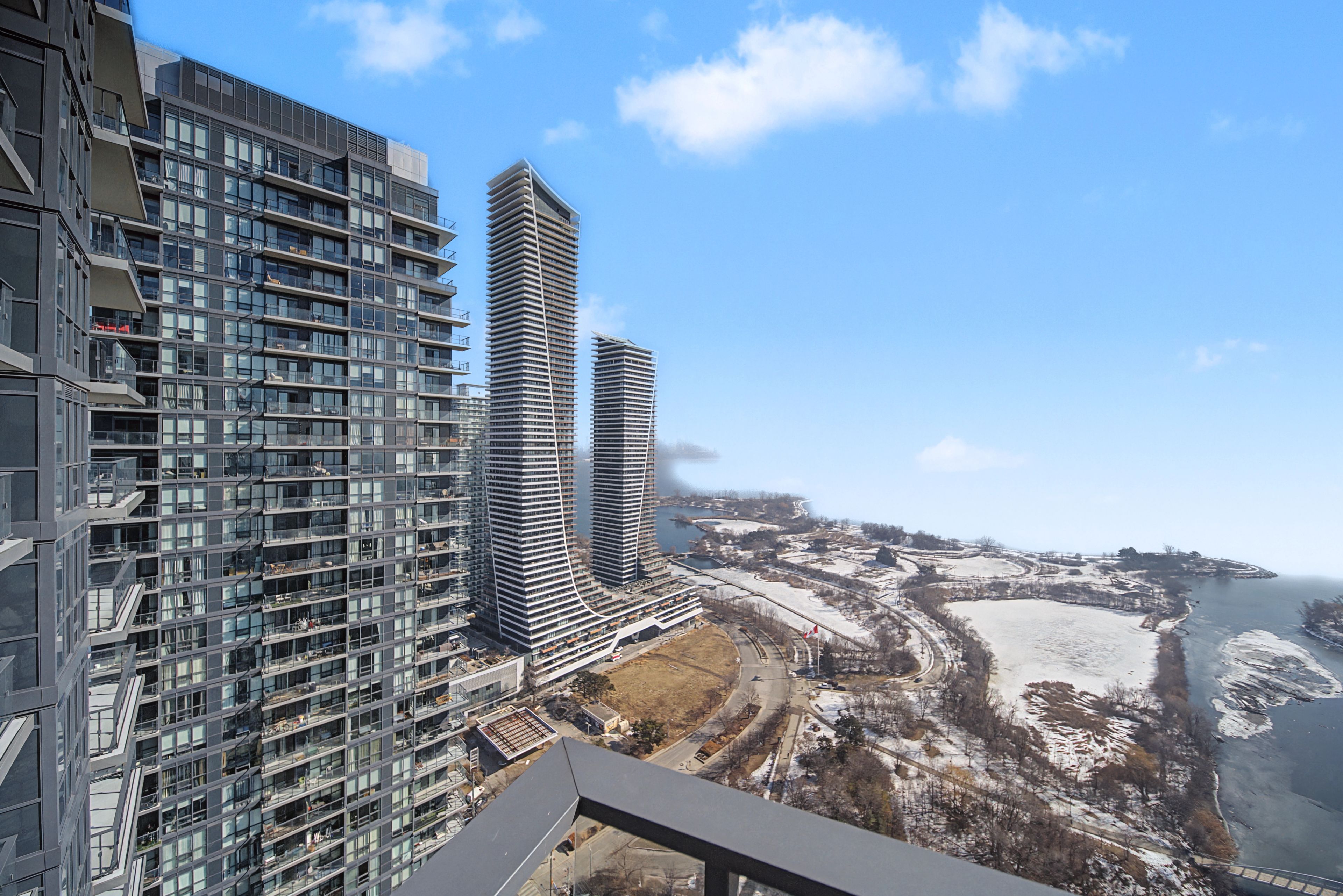 Welcome to the truly stunning lake view from the 41st floor corner unit in westlake village. Soaring high above the landscape, this 904 sq ft unit offers a sweeping southwest panorama of lake ontario, humber bay park west, mimico creek, and the iconic cn tower. The spacious open-concept layout is enhanced by a modern european style cabinets, featuring extented uppers, a stylish glass tile backsplash, full-size stainless steel appliances, and centre island. Lofty high ceiling and expansive floor-to-ceiling windows that flood the space with natural light and showcase breathtaking views from every angle. The generous wraparound balcony provides the ideal spot to enjoy the waterfront vistas from sunrise to sunset. Westlake village is a lively urban community, offering convenientunderground access to premium amenities such as an indoor pool, fitness center, yoga & pilates studios, a party room, outdoor bbq areas, and much more. Residents benefit from direct indoor access to metro, shoppers drug mart, starbucks. Ttc at your doorstep, nearby banks, lakeshore stree car service to downtown toronto, and swift access to the gardiner expressway, mimico go station.