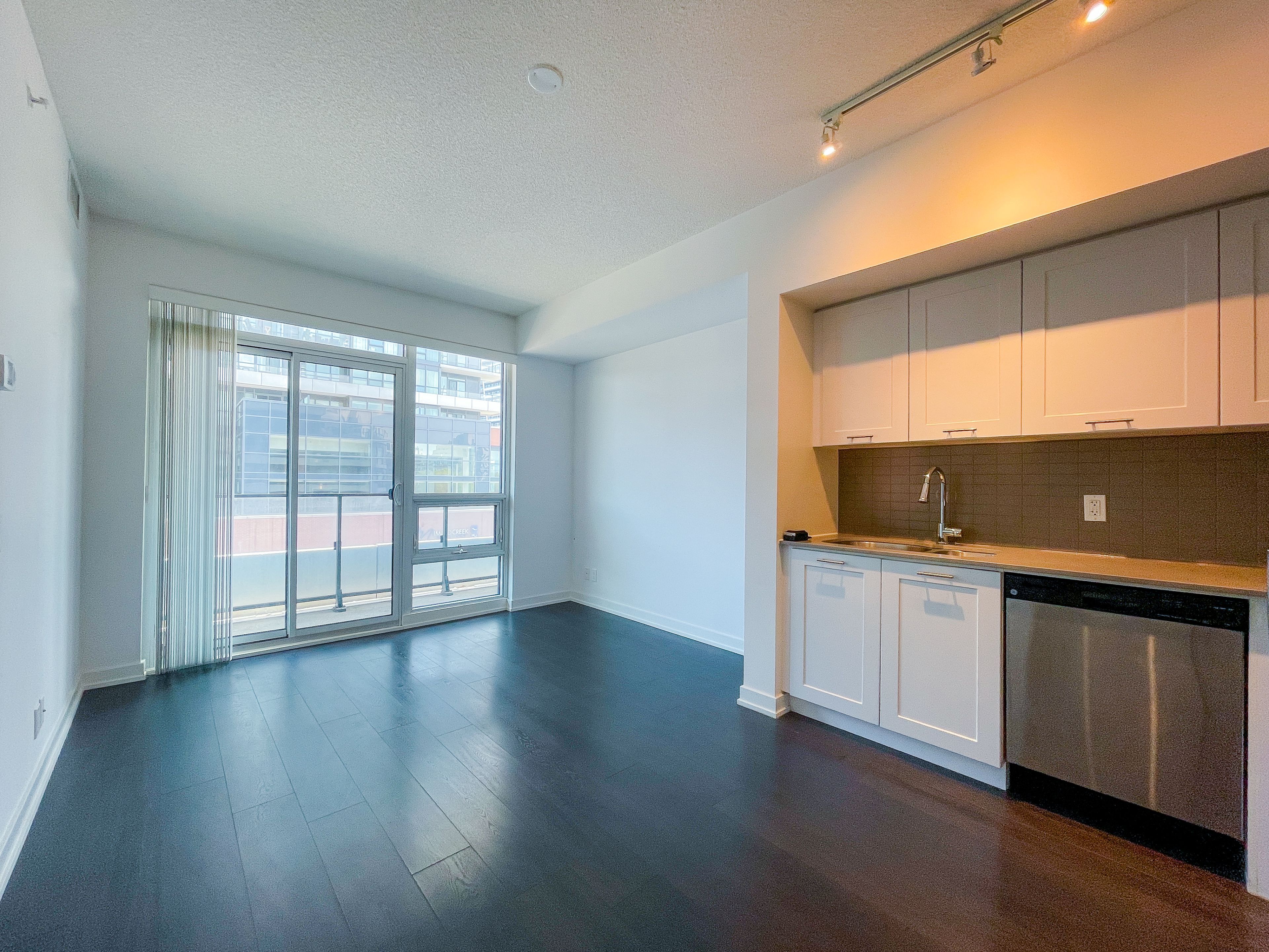 Beautiful 1 bed + den at westlake * open concept layout complete with laminate flooring * kitchen nicely appointed with stainless steel appliances * features an open balcony* convenient shopping, restaurants, ttc & go transit at your door step * close to highway, mins to cne, ontario place & downtown financial district *